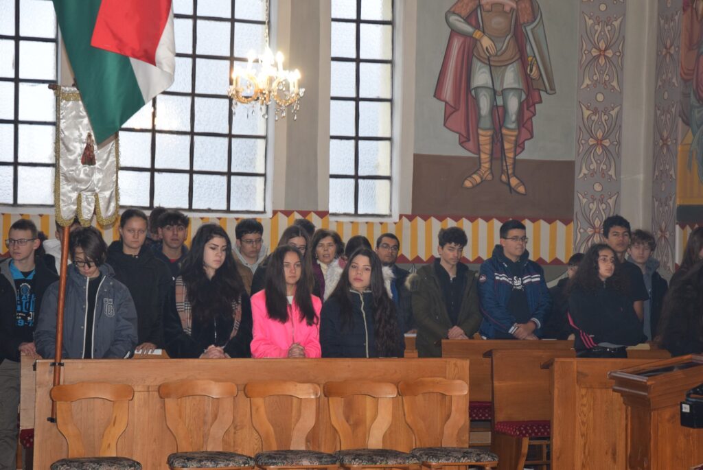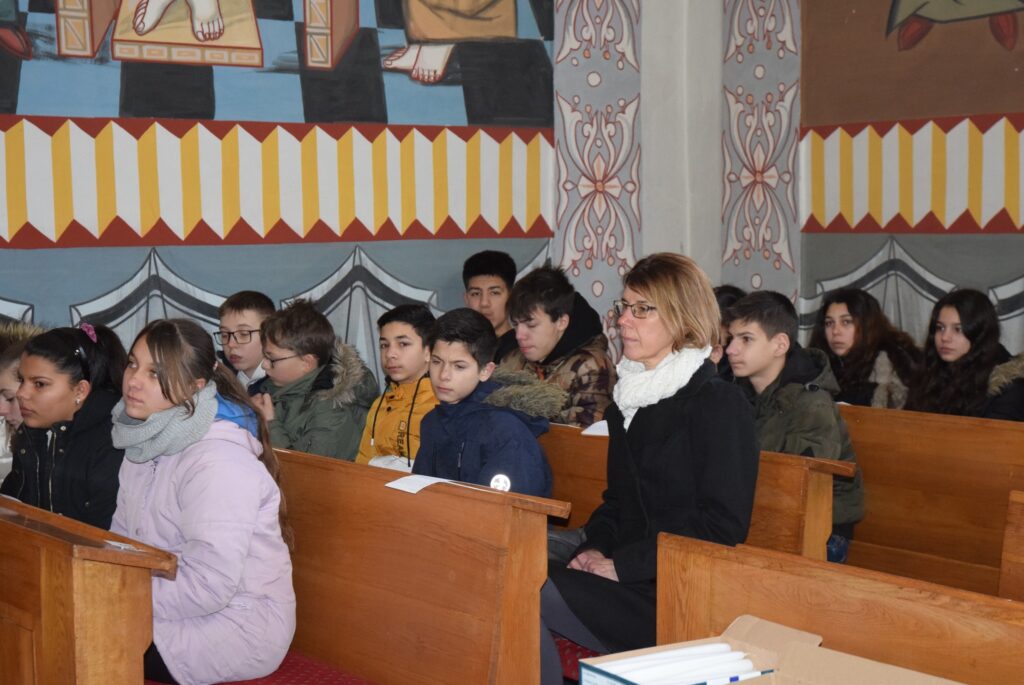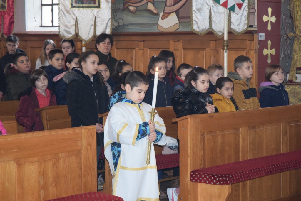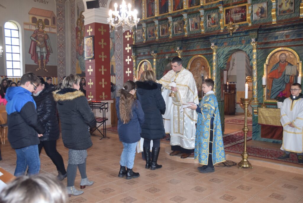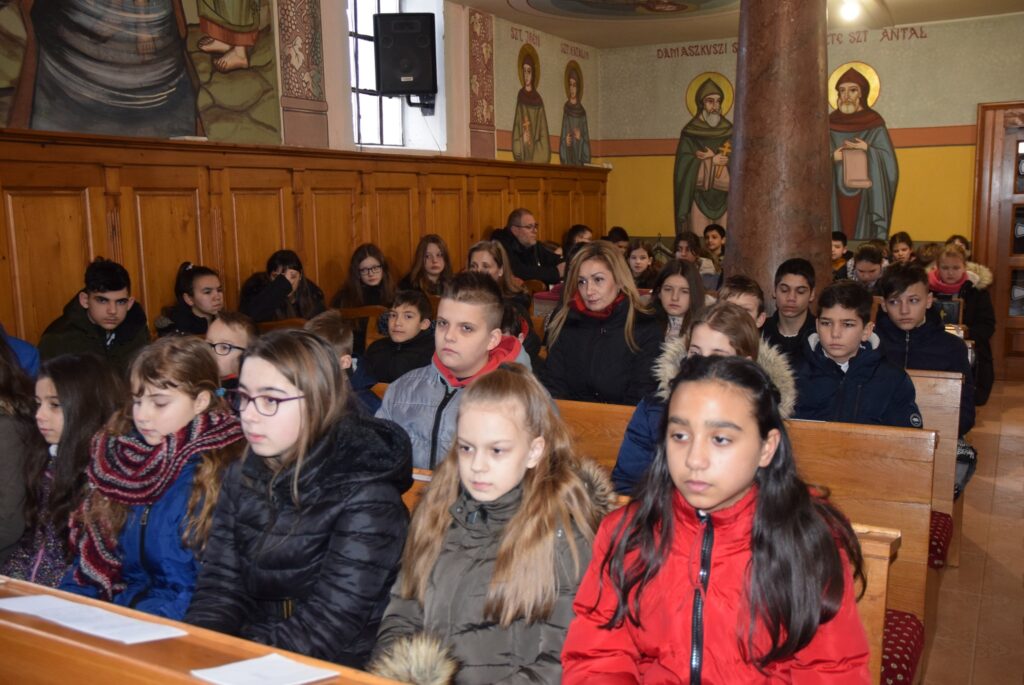 Február 2-án, gyertyaszentelő, és Jézus templomban való bemutatásának ünnepén liturgiával kezdtük a napot a görögkatolikus templomban. Az evangéliumi szakasz olvasása után Zoltán atya Simeonról beszélt a gyerekeknek. Simeonról, aki ígéretet kapott az Úrtól, hogy addig nem hal meg, amíg meg nem látja a Megváltót. Simeon hosszú időn át várakozik türelemmel. Ezt az alázatos türelmet állította Zoltán atya a diákok elé. Amikor kérünk valamit Istentől, ne legyünk türelmetlenek, imádkozzunk, és fogadjuk el Isten akaratát. KGYZE