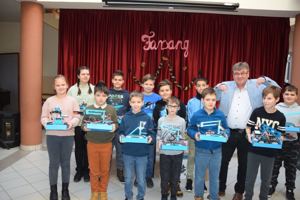 Több mint 2.5 millió forint értékű az a 10 darab robot, amit a település önkormányzata pályázati támogatásból vásárolt, és a mai napon adott át használatra az iskola tanulóinak. Az intézményünkben működő robotika szakkör tagjai már találkoztak a modern, érdekes, fejlesztő robotokkal, sőt felnőtt oktató segítségével ők maguk szerelték össze és próbálták ki azokat. Garda László intézményvezető köszönetét fejezte ki az önkormányzatnak az ajándékért, ami újabb mérföldkövet jelent tanulóink 21. századi színvonalú fejlesztésében. KGYZE