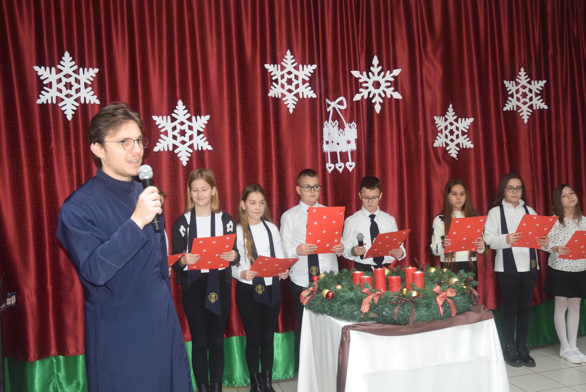 December 8-án iskolánk adventi koszorúján meggyújtottuk a várakozás idejének negyedik gyertyáját. Ezúttal az 5. évfolyamosok készültek műsorral, melynek üzenetét Teréz anya egyik szívhez szóló gondolata köré fűztek: „Ne kívánjunk magunknak nagy dolgokat, csak kis dolgokat nagy szeretettel.” A jó cselekedetekhez néha elég egy mosolyt küldeni valaki felé, vagy embertársunknak segíteni, megvigasztalni, ha szüksége van rá, vagy csak egyszerűen türelmesebbnek lenni vele. Ahhoz, hogy jót tegyünk másokkal, magunkkal, a lelkünkkel, soha nem kell nagy dolgokra gondolni, hiszen a csodák a kis dolgokban is ott vannak. A negyedik gyertyát Szücs Hédi gyújtotta meg. A műsorban szerepelt: Szücs Hédi, Nagy Csenge, Pető Luca, Kerezsi Gergő, Csontos Péter, Szőrös Petra, Bálega Boróka, Jurkovics Dóra. A gyerekeket Molnárné Tóth Andrea tanárnő készítette fel. KGYZE