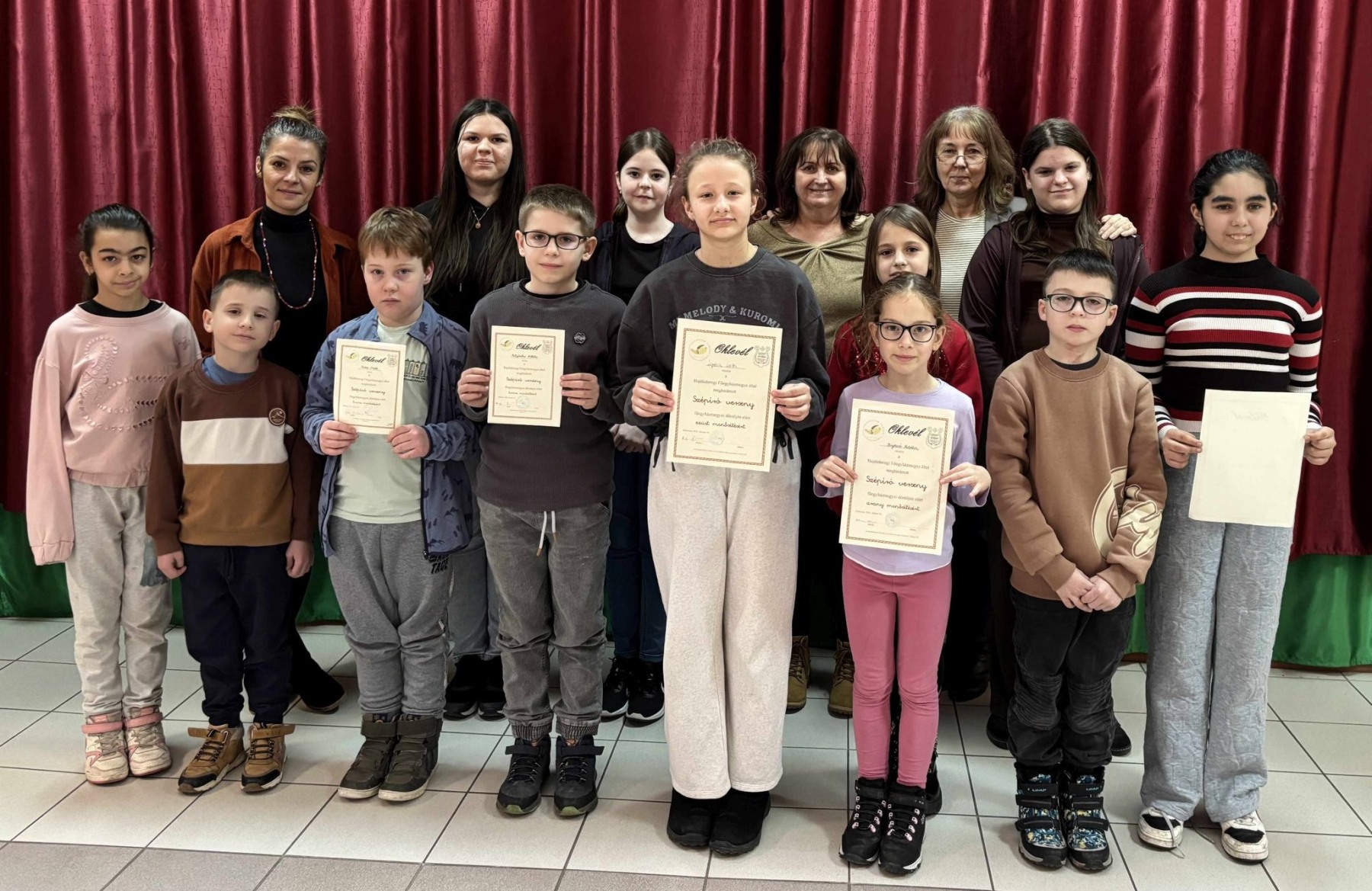 Arany minősítést kapott: Boros Nimród 2. a (Felkészítő: Matilné Bollók Nikolett), Bujdosó Natália 3. b, (Felkészítő: (Kissné Lakatos Erika), Jacsmenik Barbara 8. a (Felkészítő: Kedves Györgyné Zilahi Enikő)