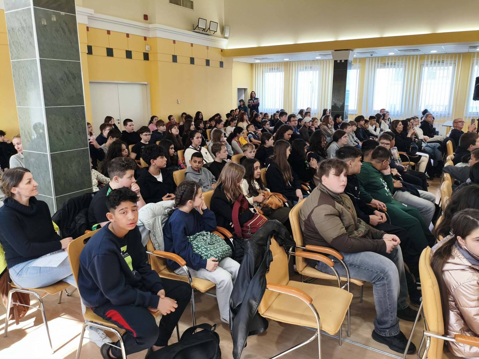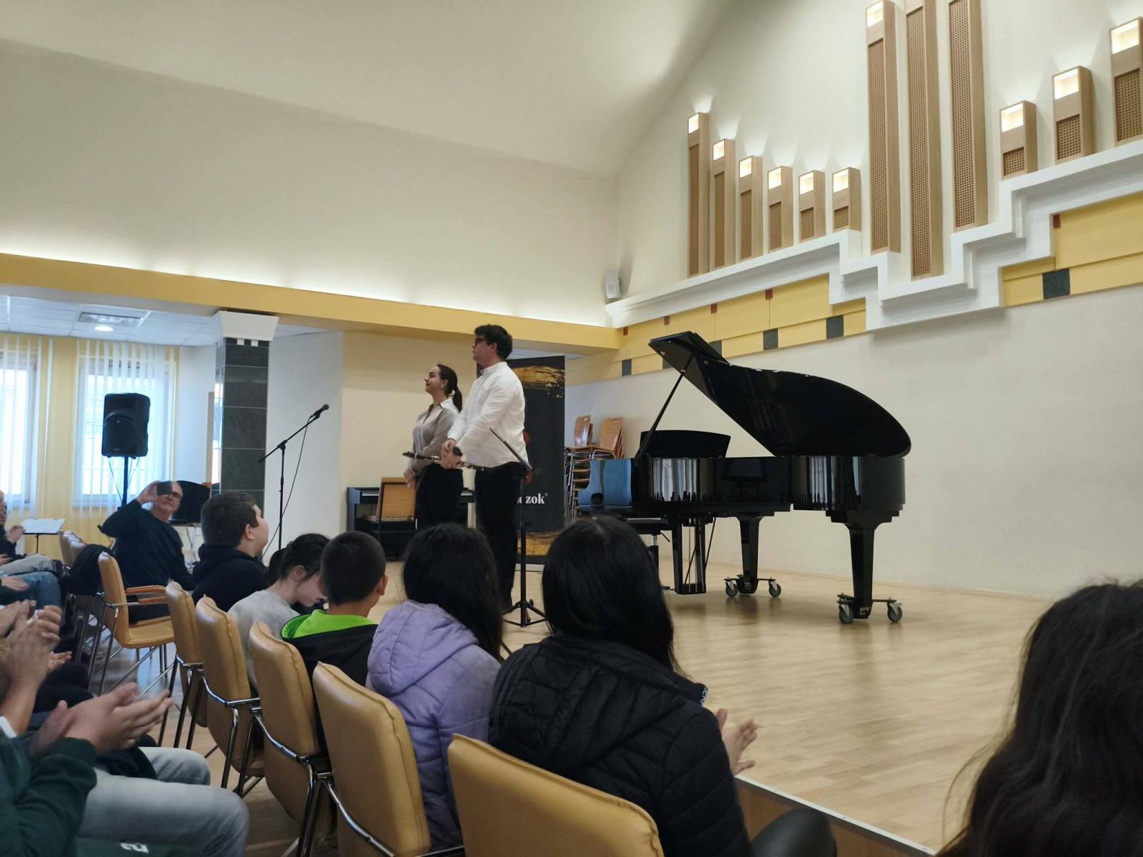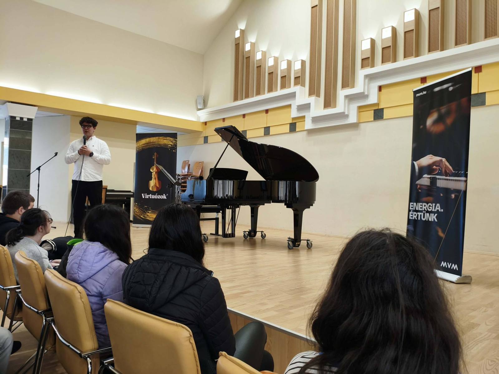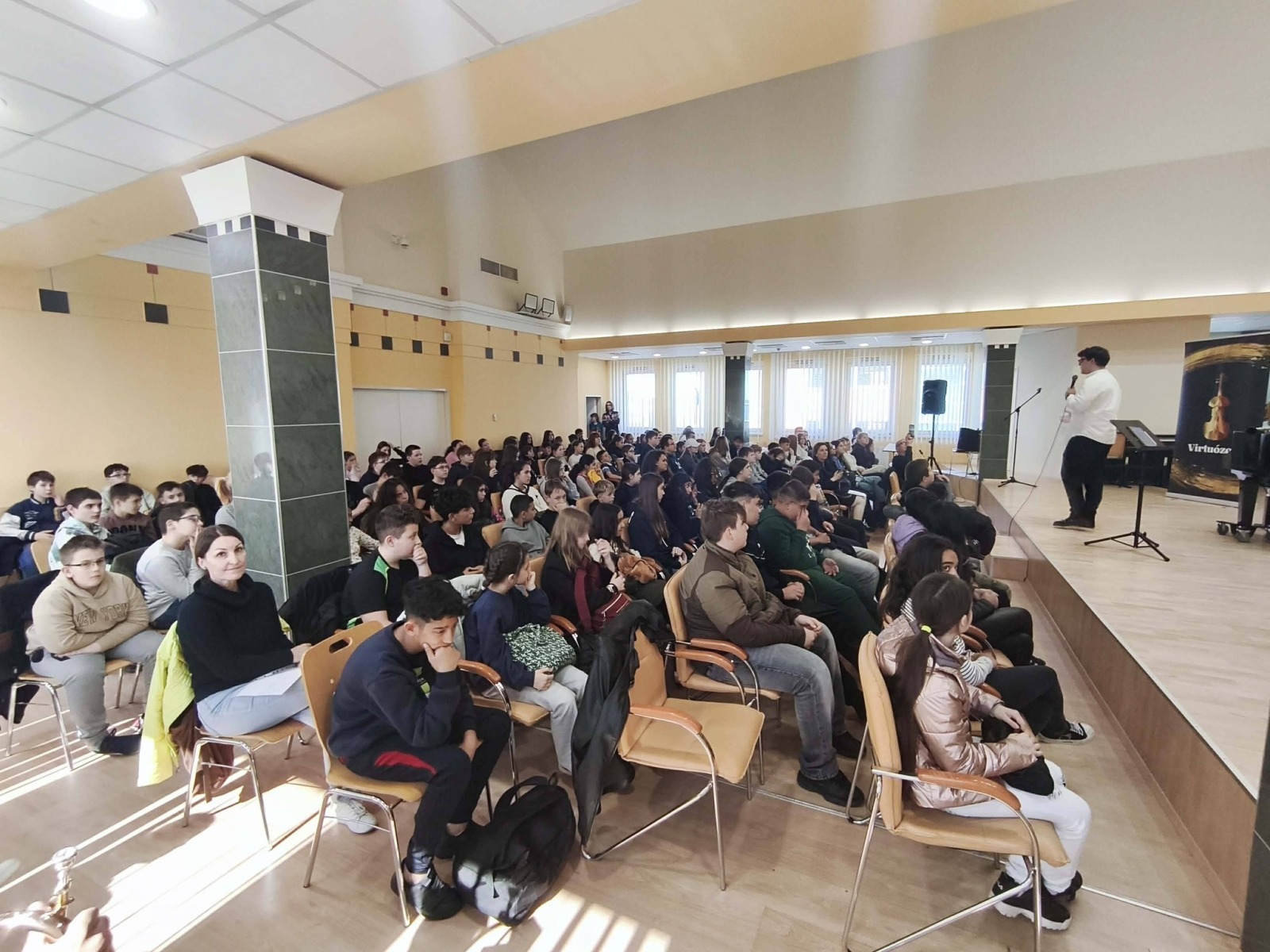 Iskolánk 6. évfolyamos tanulói a Lázár Ervin Program keretében a Kodály Zoltán Zeneművészeti Szakgimnázium és Zeneiskola Kis Virtuózok Alapítványa tagjainak előadásában különböző hangszerekkel és komolyzenei darabokkal ismerkedtek a tavaszi szünet előtti utolsó napon Debrecenben a szakgimnázium Simonffy termében. A Zene jövője és Földünk jövője című hangversenyre Demeter Ágnes és Székely Bence osztályfőnökök kísérték el a gyerekeket. KGYZE