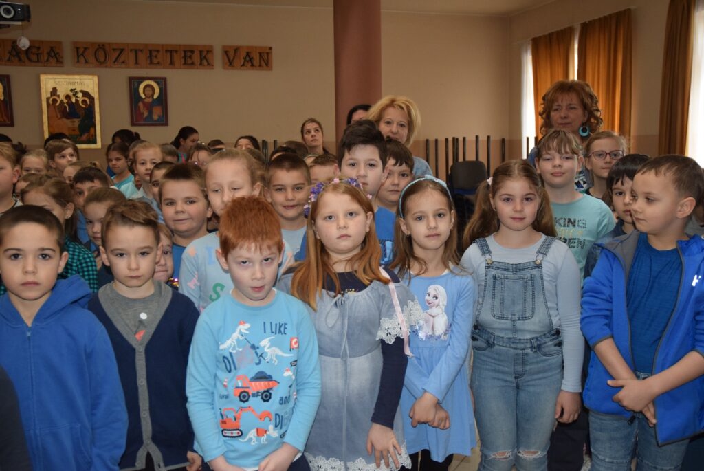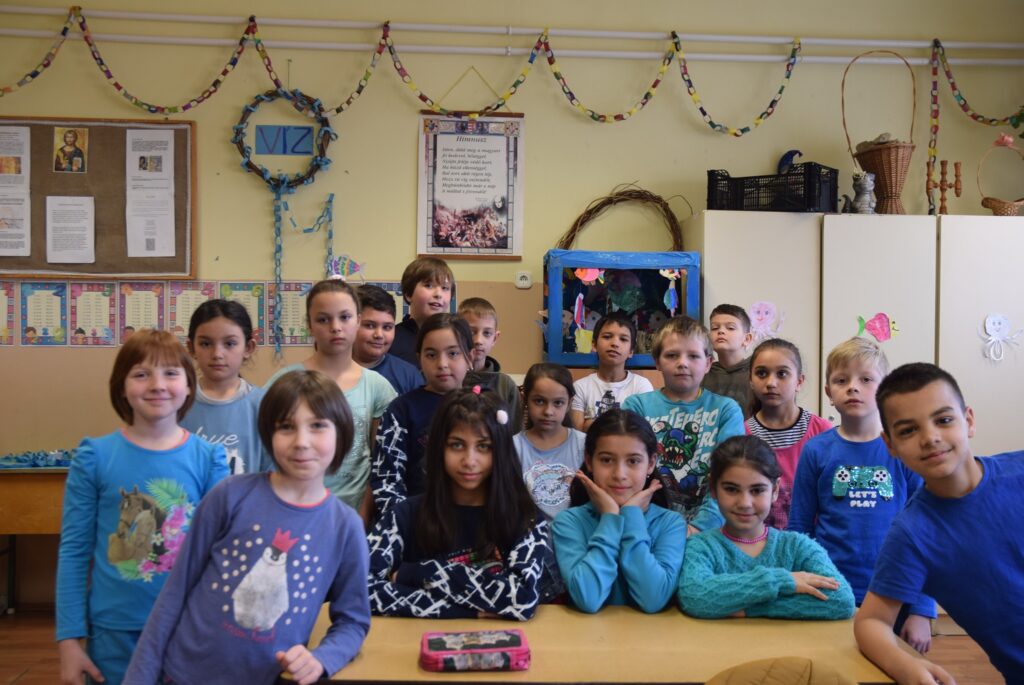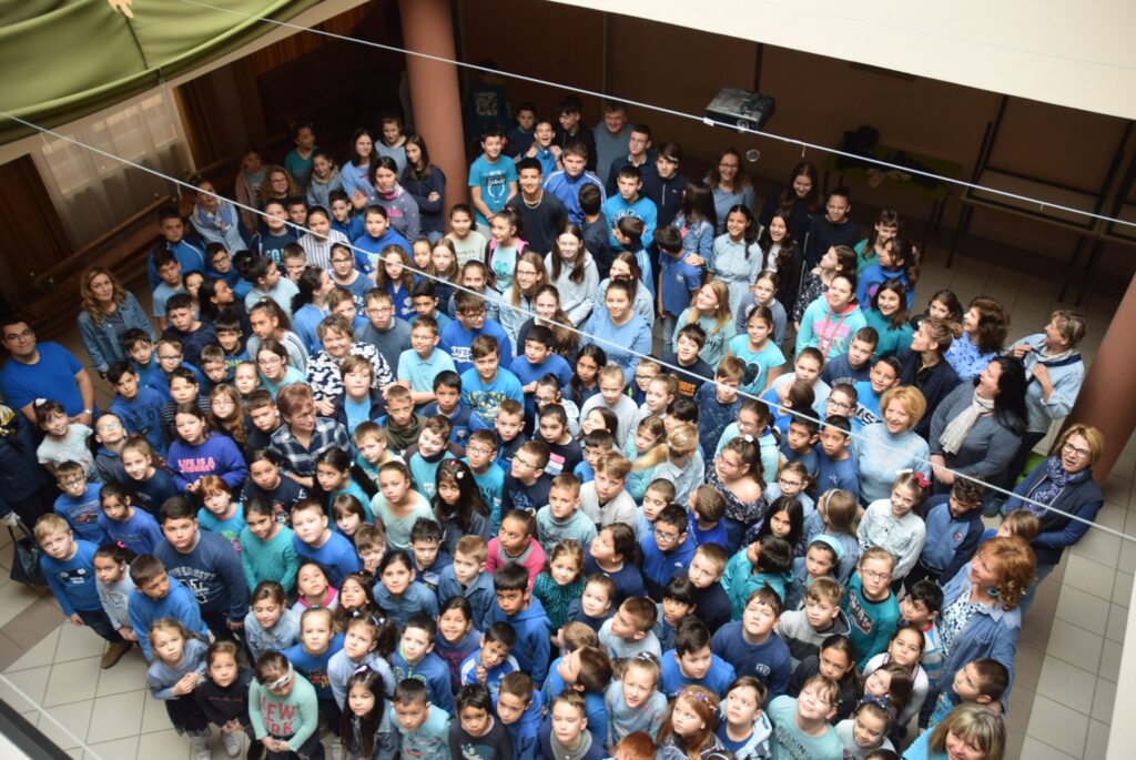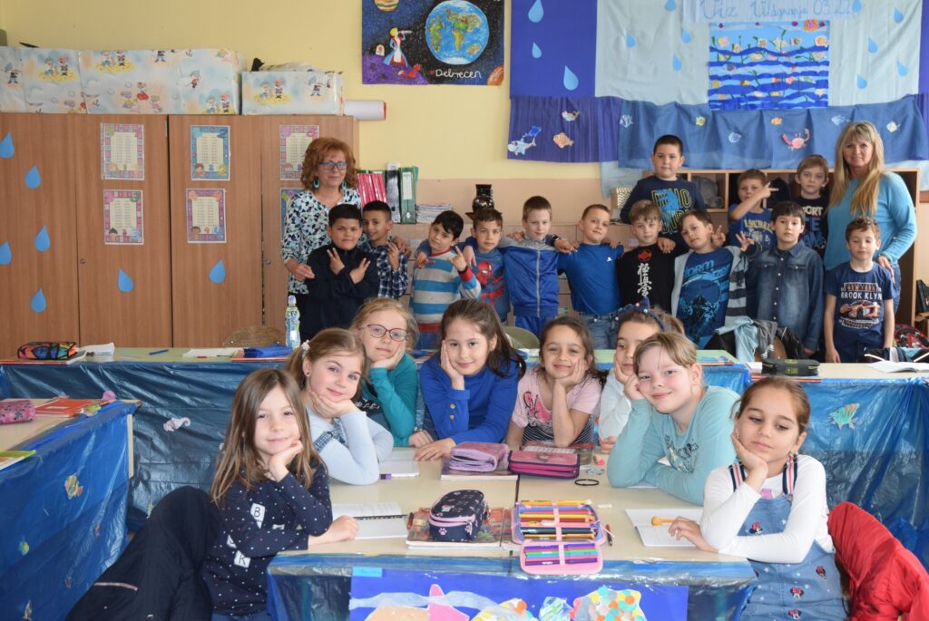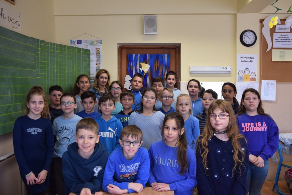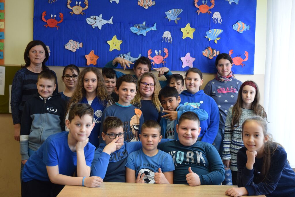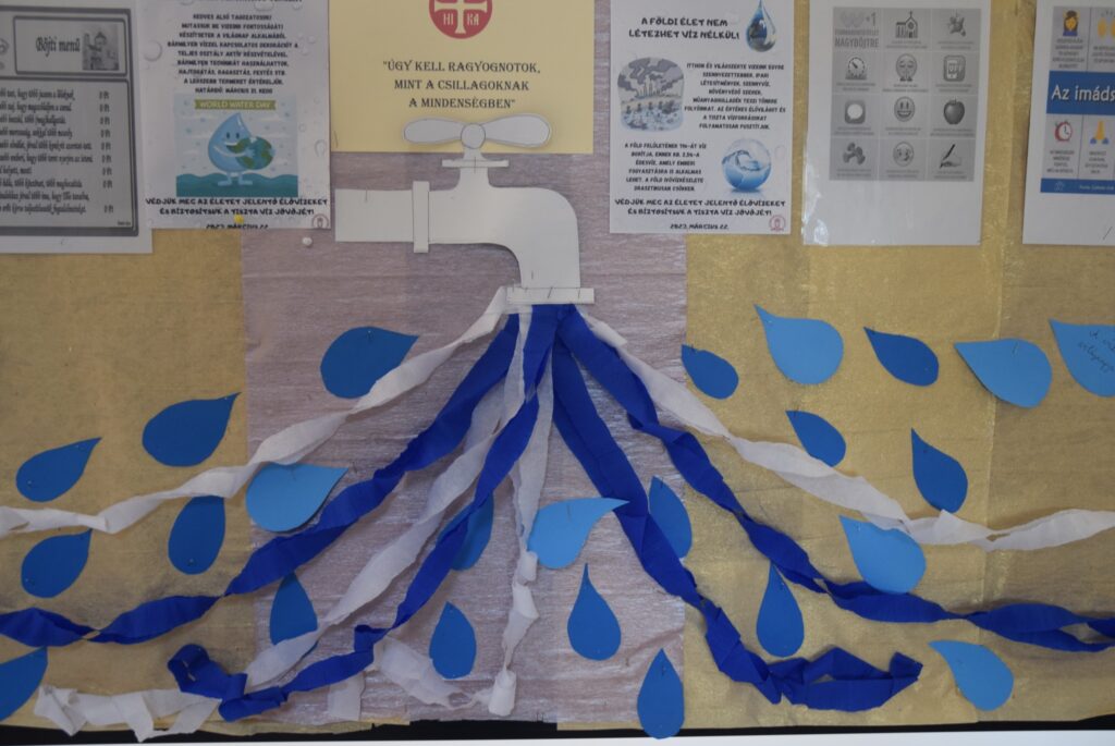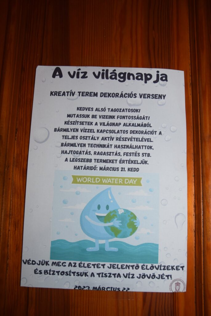 Március 22-e, a víz világnapja alkalmából a sok évtizedes hagyományhoz híven ismét kékbe öltözött az iskola apraja-nagyja. A fotók elárulják, milyen csodaszép volt az összkép, és persze a csoportfotók is. Az alsó tagozatosok teremdíszítő versenybe kapcsolódhattak be, ahol ötletes, látványos, érdekes képek, rajzok, hajtogatások jelentek meg ajtókon, ablakokon, és persze a faliújságokon is. A kisebbek rajzoltak, festettek, színezhettek is. Ezen a napon, természetesen minden tevékenység a víz körül forgott. A tízórai szünetben Bródi Berta az iskolarádión keresztül a Kolibriről olvasott el egy mesét, ami nagyon tetszett a gyerekeknek. A felső tagozatosok sem maradtak ki a mókából, számukra az ötödik órában kahootos feladatot állított össze a nap felelőse, Székely Bence tanár úr. Az osztályok a digitális térben versenyezhettek egymással, és válaszolhattak a vízzel kapcsolatos kérdésekre. A pazar hangulatot az ajtókon kiszűrődő üdvrivalgás bizonyította egy-egy helyes válaszért kapott pontot követően. A víz az életet jelenti számunkra! Ezért minden lehetőséget meg kell ragadni, hogy a gyerekek minél hamarabb belássák ezt, és e szerint is éljenek. KGYZE