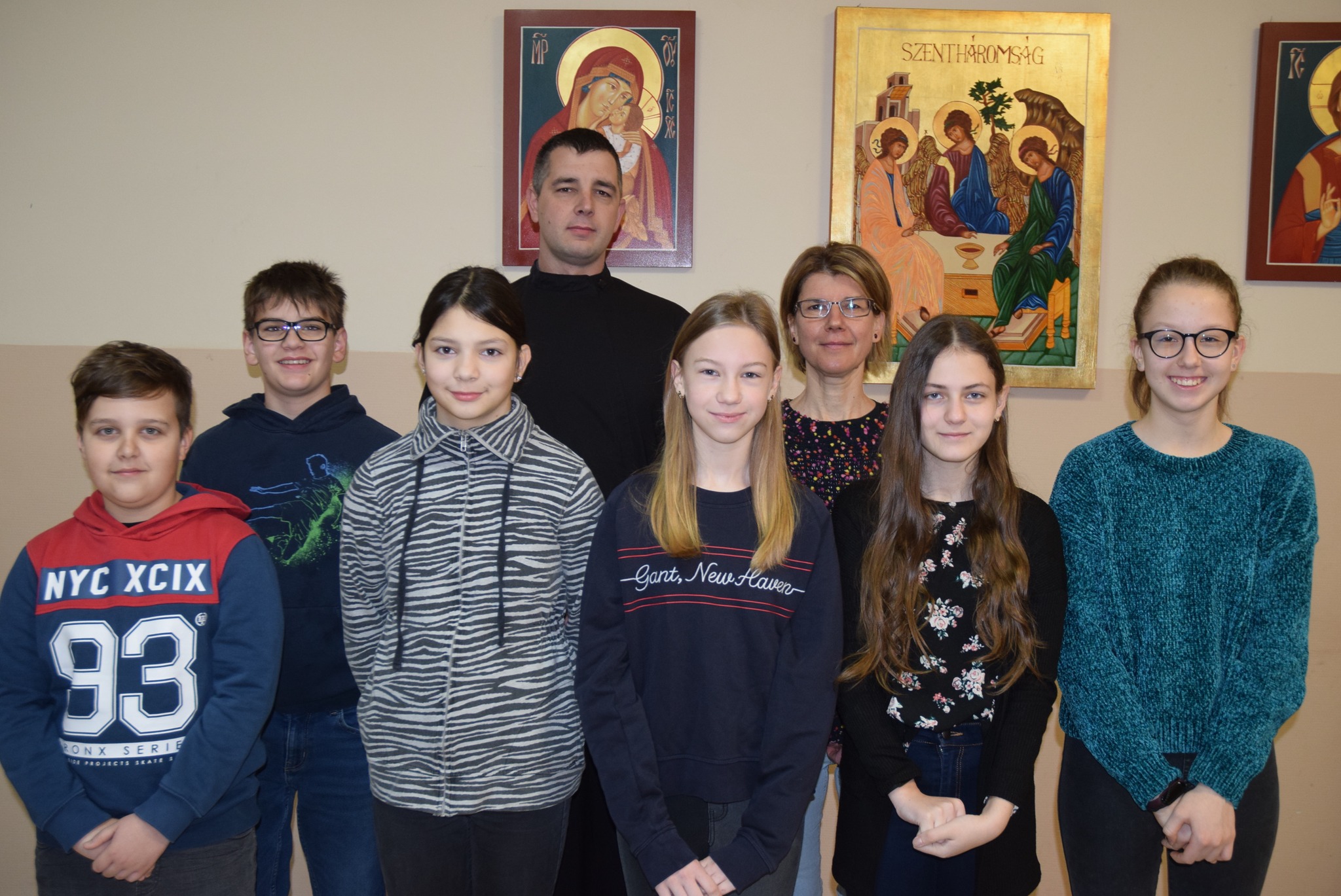 Március 18-án, szombaton Hajdúdorog adott otthont a hittanverseny következő fordulójának. Nagy örömünkre az 5-6. évfolyamos, egyházi iskolás tanulók kategóriájában a Bródi Berta, Szabó Gréta, Szász Andris alkotta csapat az első helyen végzett. Vajda Lilla és Simon Misi, iskolánk egykori tanulói, az egyházközség színeiben indultak, ők a 3. helyen végeztek. Mindkét csapatnak szurkolhatunk az április 1-jén megrendezendő országos verseny sikeréért. Felkészítőjük Simonné Czentye Anikó és Tóth Elek atya voltak. Ugyanezen a napon szépen szerepeltek iskolánk tanulói a liturgikus énekversenyen is. Felkészítőjük Tatai Zoltán atya volt.