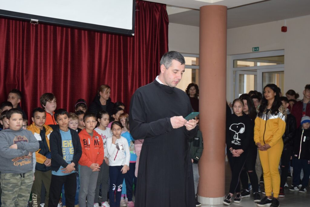 A mai reggeli hétindító böjti percek elején a vasárnapi evangéliumi szakaszból azt emelte ki Zoltán atya, amikor Jézus arról beszélt, hogy milyen szenvedés is vár rá az elkövetkezendő napokban. Ezt meg se hallva Zebedeus fiai egészen más kéréssel, kérdéssel fordultak Jézus felé. Jézus nem dorgálja meg őket, hanem végtelen nagy türelemmel adott választ kérdésükre. – Velünk emberekkel is gyakran megtörténik, hogy nem szentelünk elég figyelmet a hozzánk szólóra. A diákok gyakran tesznek fel az óra anyagához egyáltalán nem illő kérdéseket, ami a tanárt bosszantja, hisz tudja, hogy nem figyel a tanítvány. Nem az a baj, hogy a diák kérdez, hanem az, hogy nincs türelme kivárni az óra végét, amikor a tanároknak is lenne ideje nyugodtan válaszolni a diákokat érdeklő kérdésekre. Legyetek türelmesek egymás felé!!! Ez a heti üzenetem felétek – hangzottak Zoltán atya szavai. KGYZE