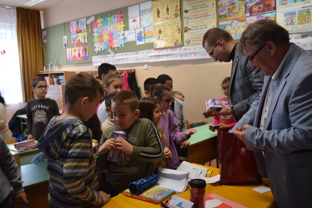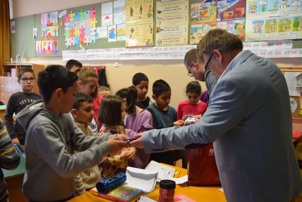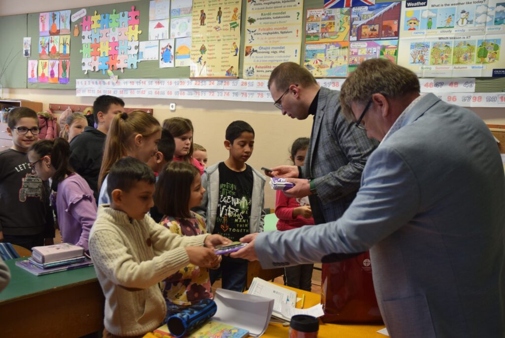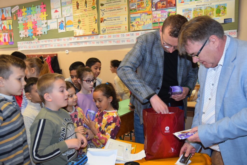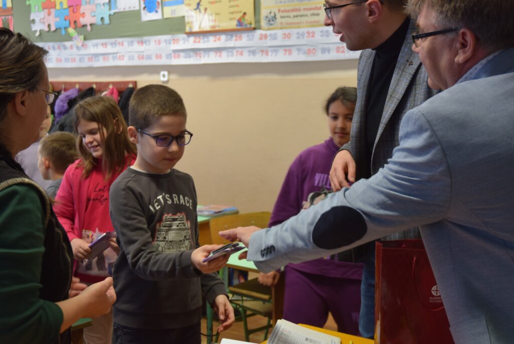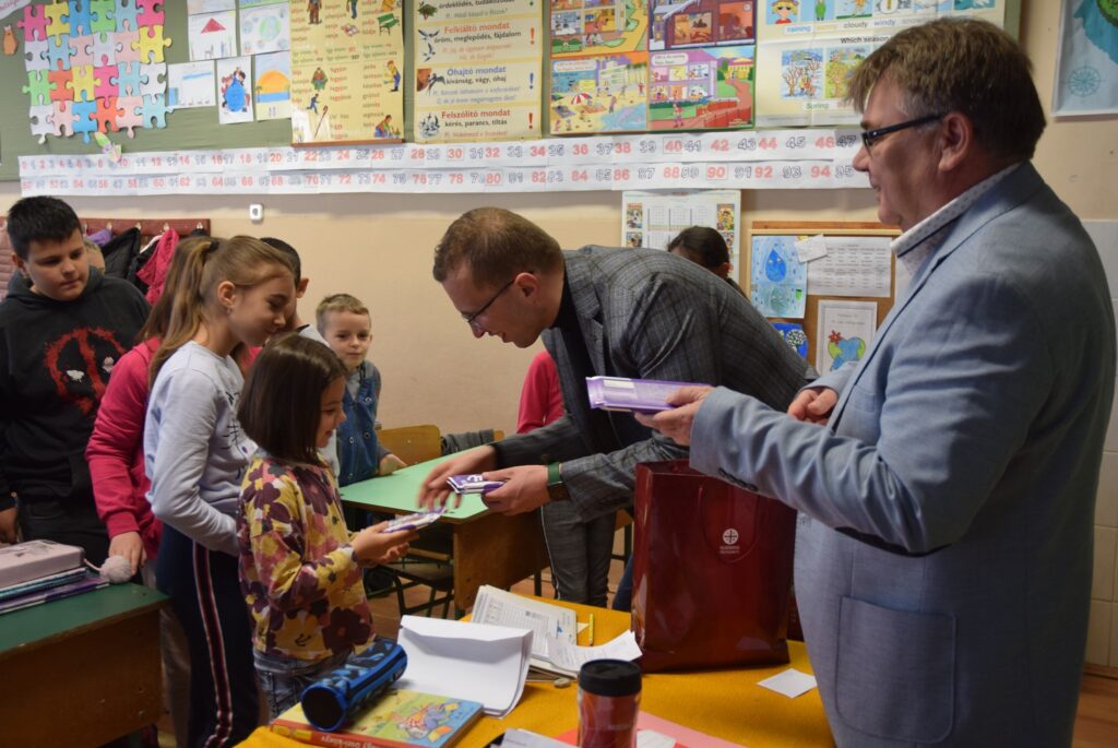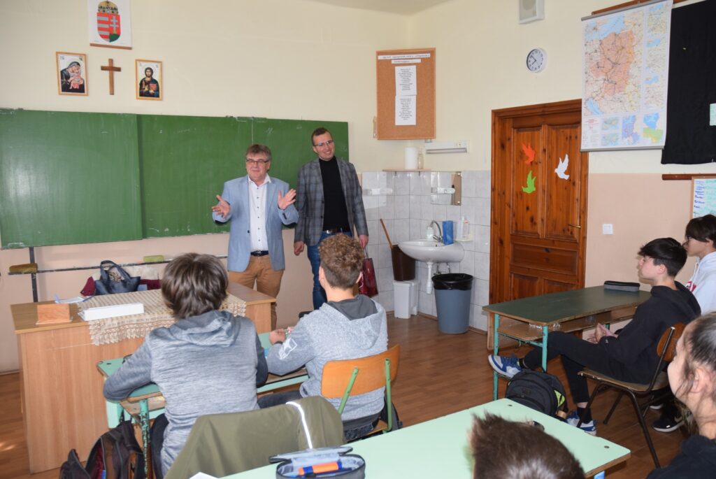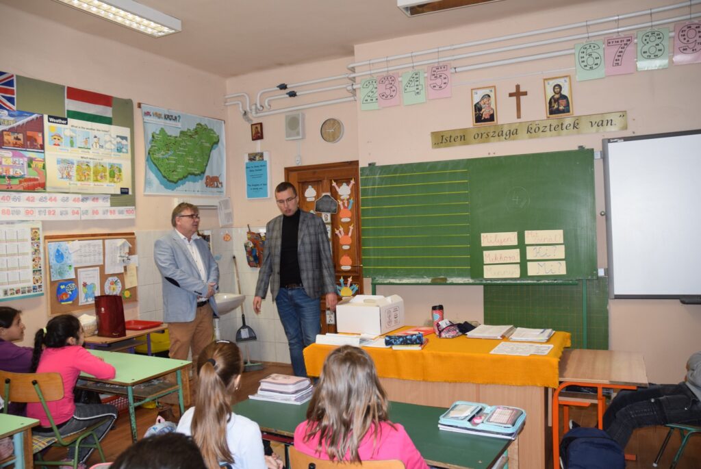 Novemberben kapcsolódott be iskolánk a Hierotheosz Egyesület által vezetett pályázatba, melynek keretében műanyag kupakokat gyűjtöttek diákjaink. A legtöbb kupakot gyűjtő osztályok ajándékban részesültek, amit a projektgazda Hierotheosz Egyesület főtitkára, Kiss András és Garda László intézményvezető adott át a hét első napján a gyerekeknek. Felső tagozatban a 8. b osztály, alsó tagozatban a 3. a osztály végzett az élen. Garda László emlékeztette a tanulókat, hogy a novemberi akció a versengésen kívül kettős célt szolgált. Egyrészt egy diáktársunk tartósan beteg testvérének gyógykezelésére ajánlottuk fel az összegyűjtött kupakokat, másrészt azért, mert iskolánk is részt vesz egy újrahasznosítási programban, melyhez szintén kapcsolódik a gyűjtési akció. Kiss András felhívta a gyerekek figyelmét az újrahasznosítás, a szelektív hulladékgyűjtés, és a természetvédelem fontosságára is. A nyolcadikosok komolyan és csendben, a harmadikosok őszinte örömmel fogadták az ajándékokat. KGYZE