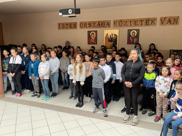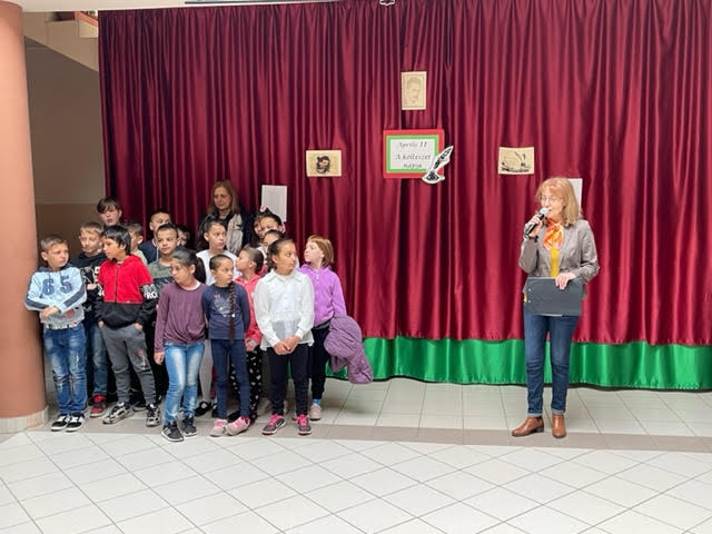 A mai reggelen ismét közös versmondással tisztelegtünk április 11-e, a költészet napja, valamint József Attila születésnapja előtt. Reggel az aulában Kedves Györgyné Zilahi Enikő szervező magyartanár rövid bevezetőjét követően közösen szavaltuk el József Attila: Születésnapomra című versét. Az ezen a napon szokásos versfolyamot délután, az alsósok versmondó versenyén indítottuk útjára. (Fotó: Szlifka György)