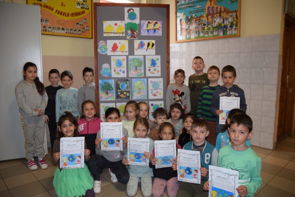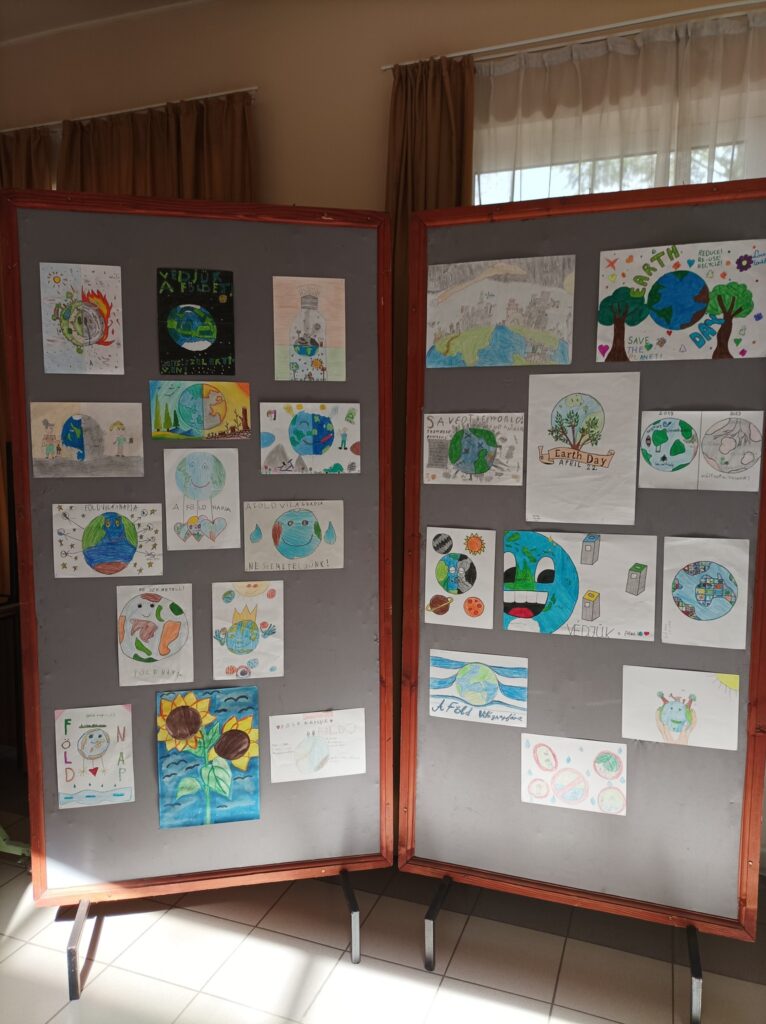 Iskolánk tanulói rajzokkal, színezőkkel, újrahasznosított anyagokból összeállított térbeli alakzatokkal készültek a Föld napjára. Székely Eszter tanárnő, a program szervezője, a legjobban sikerült rajzokból minikiállítást rendezett. A jövő hét folyamán a rajzok megtekinthetők lesznek az aulában felállított paravánokon. KGYZE