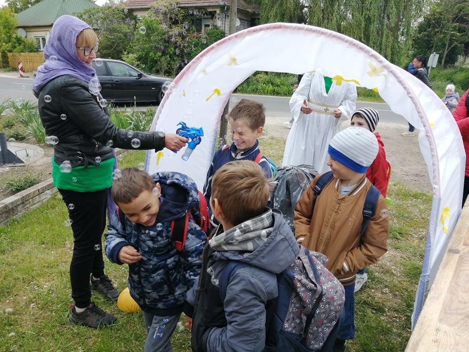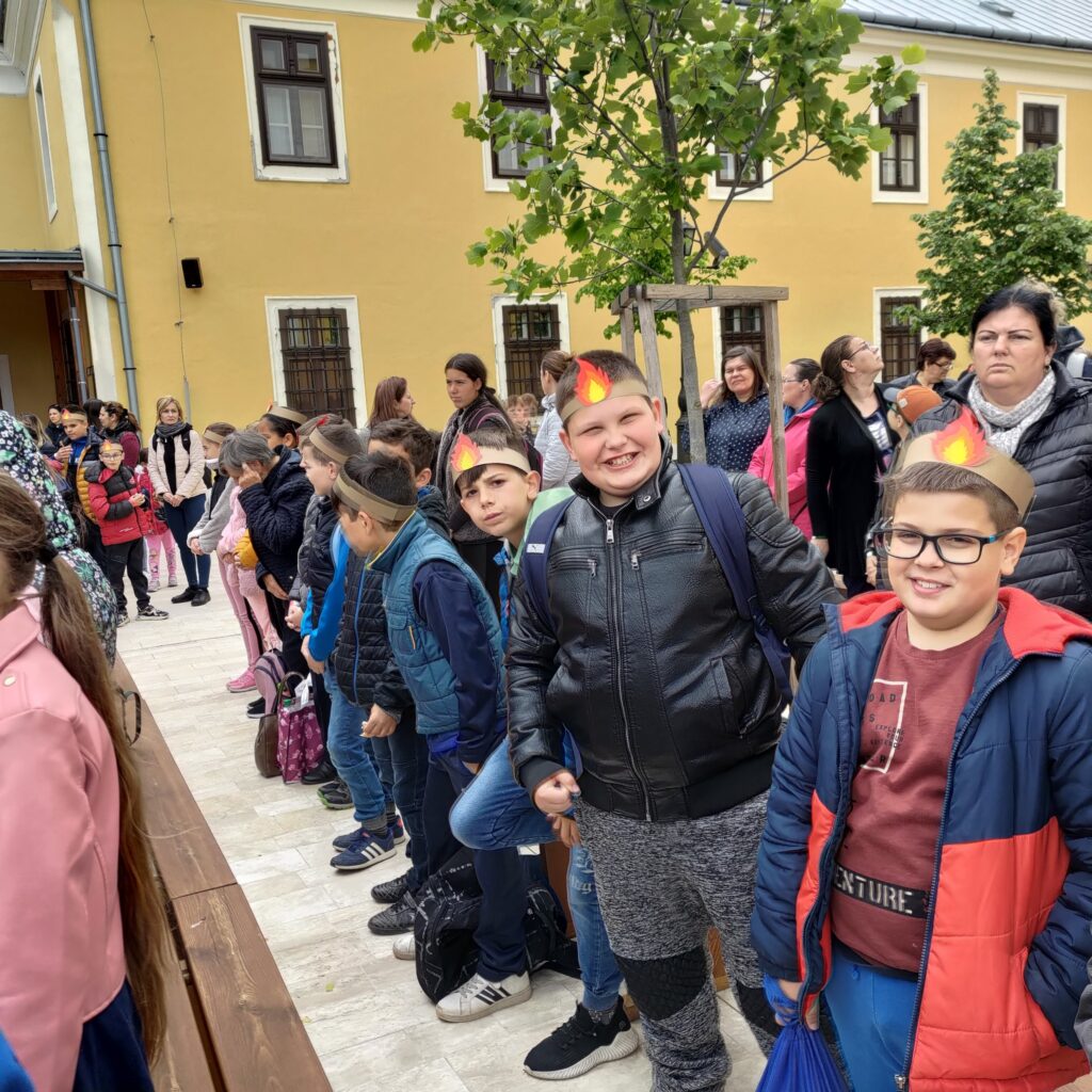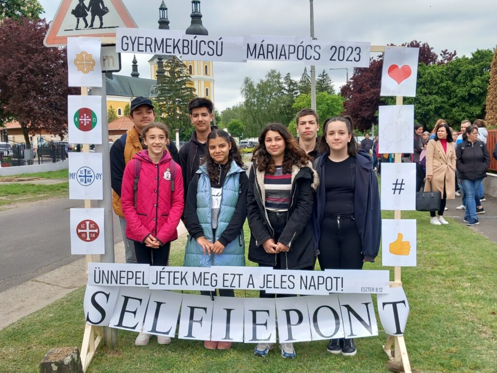 Május 13-án az iskola 2. 4. és 6. évfolyamos tanulói vettek részt Máriapócson az éves gyermekbúcsún. A gyerekek, miután köszöntötték a Szűzanyát a kegytemplomban, a sokéves hagyománynak megfelelően különböző állomásokon próbálhatták ki ügyességüket, játékos kedvüket, felkészültségüket. Nagyon tetszettek mindenkinek a sportra és testmozgásra épülő feladatok, melyeket bibliai témájú állomások tettek még színesebbé. A liturgiát követően még egy rövid vásári sétára is maradt idő a hazaút előtt. KGYZE