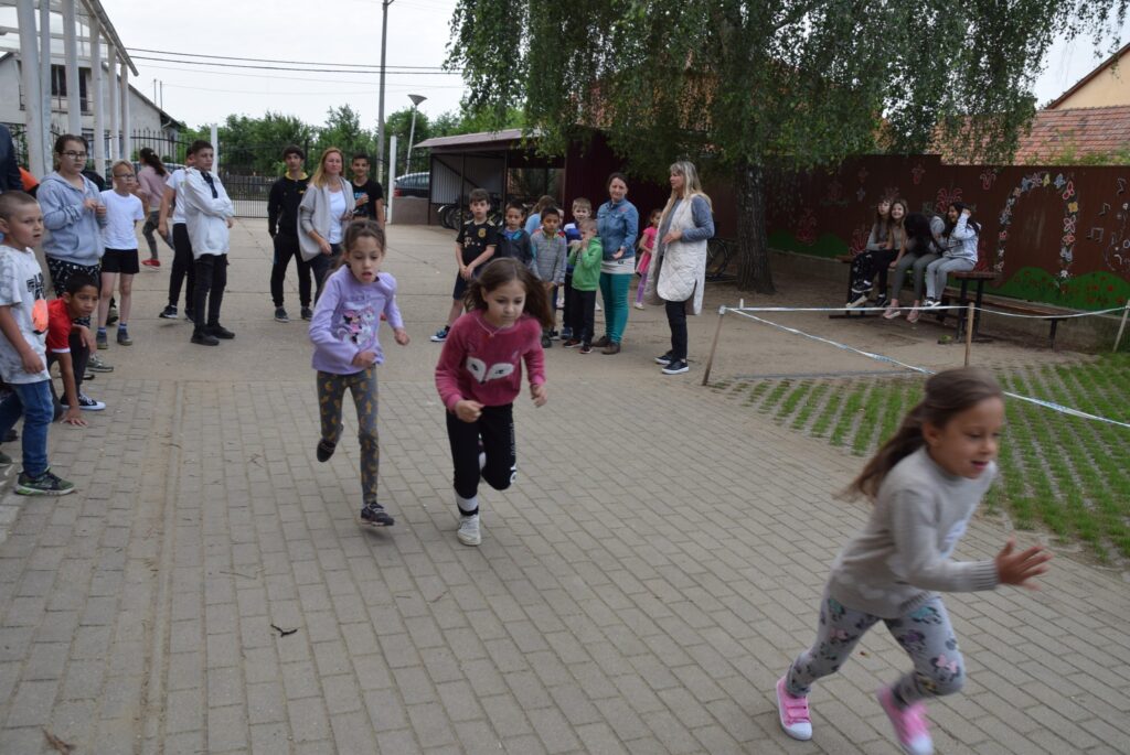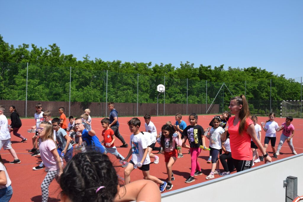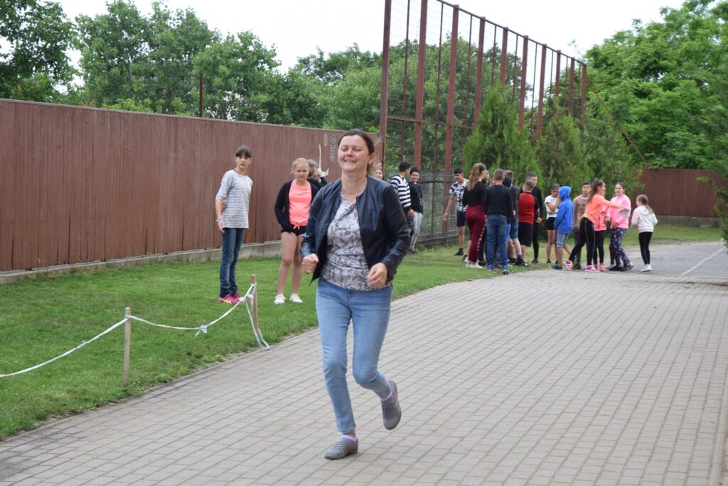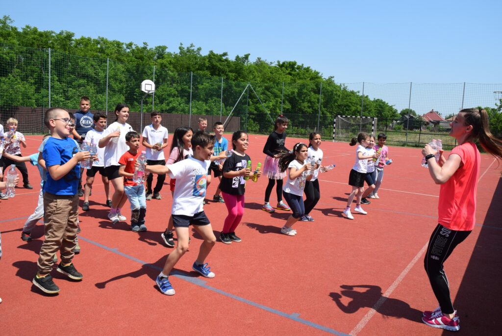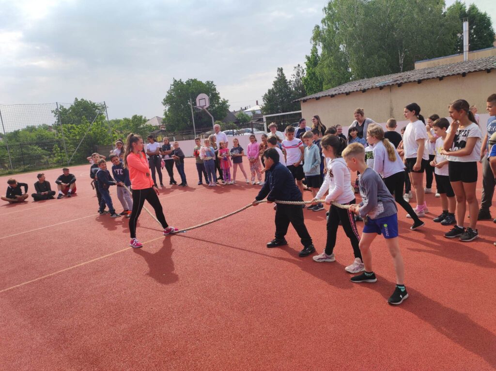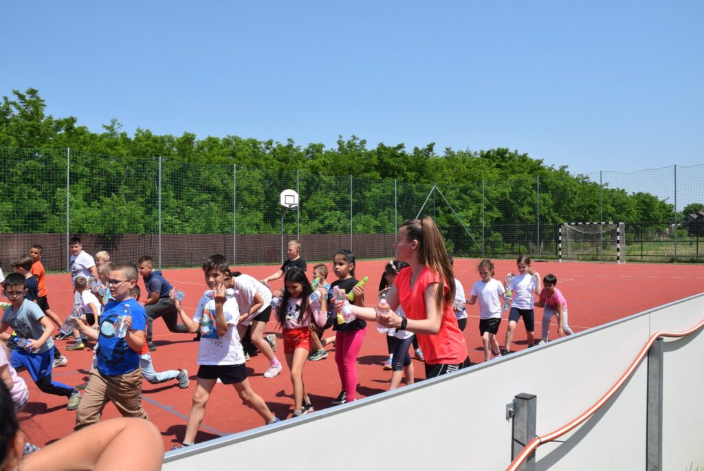 A mai napba minden belefért, ami mozgás, ami sport. A Bogdán Krisztina tanárnő által összeállított program betöltötte az egész napot. Kicsik és nagyok megmozgatták izmaikat, nem maradtak ki a pedagógusok sem. A reggelt egy gyors iskolafutással, majd egy könnyed zumbával kezdtük. Fért még a napba futó –és akadályverseny, kötélhúzás, palackos edzés, szkander bajnokság, kiütő, és persze az elmaradhatatlan tanár-diák zsinórlabda meccs. KGYZE