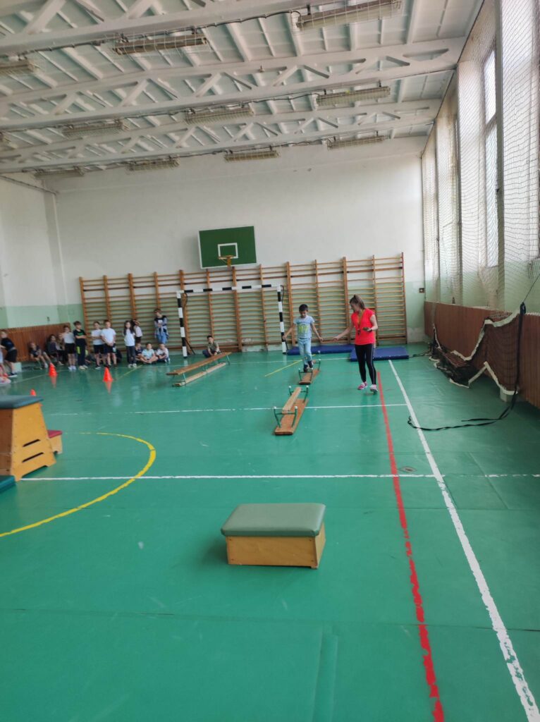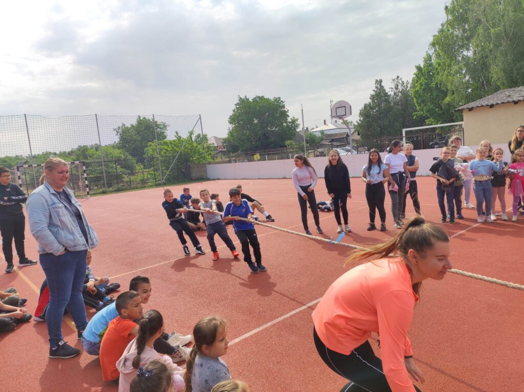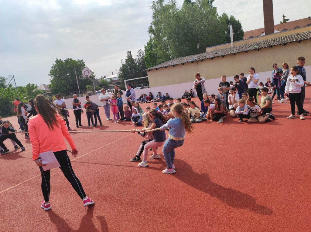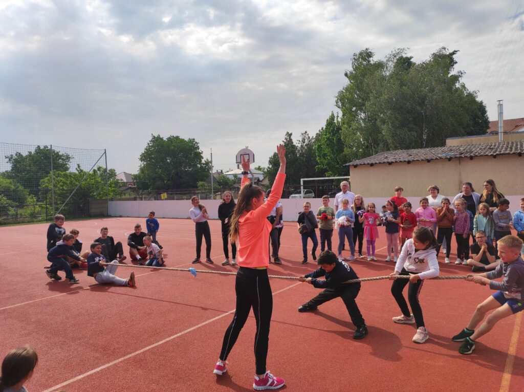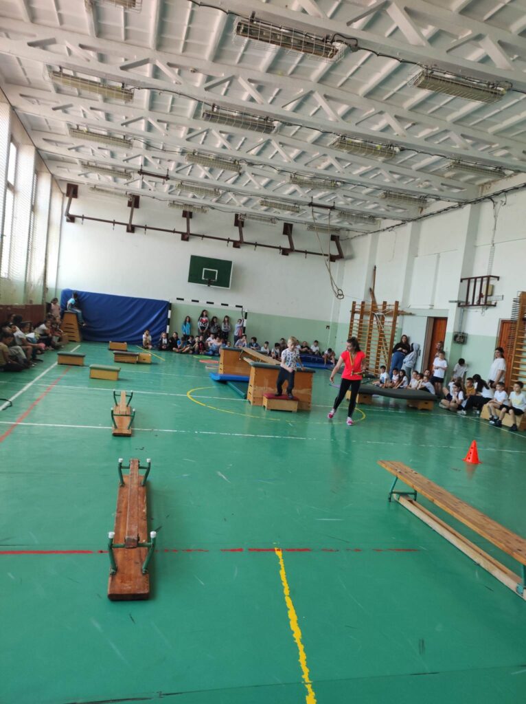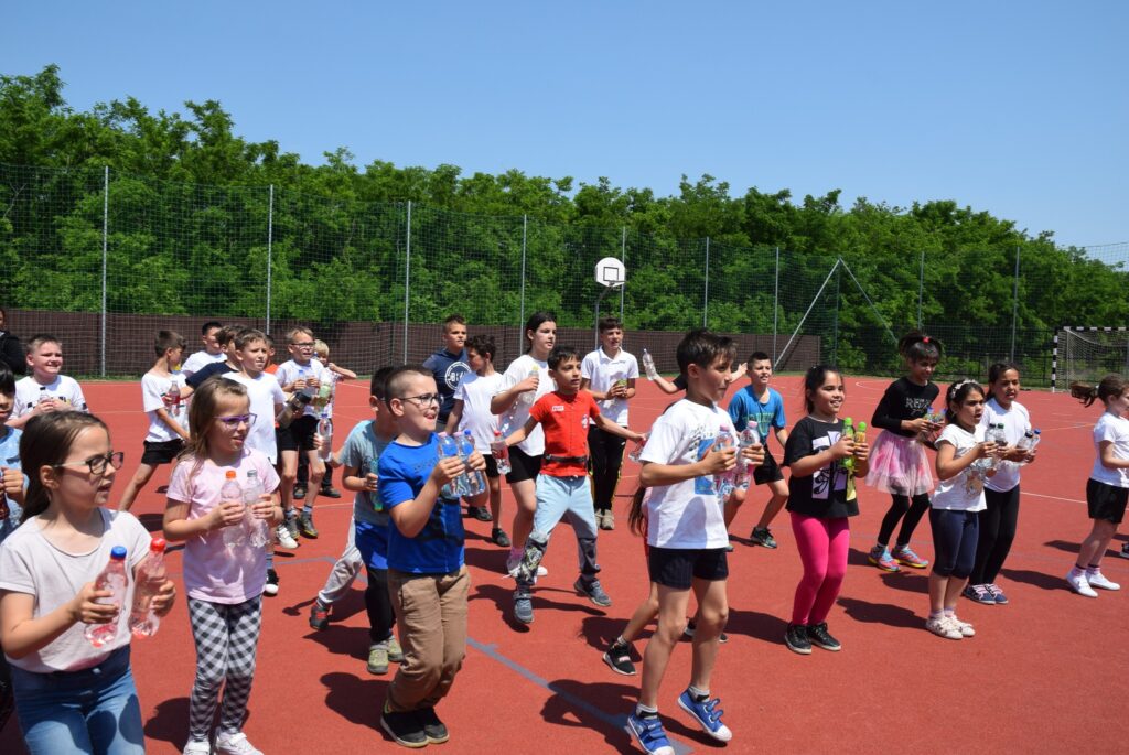 A mai napba minden belefért, ami mozgás, ami sport. A Bogdán Krisztina tanárnő által összeállított program betöltötte az egész napot. Kicsik és nagyok megmozgatták izmaikat, nem maradtak ki a pedagógusok sem. A reggelt egy gyors iskolafutással, majd egy könnyed zumbával kezdtük. Fért még a napba futó –és akadályverseny, kötélhúzás, palackos edzés, szkander bajnokság, kiütő, és persze az elmaradhatatlan tanár-diák zsinórlabda meccs. KGYZE
