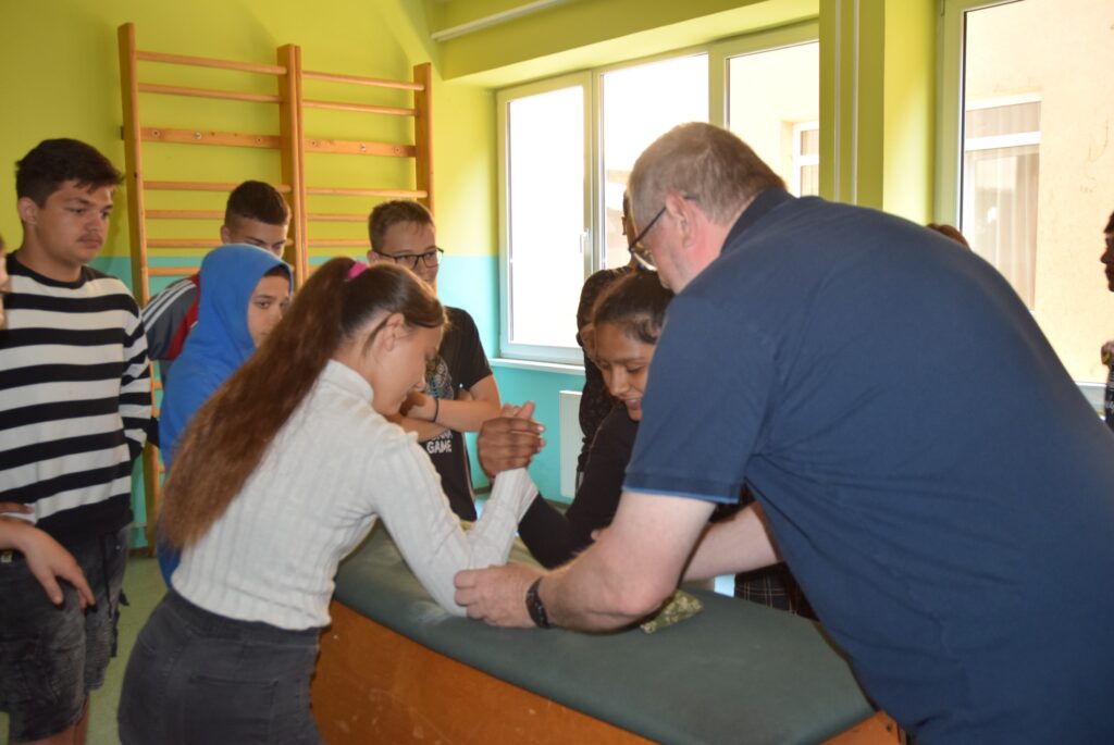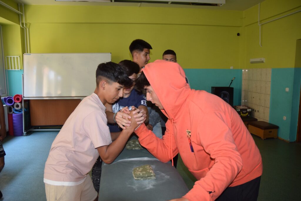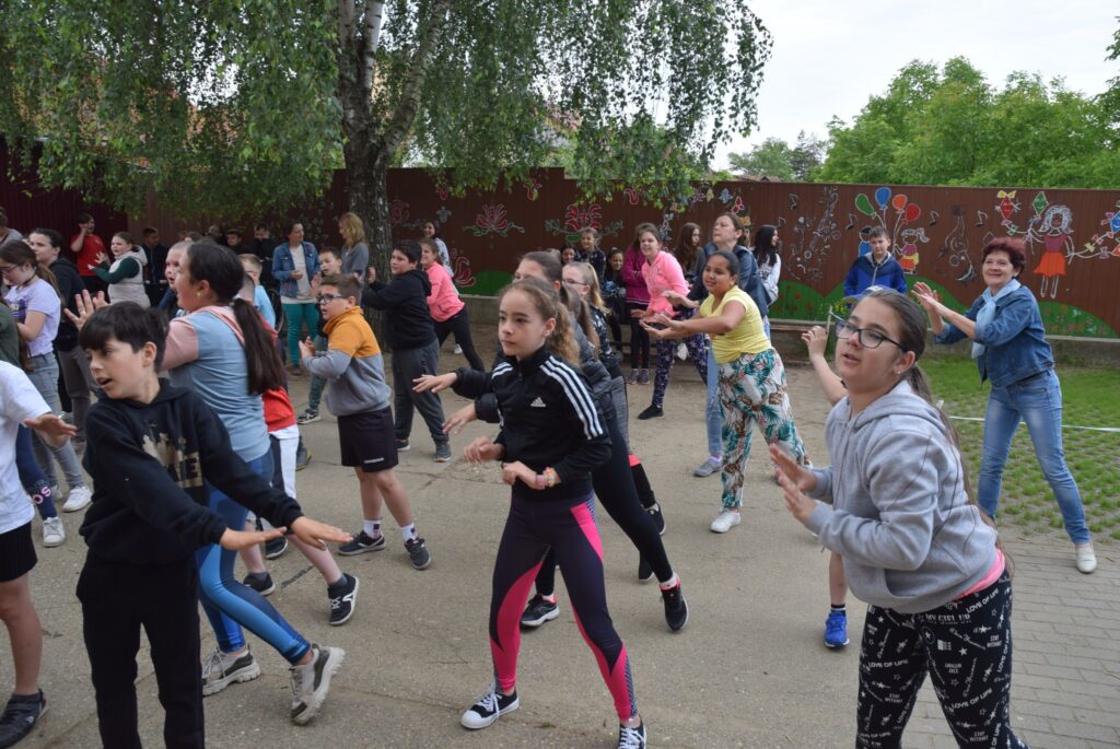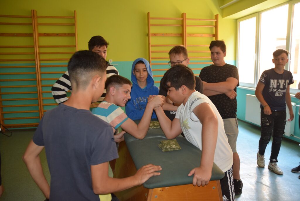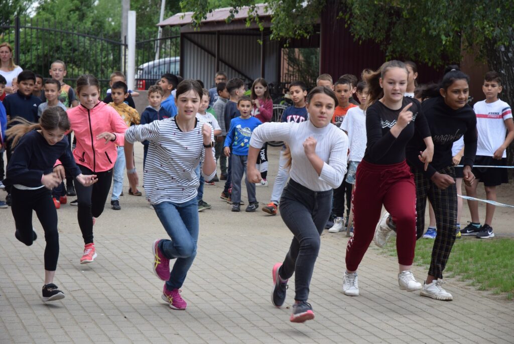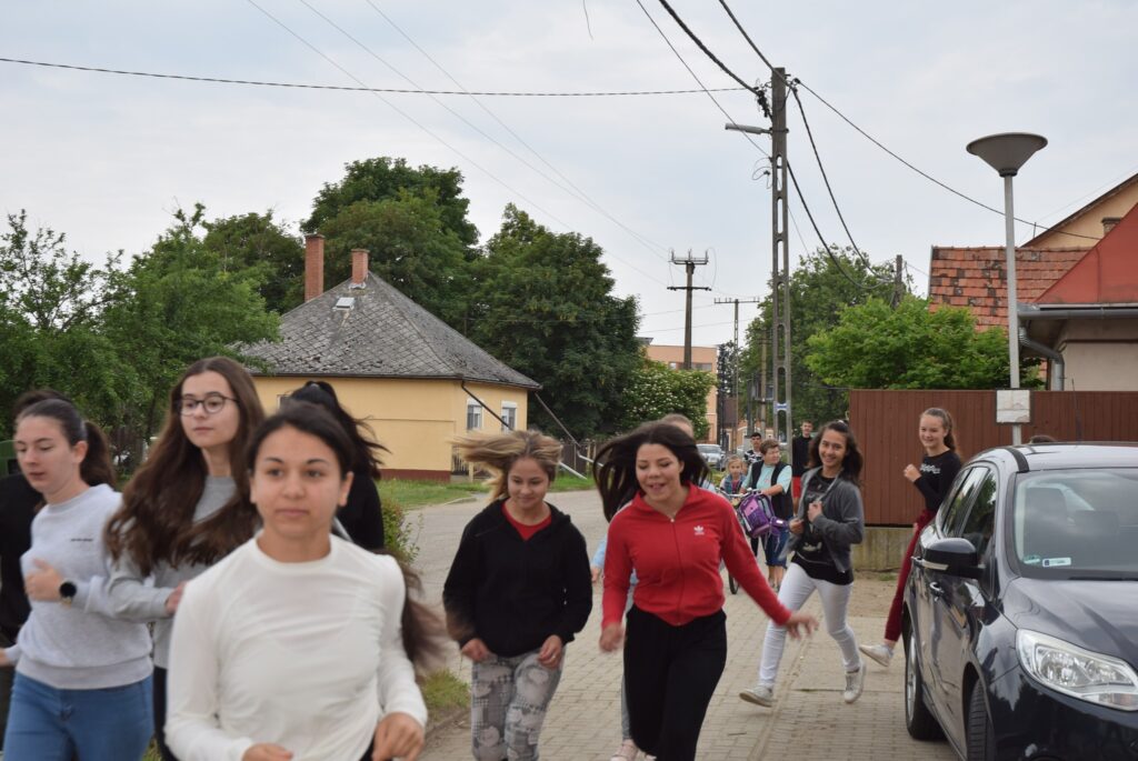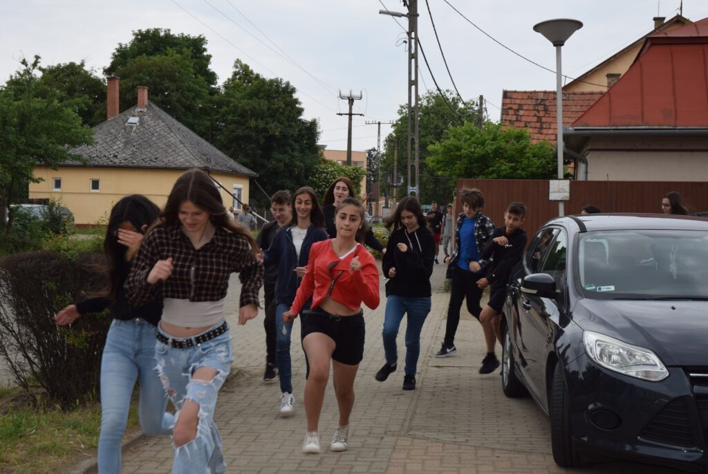A mai napba minden belefért, ami mozgás, ami sport. A Bogdán Krisztina tanárnő által összeállított program betöltötte az egész napot. Kicsik és nagyok megmozgatták izmaikat, nem maradtak ki a pedagógusok sem. A reggelt egy gyors iskolafutással, majd egy könnyed zumbával kezdtük. Fért még a napba futó –és akadályverseny, kötélhúzás, palackos edzés, szkander bajnokság, kiütő, és persze az elmaradhatatlan tanár-diák zsinórlabda meccs. KGYZE