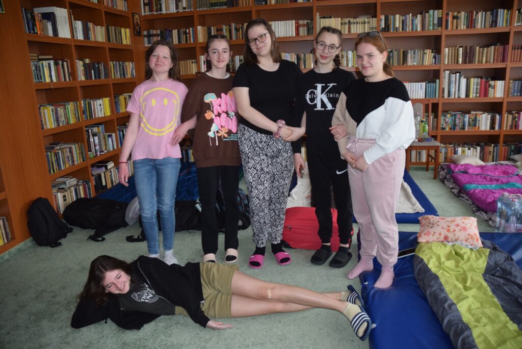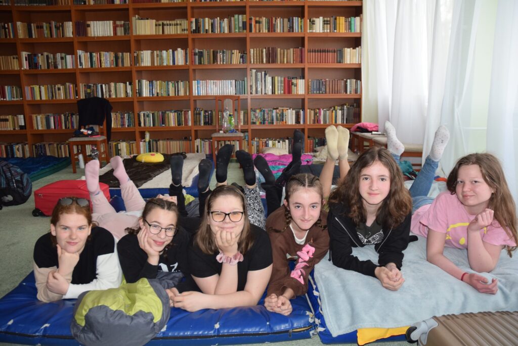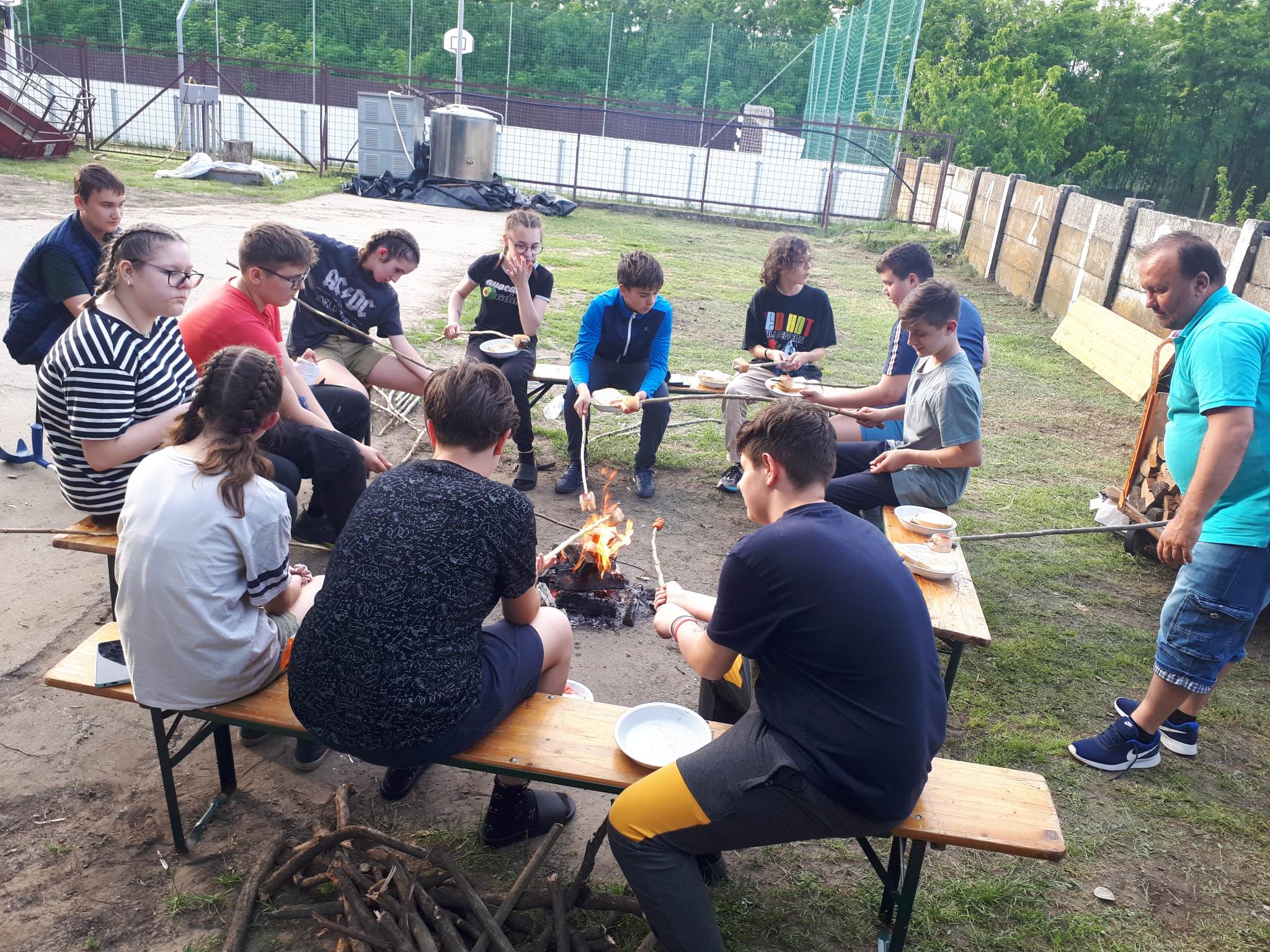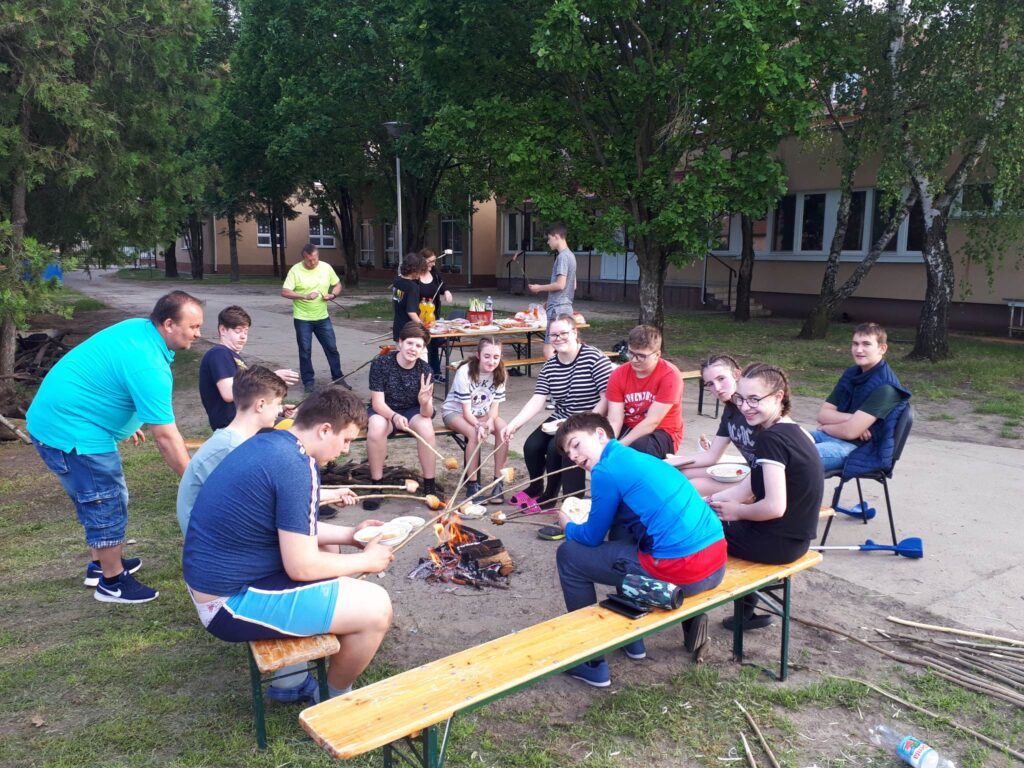 Május utolsó hetében nálunk vendégeskedett a debreceni Szent Efrém egyik hetedik osztálya. Szabó Ildikó és Rinyu Péter pedagógusok vezetésével ők is kipróbálták az erdei iskola programsorozatát, amit előzőleg a helyi és a nyíradonyi diákok is „teszteltek”. Természetesen az éjszakákat is itt töltötték, a lányok a könyvtárat, a fiúk a kis tornatermet vették birtokba. A hét folyamán készült fotók magukért beszélnek, de azért a diákok is elmondták, hogy nagyon jól érezték magukat a Szent Piroskában. Örömmel láttuk vendégül őket. KGYZE