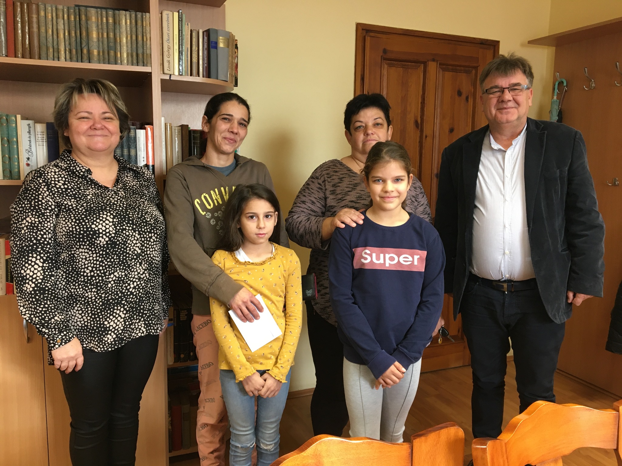 Iskolánk pályázatot nyújtott be a Katolikus Pedagógiai Intézet által egyházi iskolákban tanulók számára meghirdetett Szent Gellért ösztöndíjra. A pályázaton azok a diákok vehettek részt, akiknek családjában legalább három gyermeket nevelnek. Iskolánkból jó tanulmányi eredményükkel és példás magatartásukkal, szorgalmukkal Horváth Nóra és Kovács Viktória kiérdemelte ki a jutalmat. A diákok négy hónapon át részesülnek az ösztöndíjban, melynek első részét a mai napon vehették át Garda László intézményvezetőtőtl.