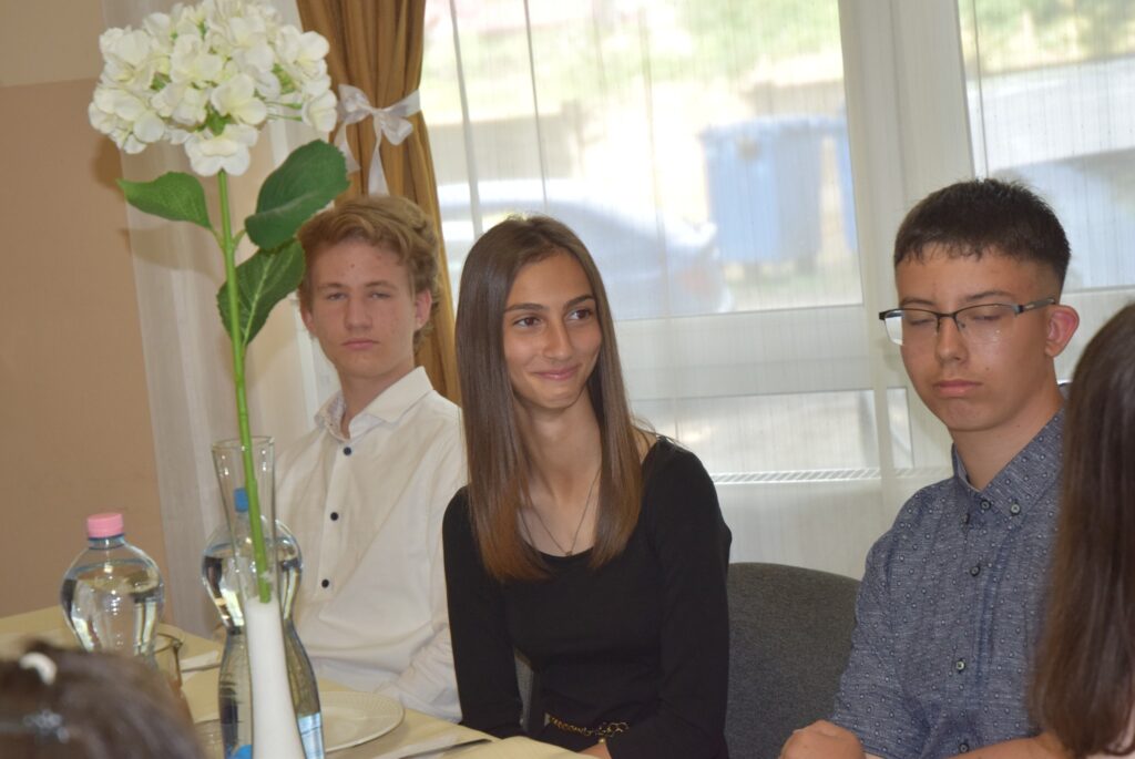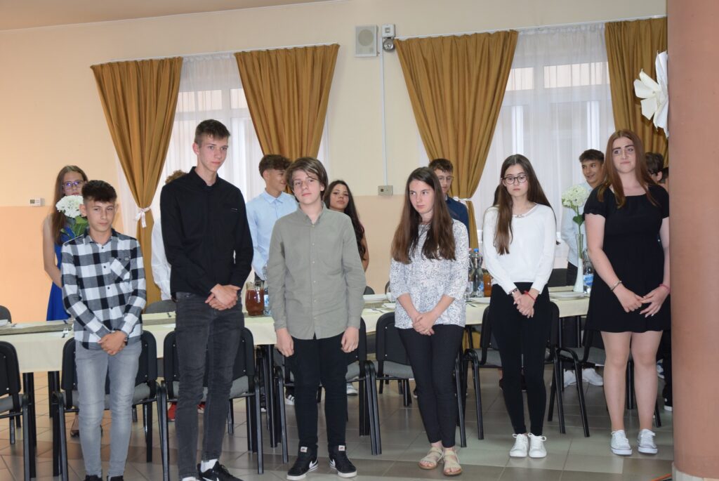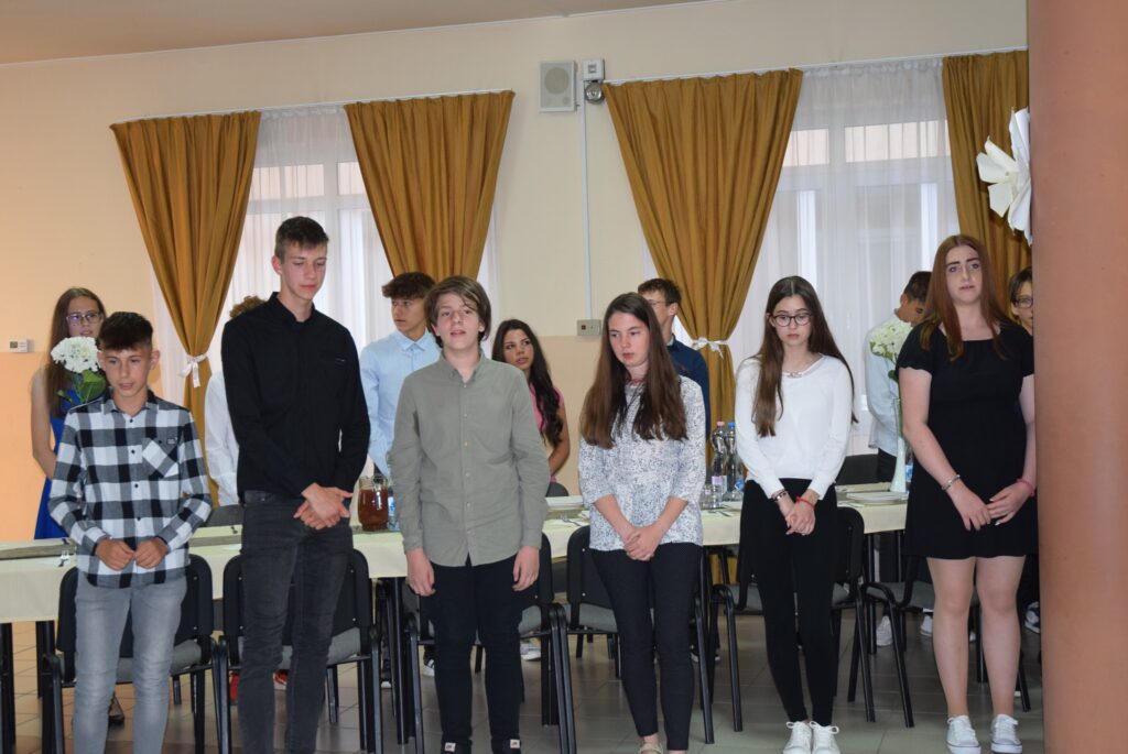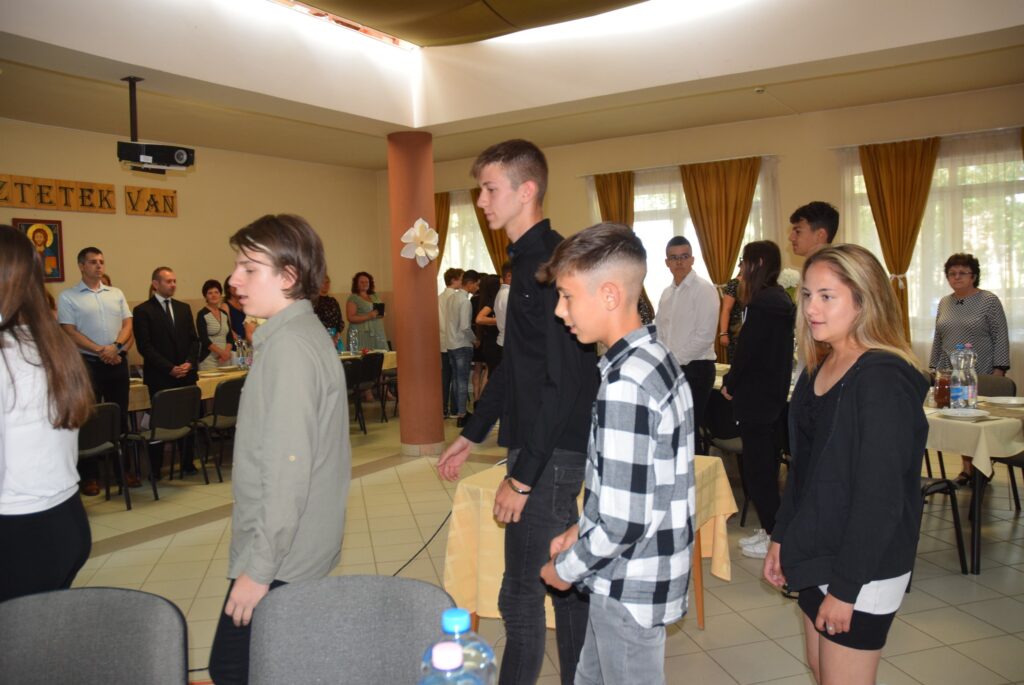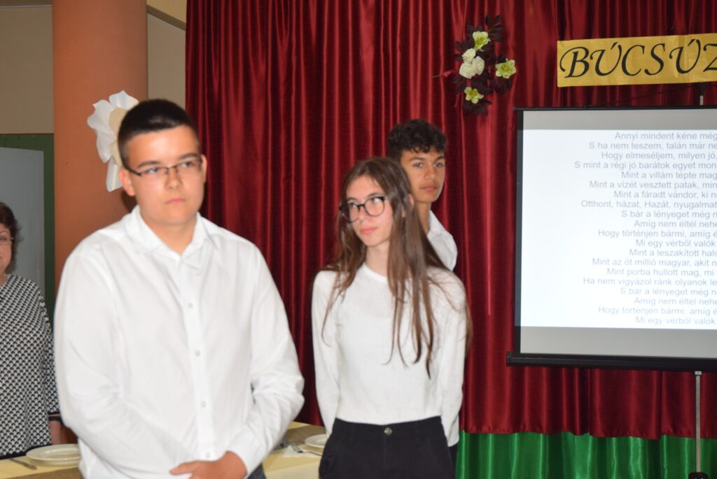 Ma délután, a ballagás előtt két nappal, az iskola pedagógusai és diákjai megható, de azért nagyon jó hangulatú, vacsorával egybekötött búcsúesten vettek részt az iskola aulájában. Előbb a diákok mondtak köszönetet tanáraiknak, majd osztályonként bemutatták mókás, fotókból összeállított kisfilmjüket, amivel az együtt töltött 8 évet idézték. Ezt követően átadták hálaajándékaikat az őket tanító pedagógusoknak. Az intézmény nevében Garda László igazgató úr köszönt el a diákoktól. A közös éneklés és a vacsora után mindenkinek jól esett egy-egy hűsítő jégkrém. KGYZE