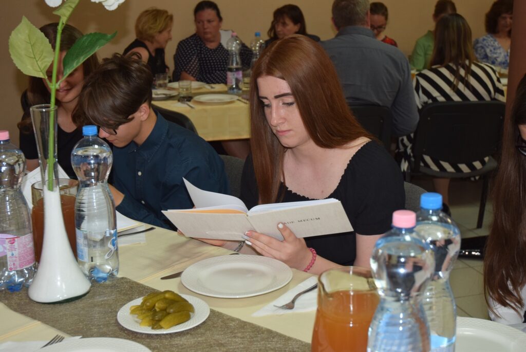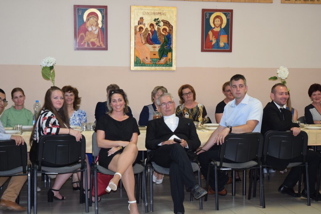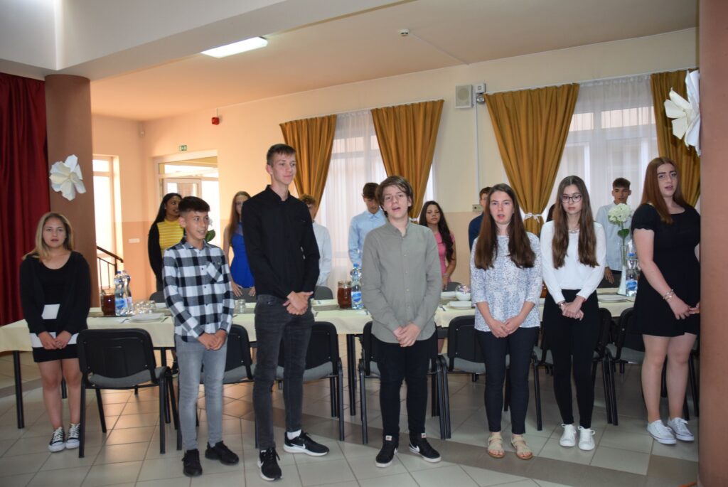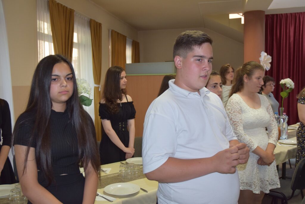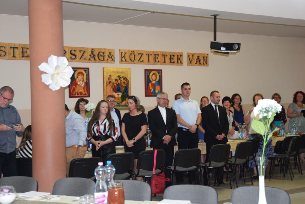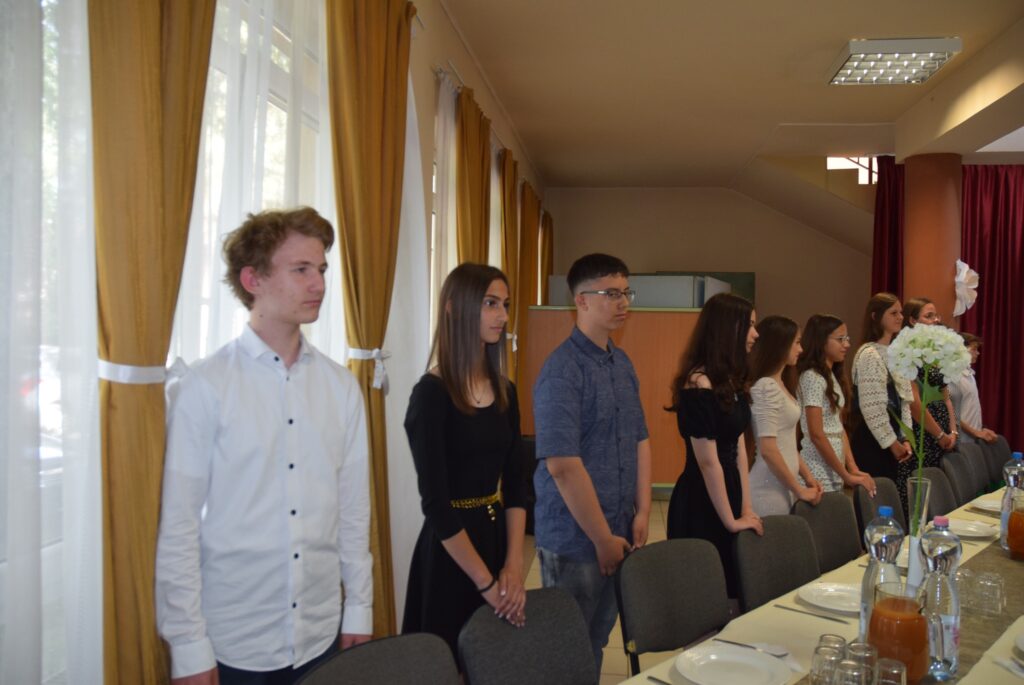 Ma délután, a ballagás előtt két nappal, az iskola pedagógusai és diákjai megható, de azért nagyon jó hangulatú, vacsorával egybekötött búcsúesten vettek részt az iskola aulájában. Előbb a diákok mondtak köszönetet tanáraiknak, majd osztályonként bemutatták mókás, fotókból összeállított kisfilmjüket, amivel az együtt töltött 8 évet idézték. Ezt követően átadták hálaajándékaikat az őket tanító pedagógusoknak. Az intézmény nevében Garda László igazgató úr köszönt el a diákoktól. A közös éneklés és a vacsora után mindenkinek jól esett egy-egy hűsítő jégkrém. KGYZE
