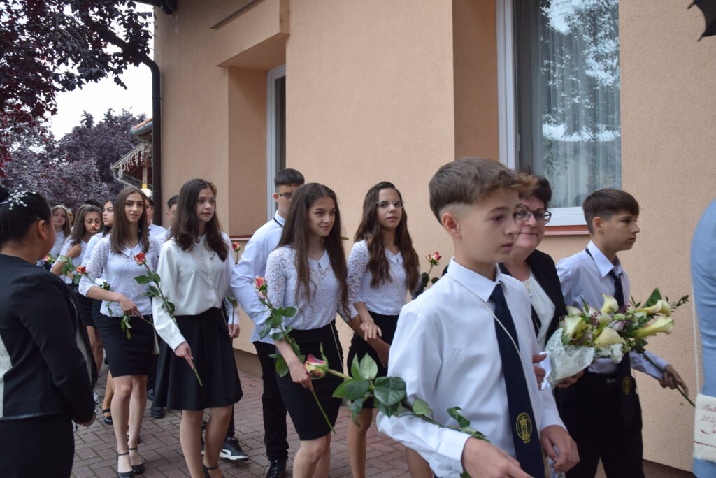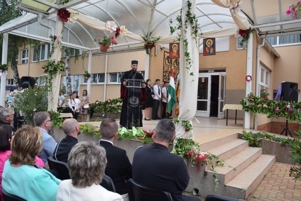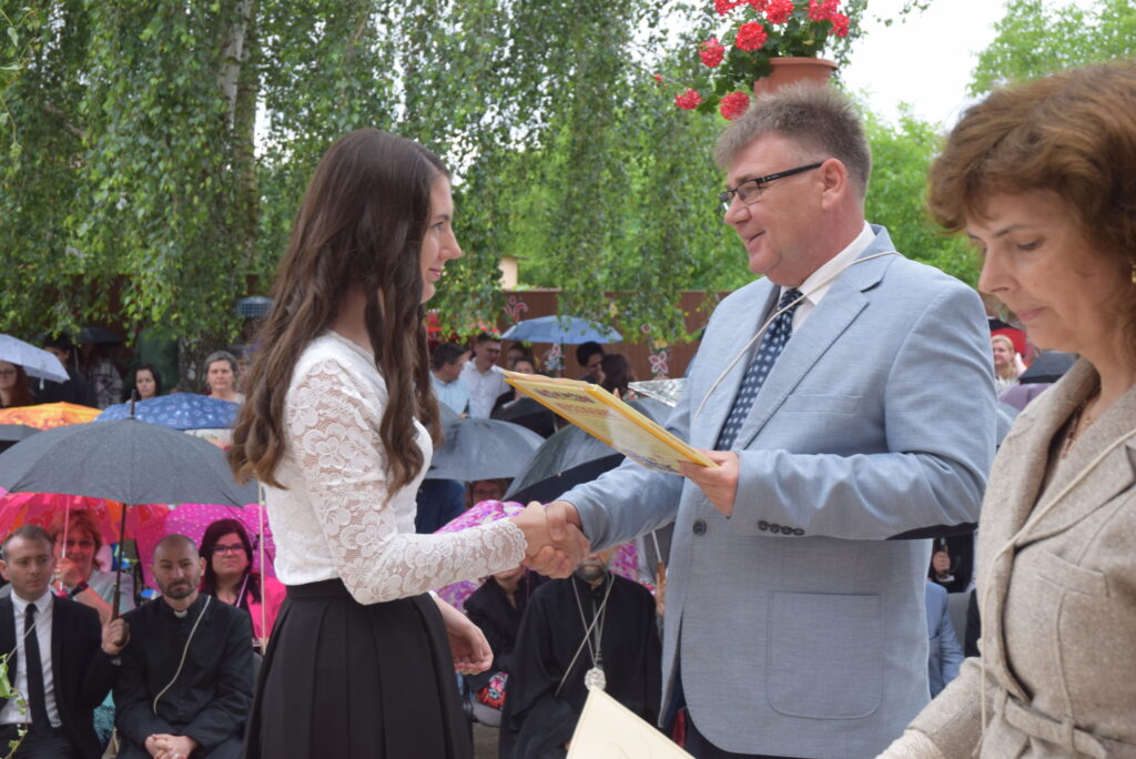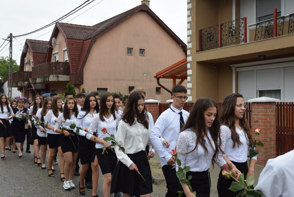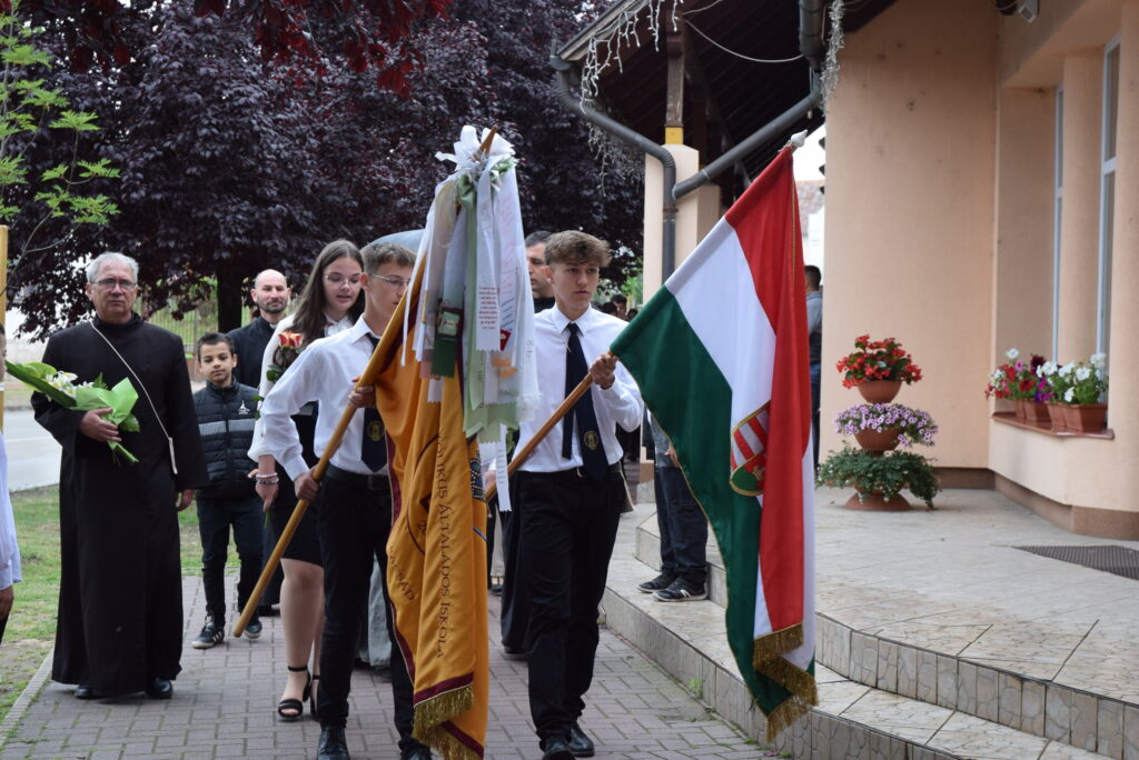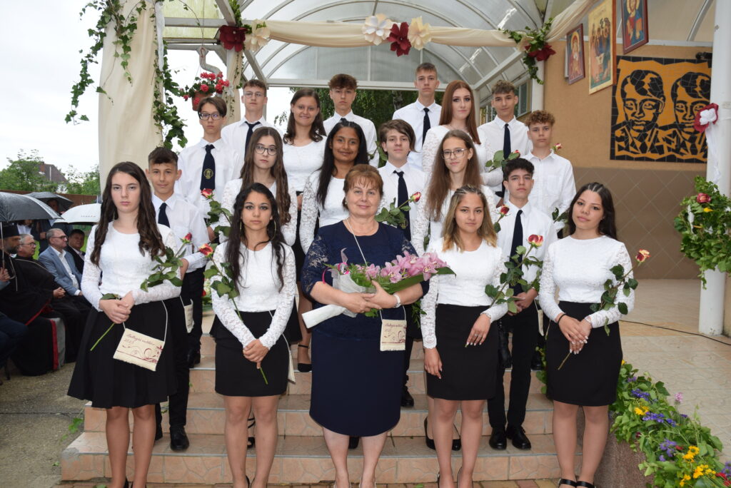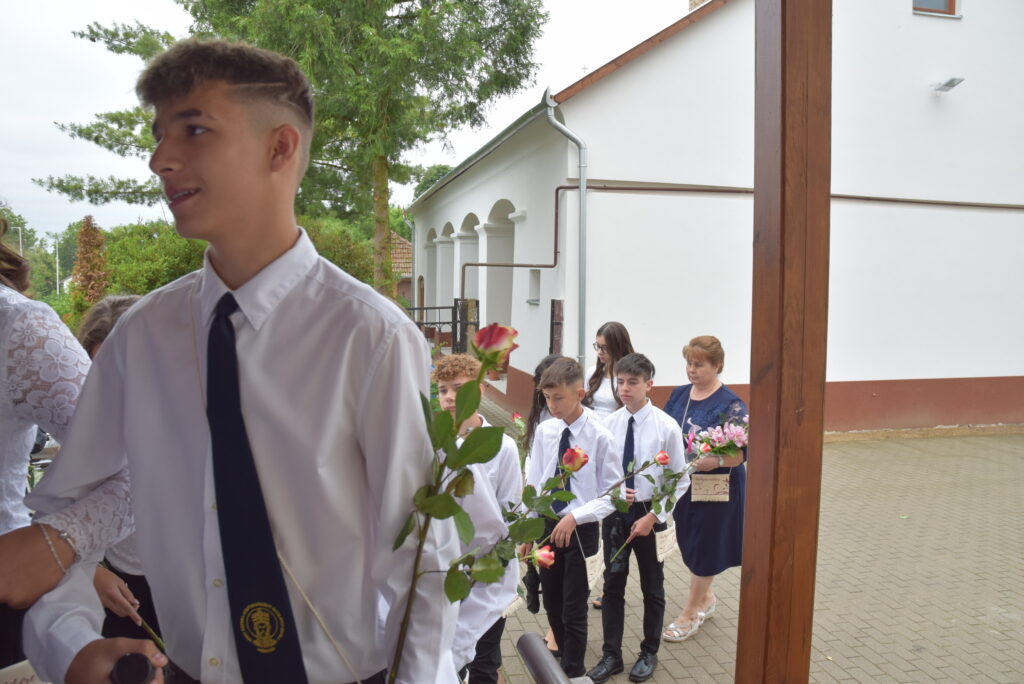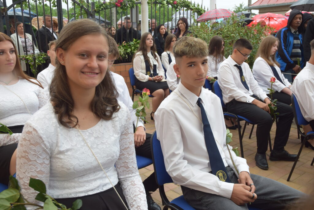 Szombat délelőtt 39 nyolcadikos diákunk vett végső búcsút az általános iskolai évektől. A percről percre változó időjárás jelentést legalább annyira figyelték, várták az érintett diákok, pedagógusok és szülők, mint magát a ballagási ünnepséget. A csodaszépen feldíszített iskolára és a búcsúzó diákokra azonban a szülőkön, diákokon kívül a szemerkélő eső is kíváncsi volt, így idén esernyővel indultak utolsó általános iskolai útjukra a ballagók. Ünnepségünket megtisztelte Kocsis Fülöp metropolita atya is, aki a görögkatolikus templomban a gyerekekkel együtt imádkozott és adott hálát. A diáktársak sorfala között, esernyővel a kezükben, énekelve vonultak a ballagók az iskola udvarára, ahol már az esővédett árkádok alatt foglalhatták el helyüket, és hallgathatták végig a búcsúverseket, búcsúgondolatokat. A ballagók emlékszalagjait Lénárt Zsanett és Kerti Csenge kötötte fel az iskola zászlajára, majd a hetedikesek nevében Számadó Szonja és Szemán Amira, a nyolcadikosok nevében Szász Borbála és Tóth Zsuzsanna búcsúzott. Ezt követően Garda László intézményvezető szólt a ballagókhoz, majd köszönetet mondott a szülői munkaközösség tagjainak. Átvehették az okleveleket és a könyvjutalmakat azok a diákok is, akik kiérdemelték azt a tanulmányi és közösségi munkájuk, versenyeredményeik alapján. A rangos Szent Piroska-díjat ebben az évben négy tanuló vehette át. Büte Bíborka, Szász Borbála 8. a, valamint Kerti Csenge és Tóth Zsuzsanna 8. b osztályos tanulók. Az ünnepség végén Fülöp atya mondta el útravaló gondolatait a ballagóknak, akik a búcsúéneket követően az osztálytermekben Hajdufiná Imre Éva és Tóth Elekné osztályfőnökökkel együtt végleg elbúcsúztak az általános iskolai évektől. Minden végzős diákunknak sok sikert, kitartást és hitet kívánunk életük következő szakaszához. KGYZE