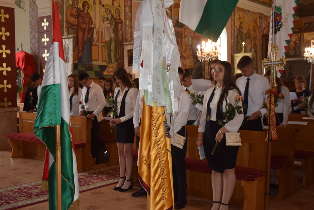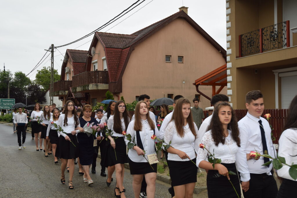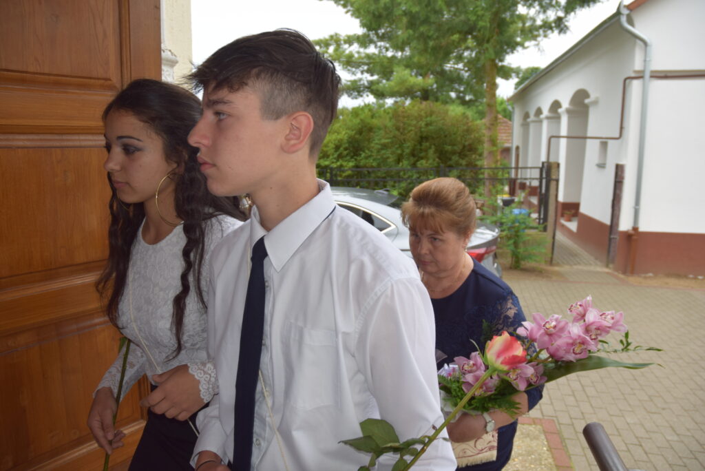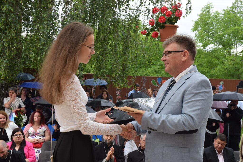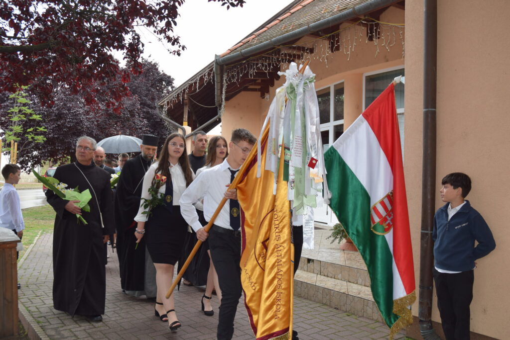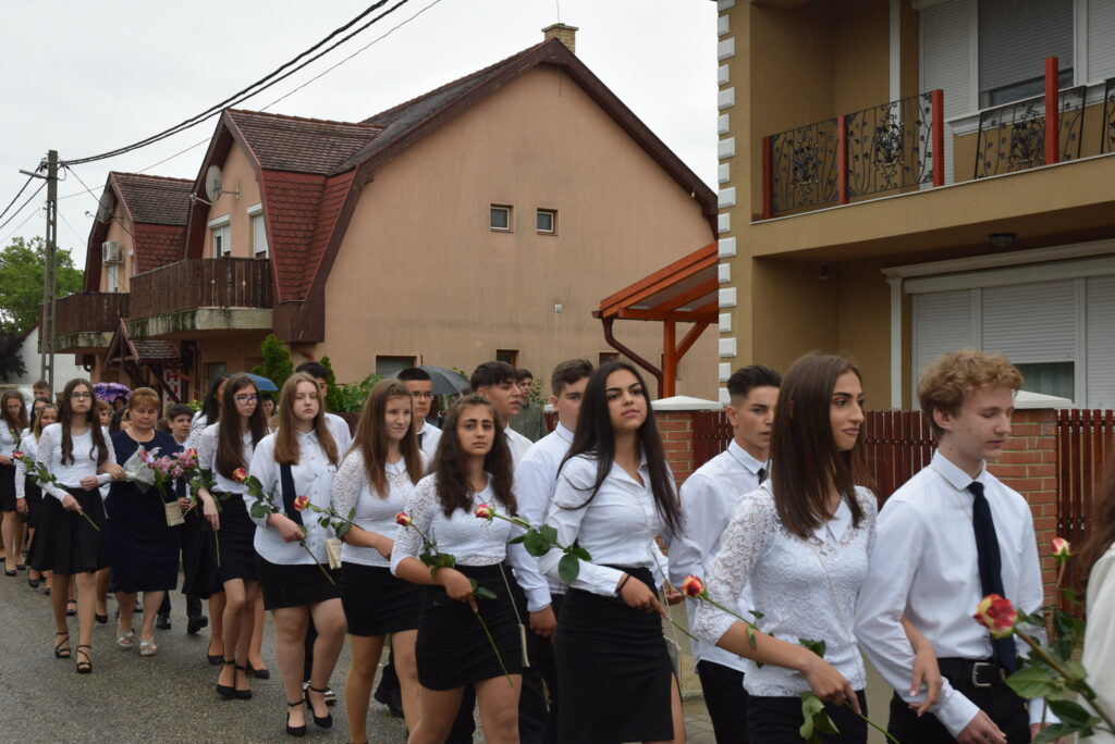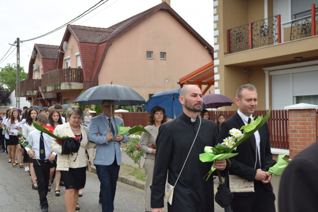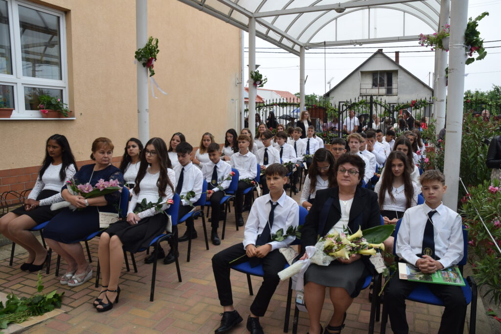 Szombat délelőtt 39 nyolcadikos diákunk vett végső búcsút az általános iskolai évektől. A percről percre változó időjárás jelentést legalább annyira figyelték, várták az érintett diákok, pedagógusok és szülők, mint magát a ballagási ünnepséget. A csodaszépen feldíszített iskolára és a búcsúzó diákokra azonban a szülőkön, diákokon kívül a szemerkélő eső is kíváncsi volt, így idén esernyővel indultak utolsó általános iskolai útjukra a ballagók. Ünnepségünket megtisztelte Kocsis Fülöp metropolita atya is, aki a görögkatolikus templomban a gyerekekkel együtt imádkozott és adott hálát. A diáktársak sorfala között, esernyővel a kezükben, énekelve vonultak a ballagók az iskola udvarára, ahol már az esővédett árkádok alatt foglalhatták el helyüket, és hallgathatták végig a búcsúverseket, búcsúgondolatokat. A ballagók emlékszalagjait Lénárt Zsanett és Kerti Csenge kötötte fel az iskola zászlajára, majd a hetedikesek nevében Számadó Szonja és Szemán Amira, a nyolcadikosok nevében Szász Borbála és Tóth Zsuzsanna búcsúzott. Ezt követően Garda László intézményvezető szólt a ballagókhoz, majd köszönetet mondott a szülői munkaközösség tagjainak. Átvehették az okleveleket és a könyvjutalmakat azok a diákok is, akik kiérdemelték azt a tanulmányi és közösségi munkájuk, versenyeredményeik alapján. A rangos Szent Piroska-díjat ebben az évben négy tanuló vehette át. Büte Bíborka, Szász Borbála 8. a, valamint Kerti Csenge és Tóth Zsuzsanna 8. b osztályos tanulók. Az ünnepség végén Fülöp atya mondta el útravaló gondolatait a ballagóknak, akik a búcsúéneket követően az osztálytermekben Hajdufiná Imre Éva és Tóth Elekné osztályfőnökökkel együtt végleg elbúcsúztak az általános iskolai évektől. Minden végzős diákunknak sok sikert, kitartást és hitet kívánunk életük következő szakaszához. KGYZE