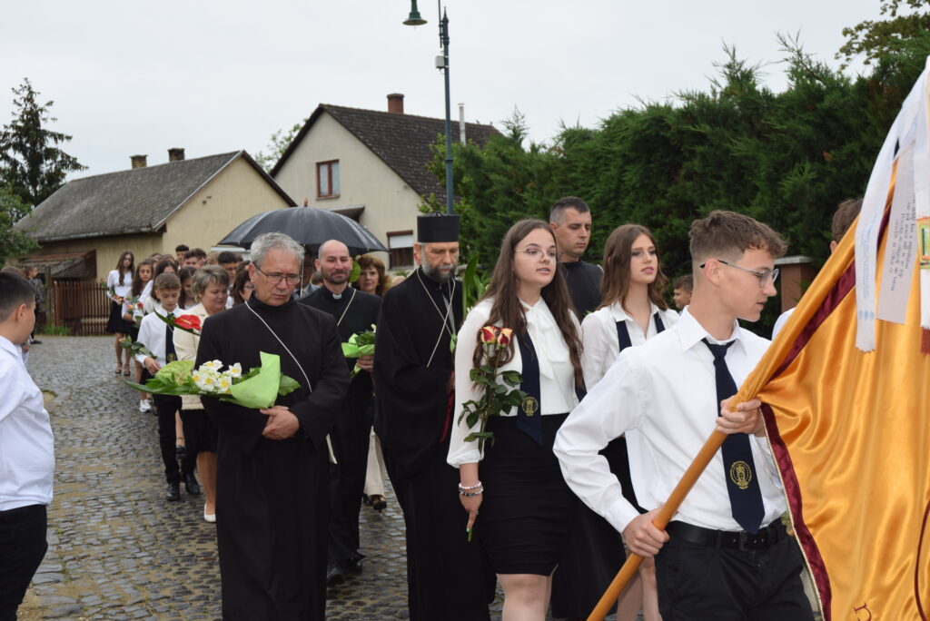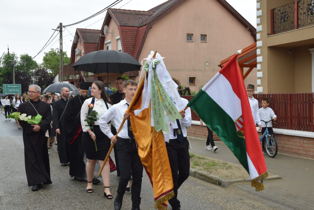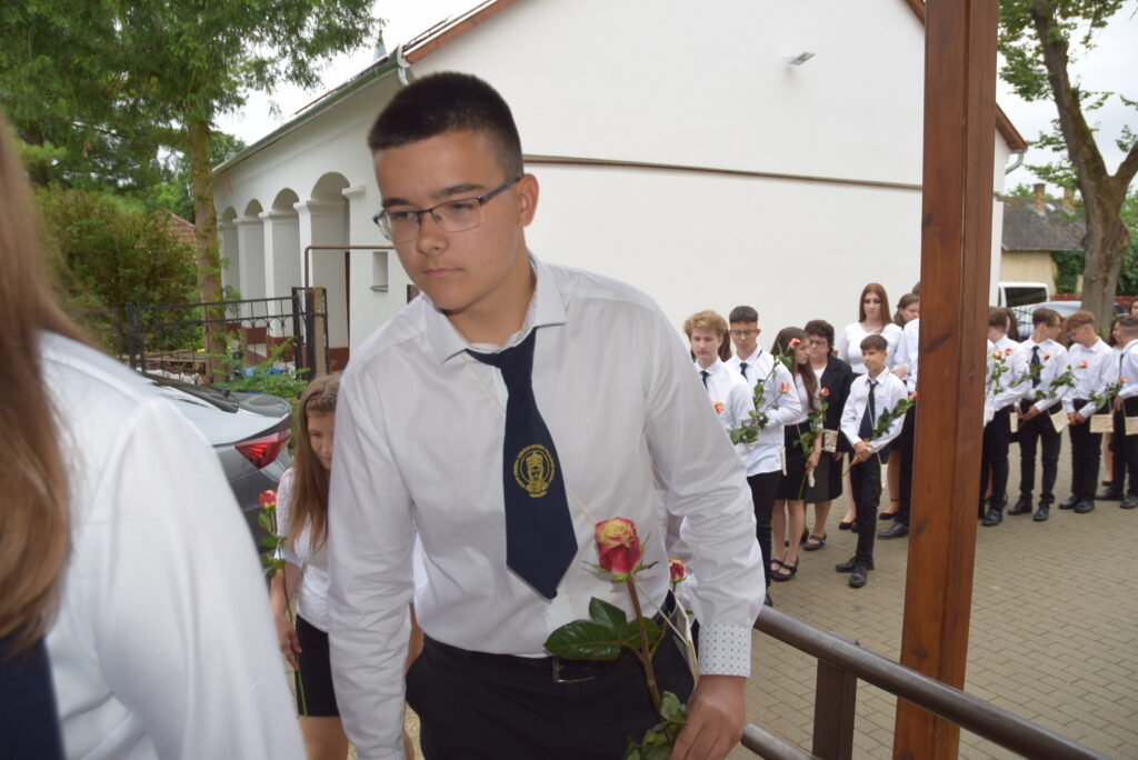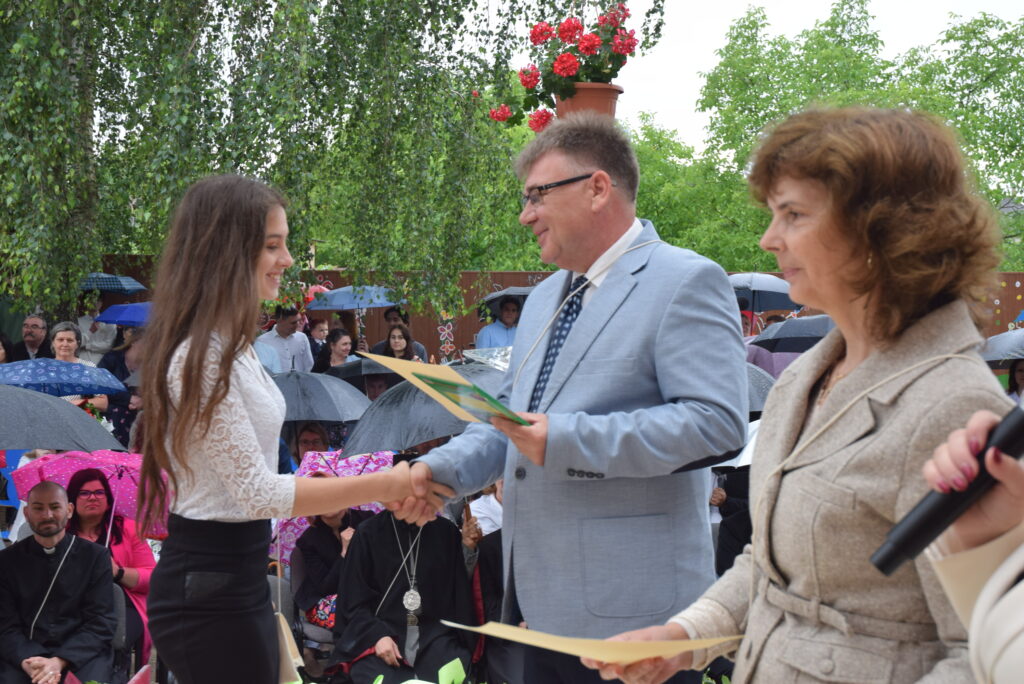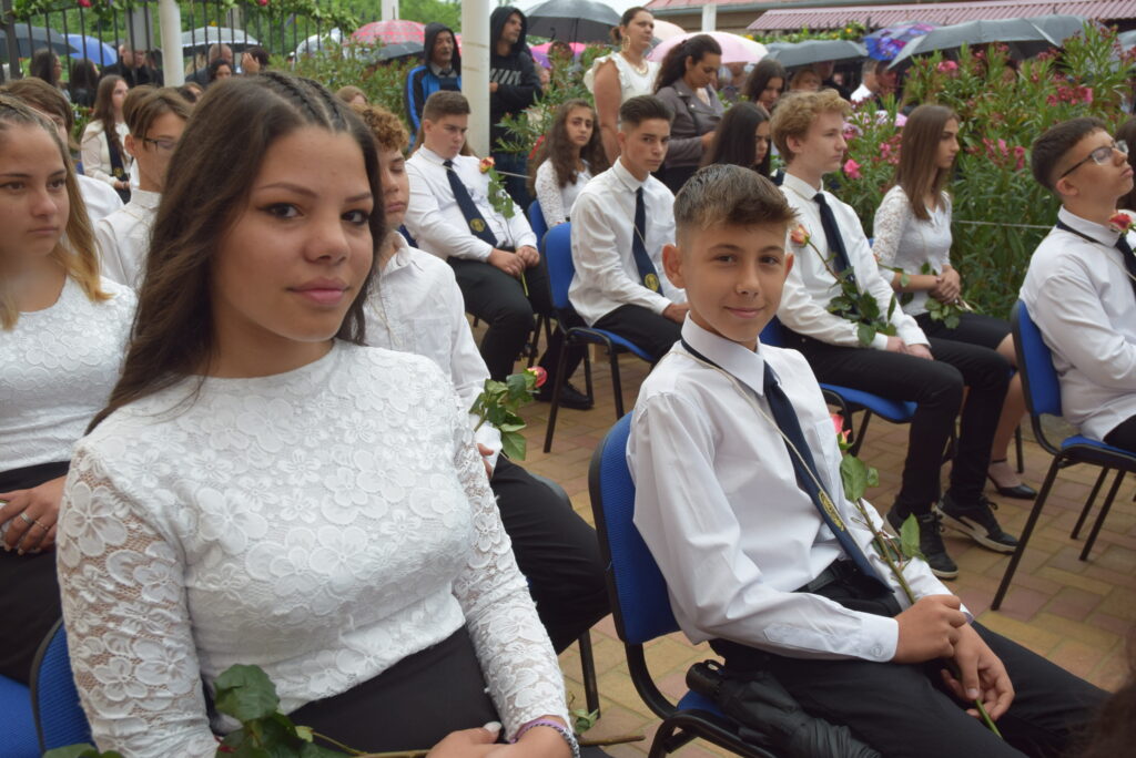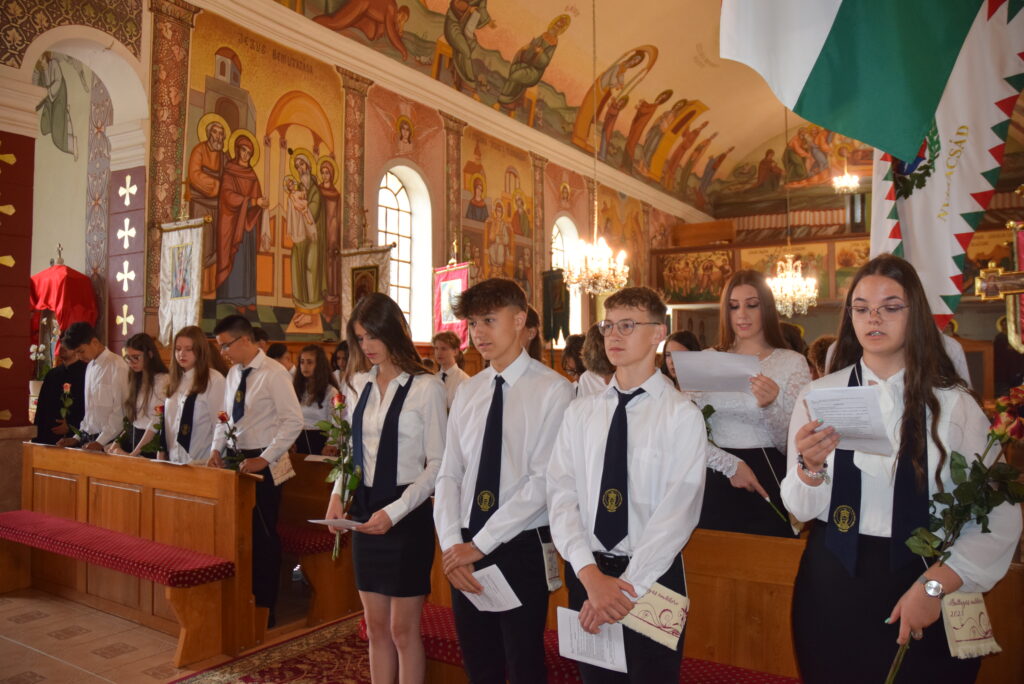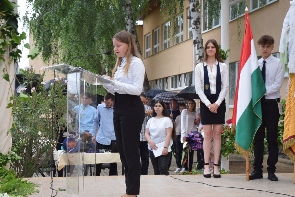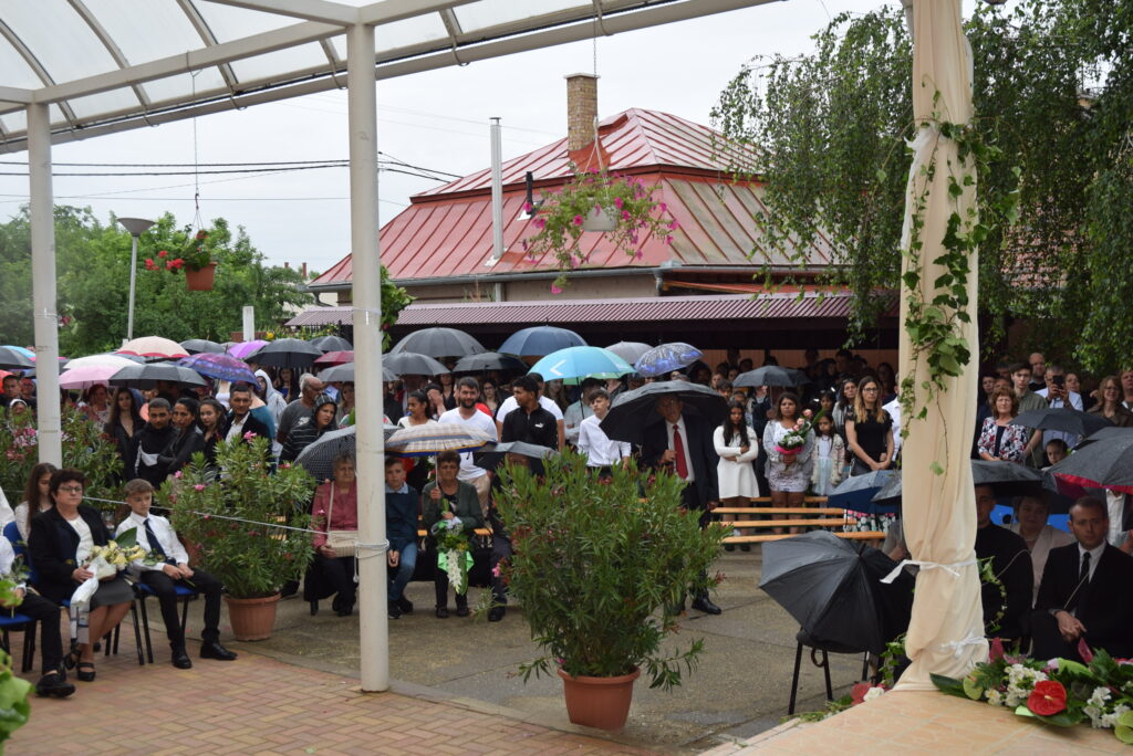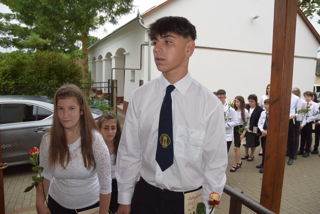 Szombat délelőtt 39 nyolcadikos diákunk vett végső búcsút az általános iskolai évektől. A percről percre változó időjárás jelentést legalább annyira figyelték, várták az érintett diákok, pedagógusok és szülők, mint magát a ballagási ünnepséget. A csodaszépen feldíszített iskolára és a búcsúzó diákokra azonban a szülőkön, diákokon kívül a szemerkélő eső is kíváncsi volt, így idén esernyővel indultak utolsó általános iskolai útjukra a ballagók. Ünnepségünket megtisztelte Kocsis Fülöp metropolita atya is, aki a görögkatolikus templomban a gyerekekkel együtt imádkozott és adott hálát. A diáktársak sorfala között, esernyővel a kezükben, énekelve vonultak a ballagók az iskola udvarára, ahol már az esővédett árkádok alatt foglalhatták el helyüket, és hallgathatták végig a búcsúverseket, búcsúgondolatokat. A ballagók emlékszalagjait Lénárt Zsanett és Kerti Csenge kötötte fel az iskola zászlajára, majd a hetedikesek nevében Számadó Szonja és Szemán Amira, a nyolcadikosok nevében Szász Borbála és Tóth Zsuzsanna búcsúzott. Ezt követően Garda László intézményvezető szólt a ballagókhoz, majd köszönetet mondott a szülői munkaközösség tagjainak. Átvehették az okleveleket és a könyvjutalmakat azok a diákok is, akik kiérdemelték azt a tanulmányi és közösségi munkájuk, versenyeredményeik alapján. A rangos Szent Piroska-díjat ebben az évben négy tanuló vehette át. Büte Bíborka, Szász Borbála 8. a, valamint Kerti Csenge és Tóth Zsuzsanna 8. b osztályos tanulók. Az ünnepség végén Fülöp atya mondta el útravaló gondolatait a ballagóknak, akik a búcsúéneket követően az osztálytermekben Hajdufiná Imre Éva és Tóth Elekné osztályfőnökökkel együtt végleg elbúcsúztak az általános iskolai évektől. Minden végzős diákunknak sok sikert, kitartást és hitet kívánunk életük következő szakaszához. KGYZE