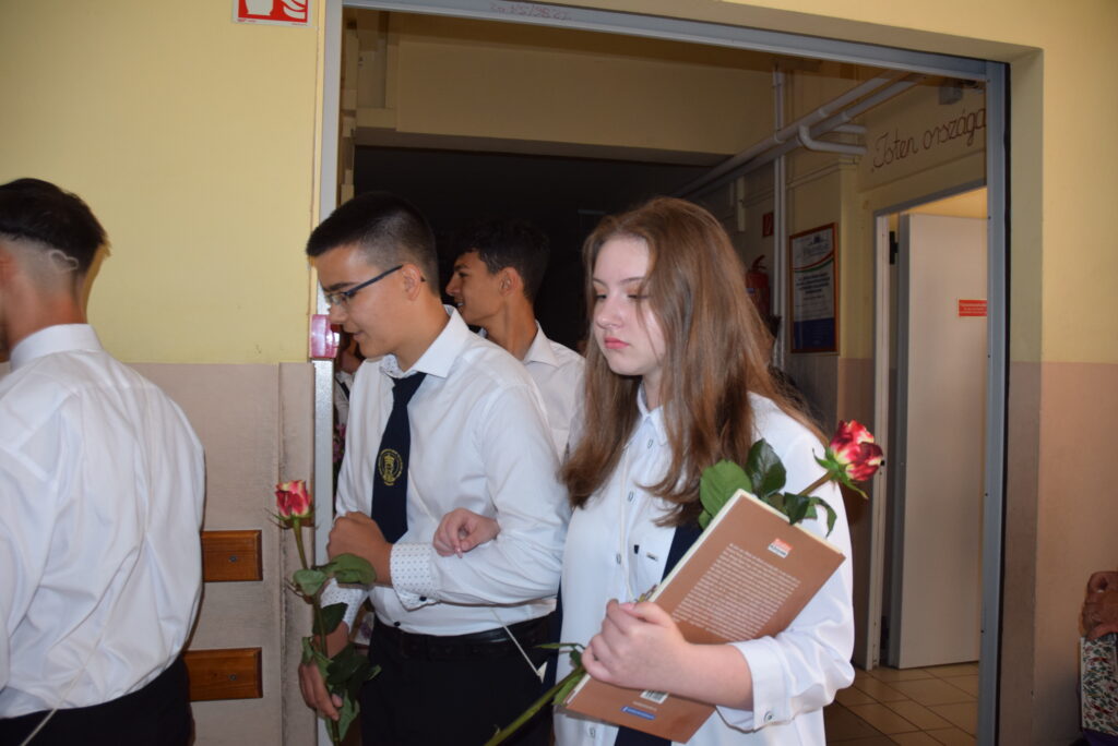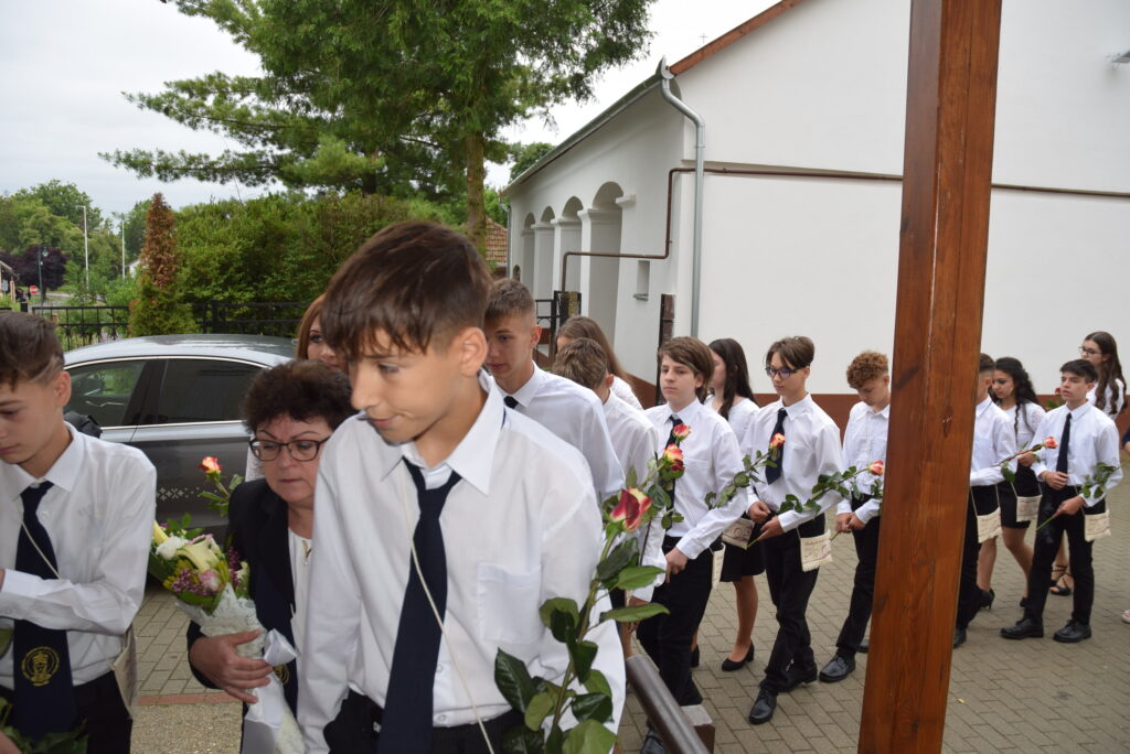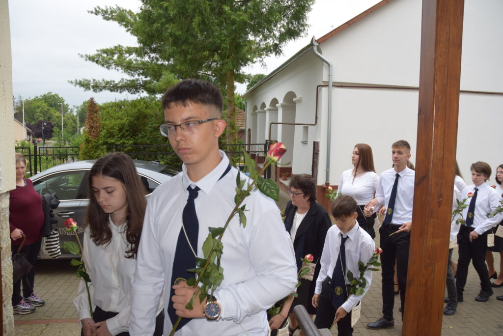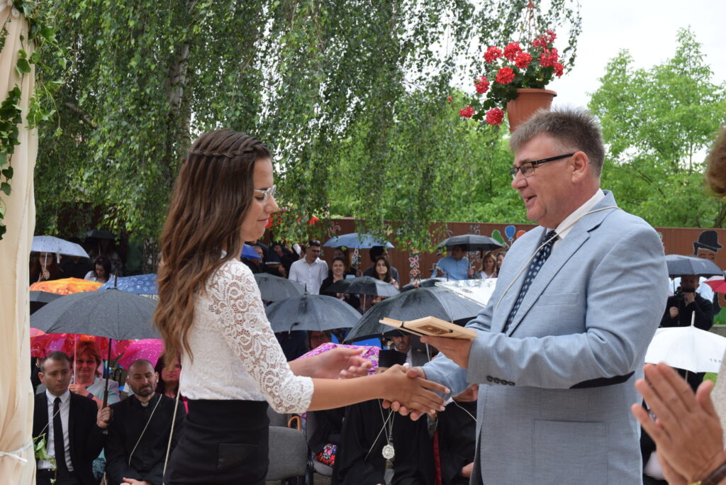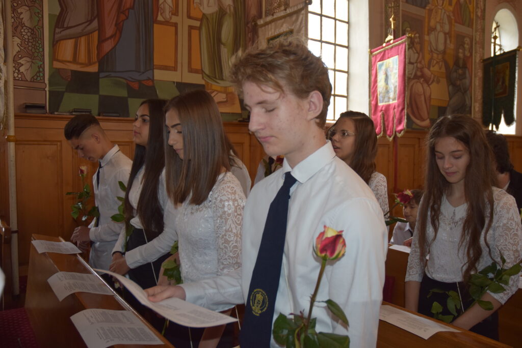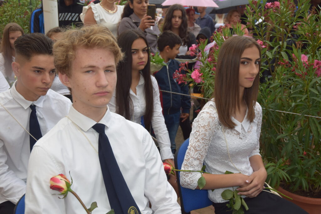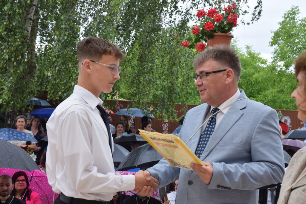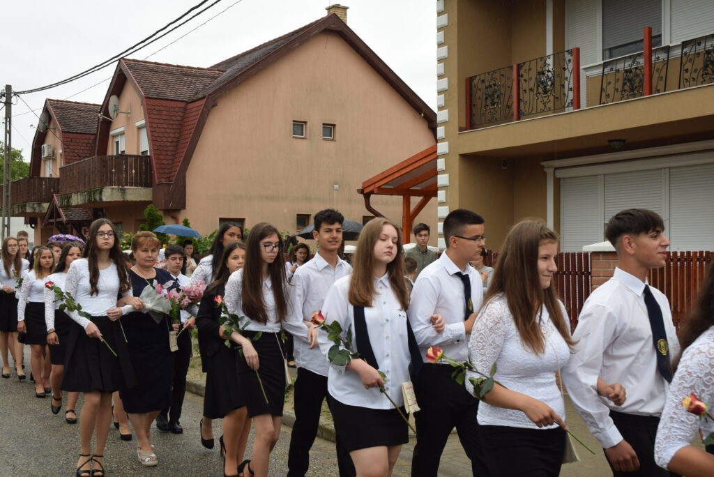 Szombat délelőtt 39 nyolcadikos diákunk vett végső búcsút az általános iskolai évektől. A percről percre változó időjárás jelentést legalább annyira figyelték, várták az érintett diákok, pedagógusok és szülők, mint magát a ballagási ünnepséget. A csodaszépen feldíszített iskolára és a búcsúzó diákokra azonban a szülőkön, diákokon kívül a szemerkélő eső is kíváncsi volt, így idén esernyővel indultak utolsó általános iskolai útjukra a ballagók. Ünnepségünket megtisztelte Kocsis Fülöp metropolita atya is, aki a görögkatolikus templomban a gyerekekkel együtt imádkozott és adott hálát. A diáktársak sorfala között, esernyővel a kezükben, énekelve vonultak a ballagók az iskola udvarára, ahol már az esővédett árkádok alatt foglalhatták el helyüket, és hallgathatták végig a búcsúverseket, búcsúgondolatokat. A ballagók emlékszalagjait Lénárt Zsanett és Kerti Csenge kötötte fel az iskola zászlajára, majd a hetedikesek nevében Számadó Szonja és Szemán Amira, a nyolcadikosok nevében Szász Borbála és Tóth Zsuzsanna búcsúzott. Ezt követően Garda László intézményvezető szólt a ballagókhoz, majd köszönetet mondott a szülői munkaközösség tagjainak. Átvehették az okleveleket és a könyvjutalmakat azok a diákok is, akik kiérdemelték azt a tanulmányi és közösségi munkájuk, versenyeredményeik alapján. A rangos Szent Piroska-díjat ebben az évben négy tanuló vehette át. Büte Bíborka, Szász Borbála 8. a, valamint Kerti Csenge és Tóth Zsuzsanna 8. b osztályos tanulók. Az ünnepség végén Fülöp atya mondta el útravaló gondolatait a ballagóknak, akik a búcsúéneket követően az osztálytermekben Hajdufiná Imre Éva és Tóth Elekné osztályfőnökökkel együtt végleg elbúcsúztak az általános iskolai évektől. Minden végzős diákunknak sok sikert, kitartást és hitet kívánunk életük következő szakaszához. KGYZE