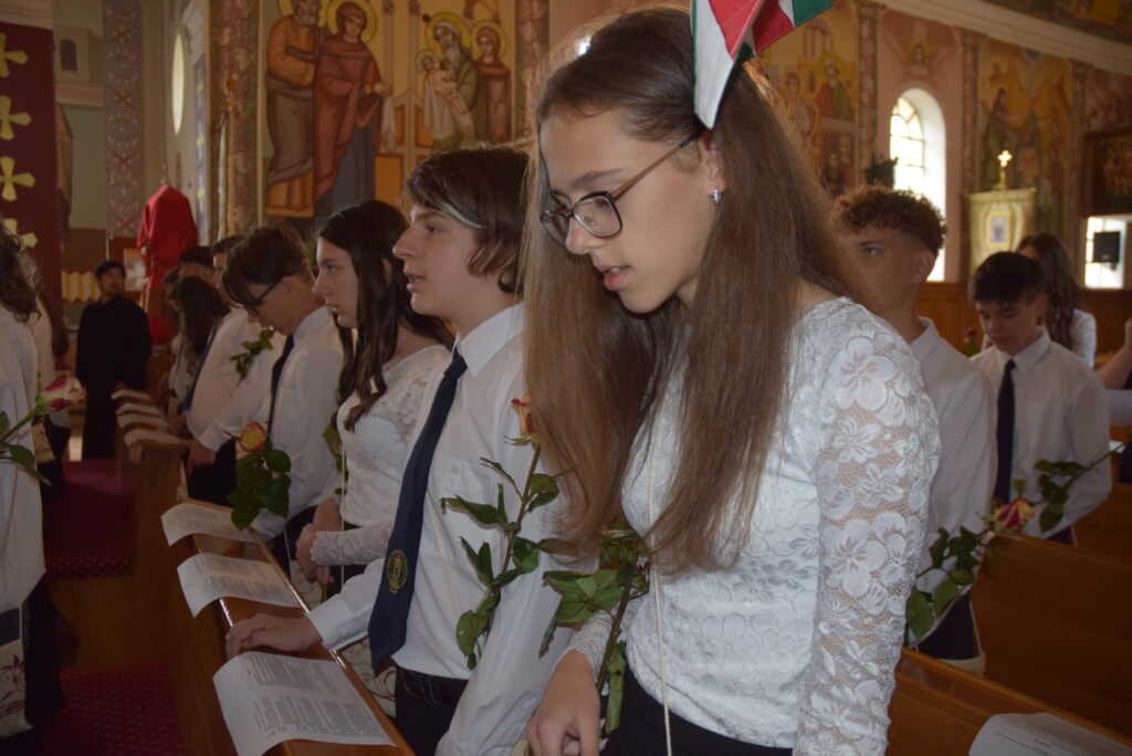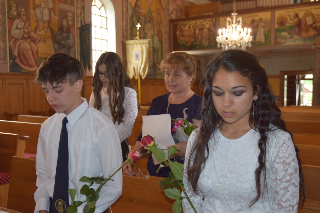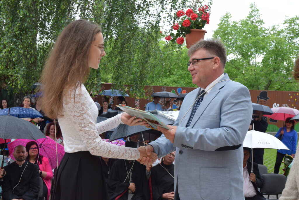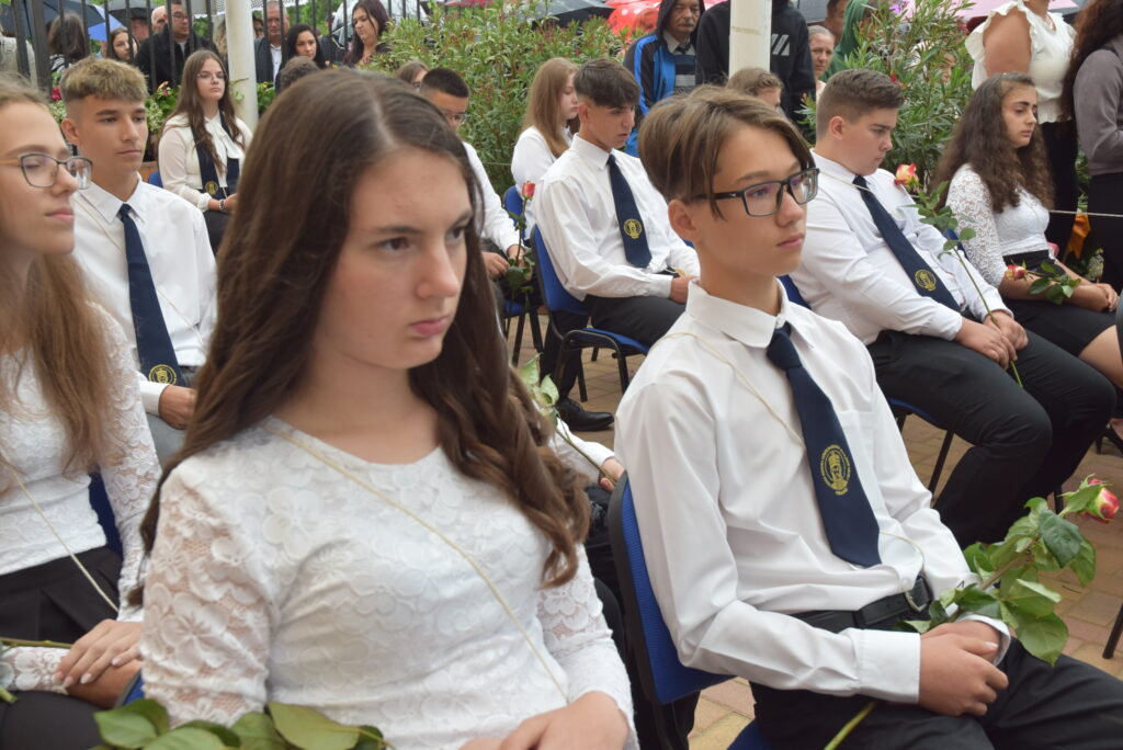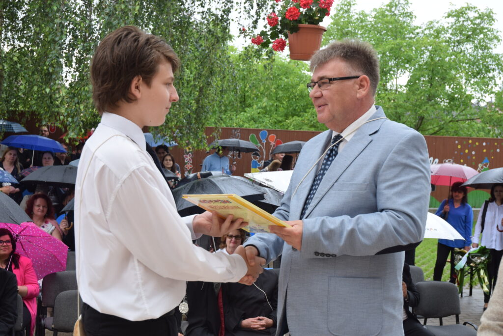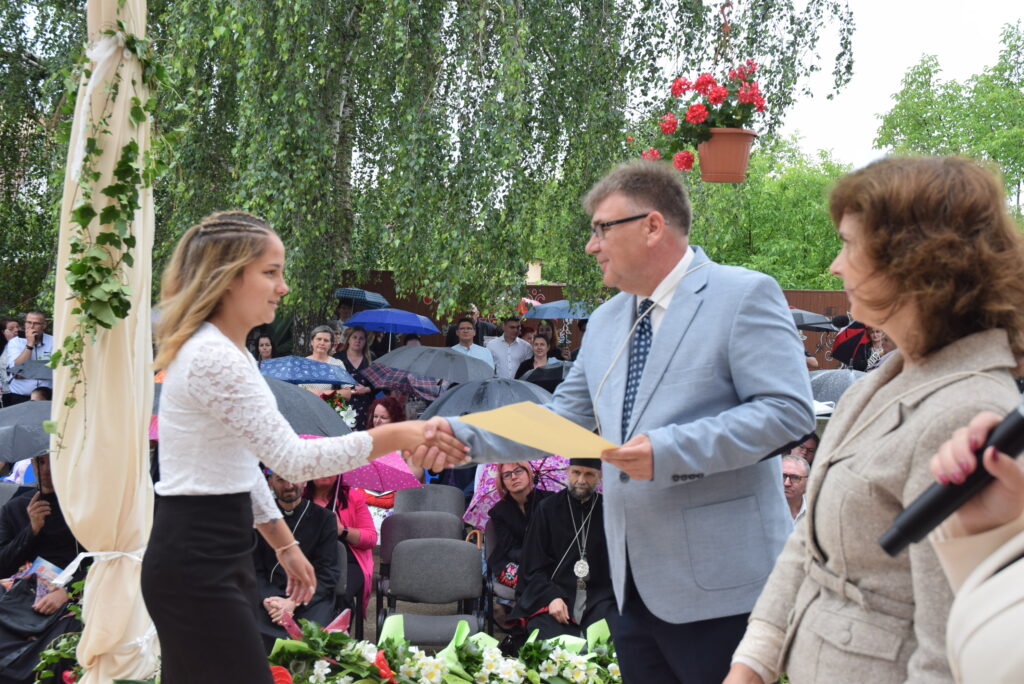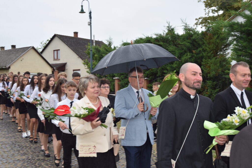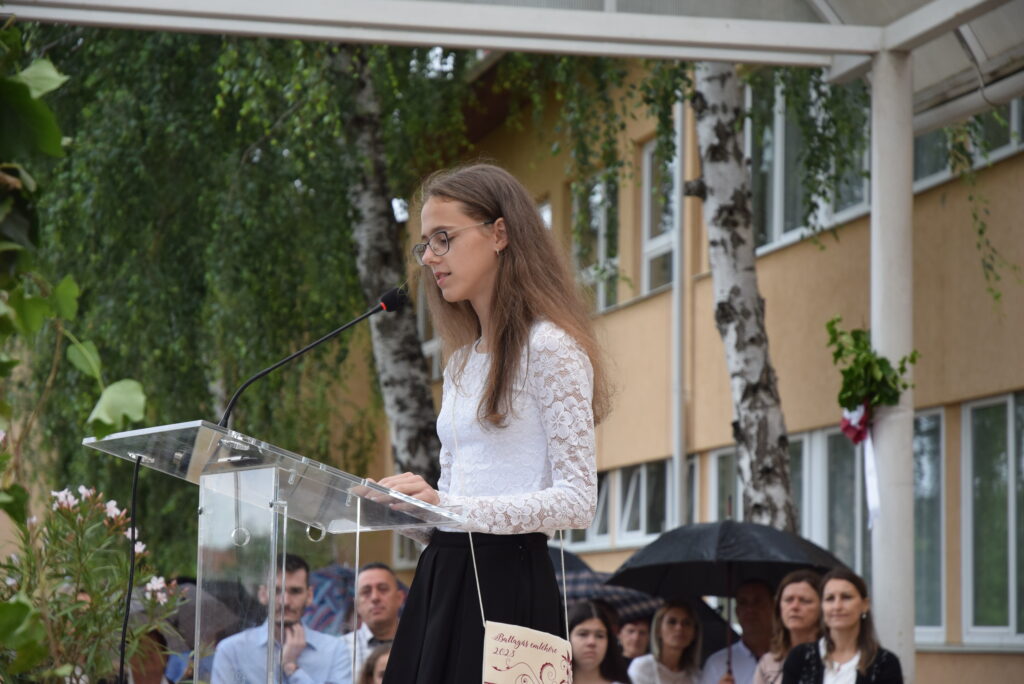 Szombat délelőtt 39 nyolcadikos diákunk vett végső búcsút az általános iskolai évektől. A percről percre változó időjárás jelentést legalább annyira figyelték, várták az érintett diákok, pedagógusok és szülők, mint magát a ballagási ünnepséget. A csodaszépen feldíszített iskolára és a búcsúzó diákokra azonban a szülőkön, diákokon kívül a szemerkélő eső is kíváncsi volt, így idén esernyővel indultak utolsó általános iskolai útjukra a ballagók. Ünnepségünket megtisztelte Kocsis Fülöp metropolita atya is, aki a görögkatolikus templomban a gyerekekkel együtt imádkozott és adott hálát. A diáktársak sorfala között, esernyővel a kezükben, énekelve vonultak a ballagók az iskola udvarára, ahol már az esővédett árkádok alatt foglalhatták el helyüket, és hallgathatták végig a búcsúverseket, búcsúgondolatokat. A ballagók emlékszalagjait Lénárt Zsanett és Kerti Csenge kötötte fel az iskola zászlajára, majd a hetedikesek nevében Számadó Szonja és Szemán Amira, a nyolcadikosok nevében Szász Borbála és Tóth Zsuzsanna búcsúzott. Ezt követően Garda László intézményvezető szólt a ballagókhoz, majd köszönetet mondott a szülői munkaközösség tagjainak. Átvehették az okleveleket és a könyvjutalmakat azok a diákok is, akik kiérdemelték azt a tanulmányi és közösségi munkájuk, versenyeredményeik alapján. A rangos Szent Piroska-díjat ebben az évben négy tanuló vehette át. Büte Bíborka, Szász Borbála 8. a, valamint Kerti Csenge és Tóth Zsuzsanna 8. b osztályos tanulók. Az ünnepség végén Fülöp atya mondta el útravaló gondolatait a ballagóknak, akik a búcsúéneket követően az osztálytermekben Hajdufiná Imre Éva és Tóth Elekné osztályfőnökökkel együtt végleg elbúcsúztak az általános iskolai évektől. Minden végzős diákunknak sok sikert, kitartást és hitet kívánunk életük következő szakaszához. KGYZE
