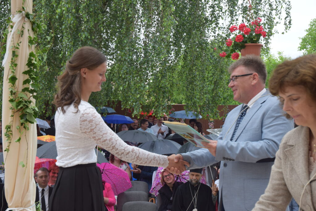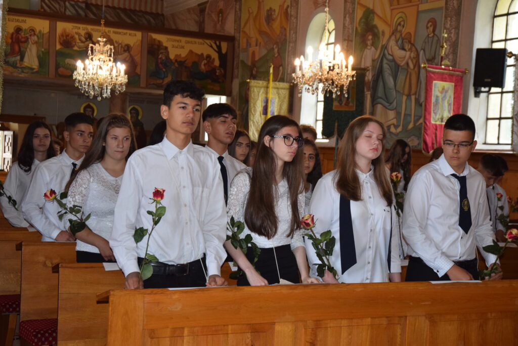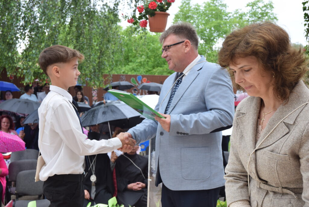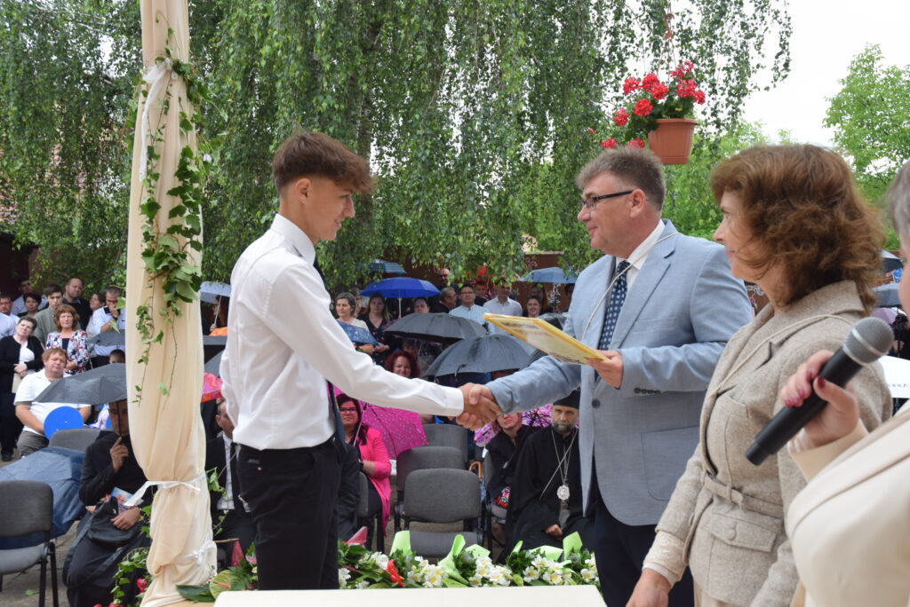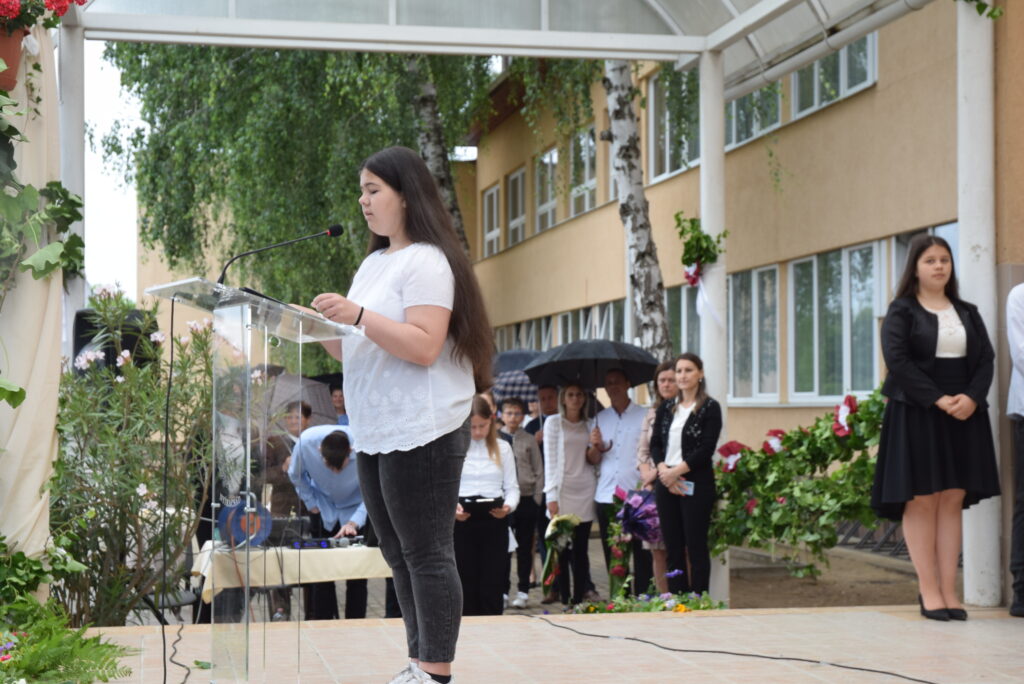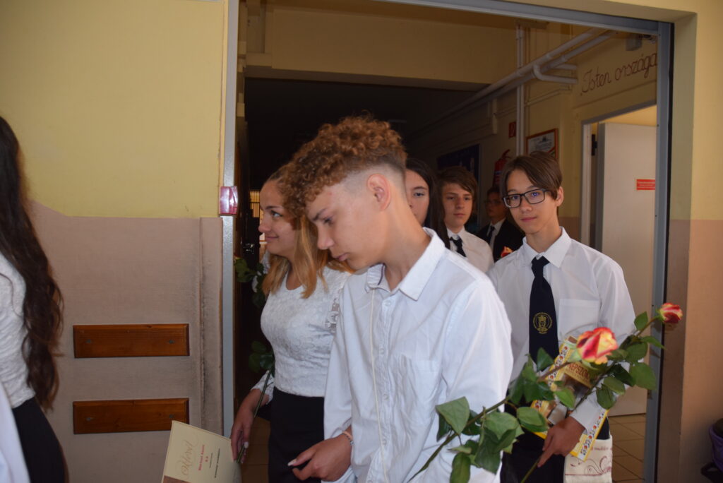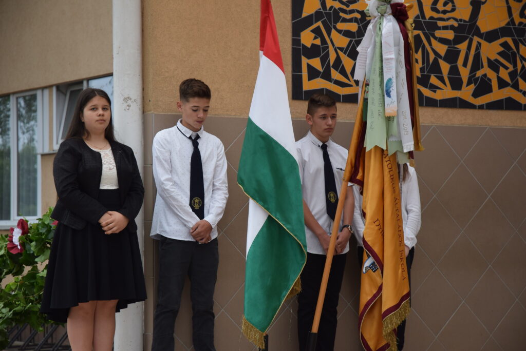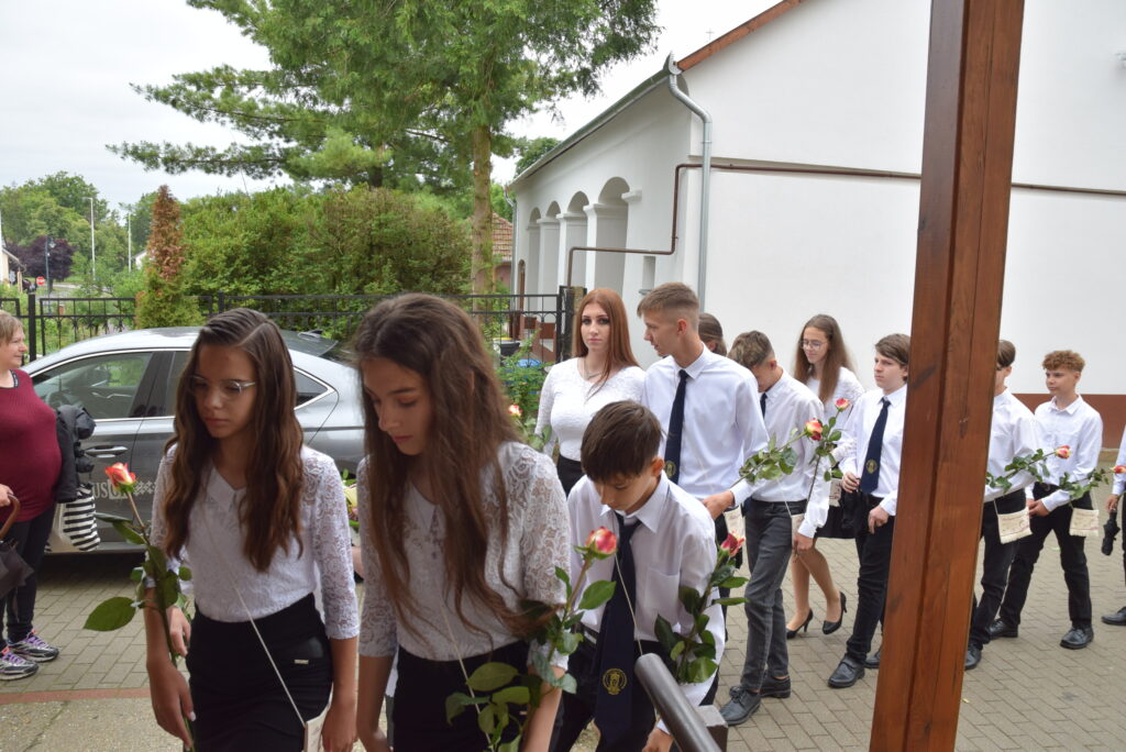 Szombat délelőtt 39 nyolcadikos diákunk vett végső búcsút az általános iskolai évektől. A percről percre változó időjárás jelentést legalább annyira figyelték, várták az érintett diákok, pedagógusok és szülők, mint magát a ballagási ünnepséget. A csodaszépen feldíszített iskolára és a búcsúzó diákokra azonban a szülőkön, diákokon kívül a szemerkélő eső is kíváncsi volt, így idén esernyővel indultak utolsó általános iskolai útjukra a ballagók. Ünnepségünket megtisztelte Kocsis Fülöp metropolita atya is, aki a görögkatolikus templomban a gyerekekkel együtt imádkozott és adott hálát. A diáktársak sorfala között, esernyővel a kezükben, énekelve vonultak a ballagók az iskola udvarára, ahol már az esővédett árkádok alatt foglalhatták el helyüket, és hallgathatták végig a búcsúverseket, búcsúgondolatokat. A ballagók emlékszalagjait Lénárt Zsanett és Kerti Csenge kötötte fel az iskola zászlajára, majd a hetedikesek nevében Számadó Szonja és Szemán Amira, a nyolcadikosok nevében Szász Borbála és Tóth Zsuzsanna búcsúzott. Ezt követően Garda László intézményvezető szólt a ballagókhoz, majd köszönetet mondott a szülői munkaközösség tagjainak. Átvehették az okleveleket és a könyvjutalmakat azok a diákok is, akik kiérdemelték azt a tanulmányi és közösségi munkájuk, versenyeredményeik alapján. A rangos Szent Piroska-díjat ebben az évben négy tanuló vehette át. Büte Bíborka, Szász Borbála 8. a, valamint Kerti Csenge és Tóth Zsuzsanna 8. b osztályos tanulók. Az ünnepség végén Fülöp atya mondta el útravaló gondolatait a ballagóknak, akik a búcsúéneket követően az osztálytermekben Hajdufiná Imre Éva és Tóth Elekné osztályfőnökökkel együtt végleg elbúcsúztak az általános iskolai évektől. Minden végzős diákunknak sok sikert, kitartást és hitet kívánunk életük következő szakaszához. KGYZE