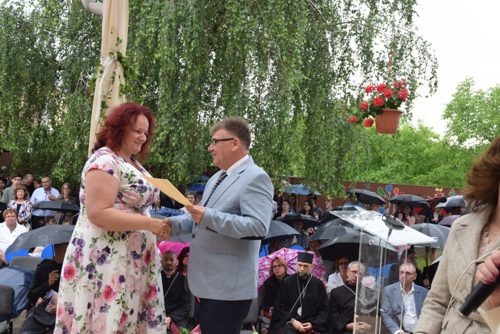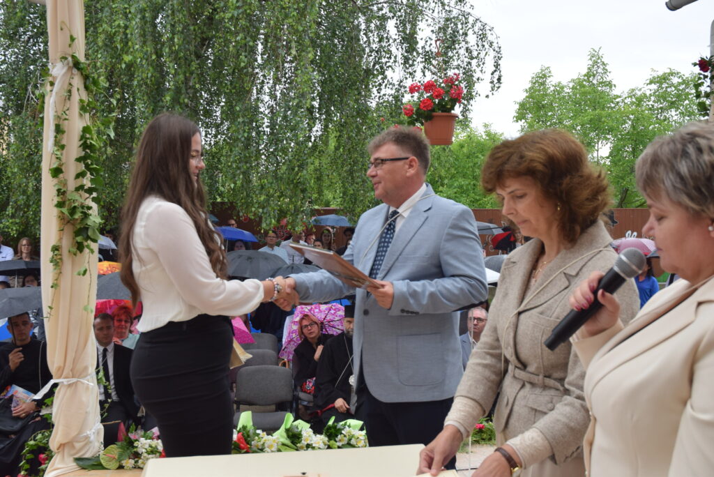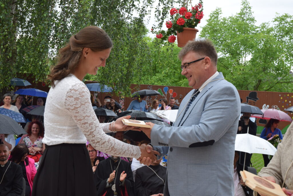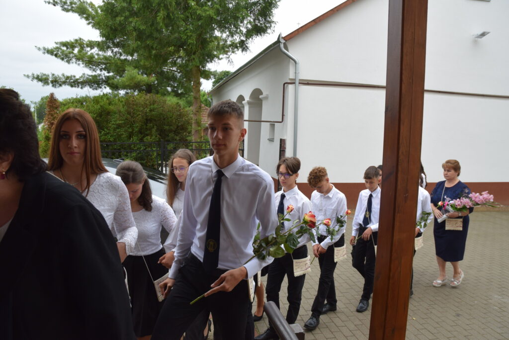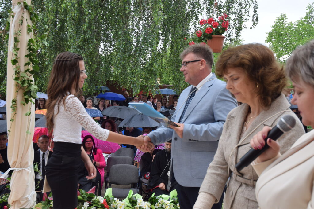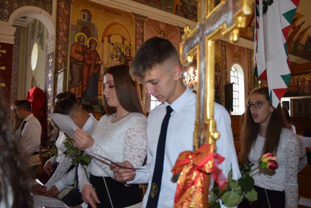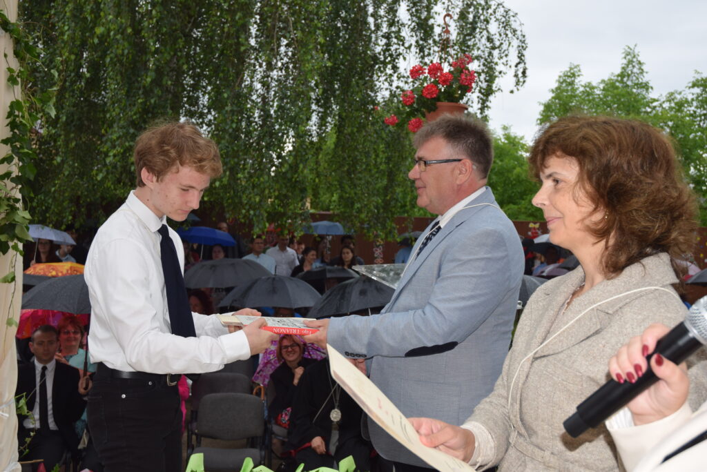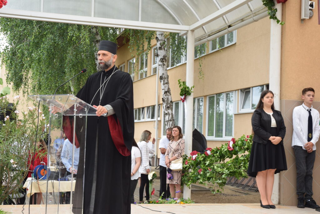 Szombat délelőtt 39 nyolcadikos diákunk vett végső búcsút az általános iskolai évektől. A percről percre változó időjárás jelentést legalább annyira figyelték, várták az érintett diákok, pedagógusok és szülők, mint magát a ballagási ünnepséget. A csodaszépen feldíszített iskolára és a búcsúzó diákokra azonban a szülőkön, diákokon kívül a szemerkélő eső is kíváncsi volt, így idén esernyővel indultak utolsó általános iskolai útjukra a ballagók. Ünnepségünket megtisztelte Kocsis Fülöp metropolita atya is, aki a görögkatolikus templomban a gyerekekkel együtt imádkozott és adott hálát. A diáktársak sorfala között, esernyővel a kezükben, énekelve vonultak a ballagók az iskola udvarára, ahol már az esővédett árkádok alatt foglalhatták el helyüket, és hallgathatták végig a búcsúverseket, búcsúgondolatokat. A ballagók emlékszalagjait Lénárt Zsanett és Kerti Csenge kötötte fel az iskola zászlajára, majd a hetedikesek nevében Számadó Szonja és Szemán Amira, a nyolcadikosok nevében Szász Borbála és Tóth Zsuzsanna búcsúzott. Ezt követően Garda László intézményvezető szólt a ballagókhoz, majd köszönetet mondott a szülői munkaközösség tagjainak. Átvehették az okleveleket és a könyvjutalmakat azok a diákok is, akik kiérdemelték azt a tanulmányi és közösségi munkájuk, versenyeredményeik alapján. A rangos Szent Piroska-díjat ebben az évben négy tanuló vehette át. Büte Bíborka, Szász Borbála 8. a, valamint Kerti Csenge és Tóth Zsuzsanna 8. b osztályos tanulók. Az ünnepség végén Fülöp atya mondta el útravaló gondolatait a ballagóknak, akik a búcsúéneket követően az osztálytermekben Hajdufiná Imre Éva és Tóth Elekné osztályfőnökökkel együtt végleg elbúcsúztak az általános iskolai évektől. Minden végzős diákunknak sok sikert, kitartást és hitet kívánunk életük következő szakaszához. KGYZE