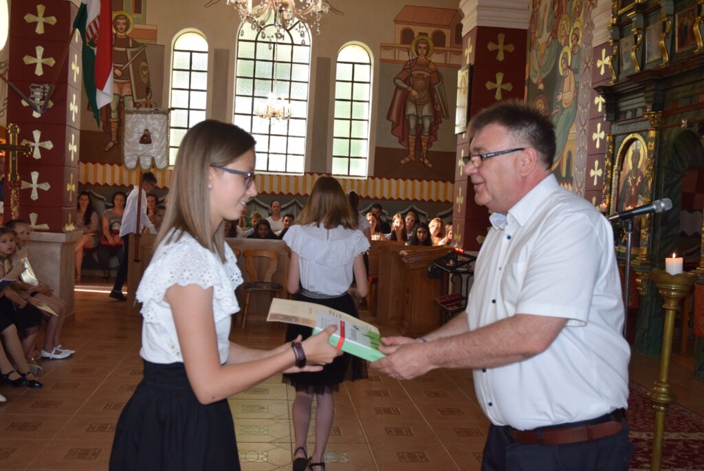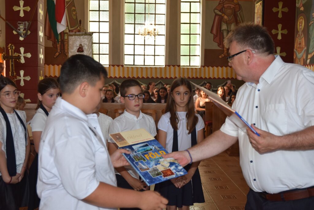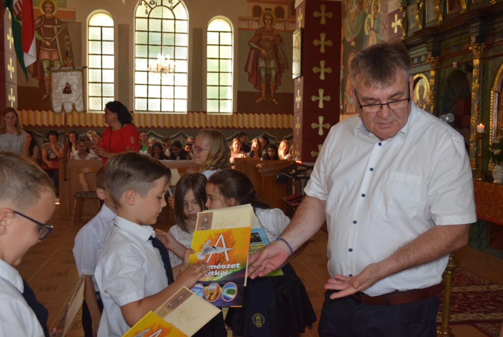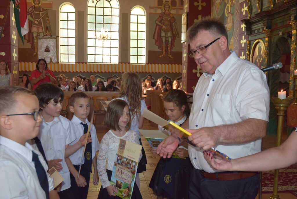 A mai délutánon ünnepi szent liturgia keretében lezártuk a 2022-2023-as tanévet. Először Tatai Zoltán atya szólt a diákokhoz. Felhívta a figyelmüket arra, hogy a tanévnek vége van ugyan, de Krisztus tanítása soha nem ér véget. Ezért tegyen mindenki jót önmagával és másokkal is a szünidőben, és ne feledkezzenek meg arról, hogy a templomban nincs vakáció, Isten háza nyitva ál mindenki előtt nyáron is. Ezt követően Garda László igazgató úr először is megdicsérte a diákokat a szép éneklésért, majd köszönetet mondott a szülőknek a sok-sok támogatásért, a pedagógusoknak az odaadó munkáért. A diákoknak pedig gratulált az egész éves fáradozásért és a munkáért. Tartalmas nyarat kívánt mindenkinek, majd kiosztotta a jutalomkönyveket és az okleveleket. Végül ünnepélyesen bezárta a tanévet. KGYZE