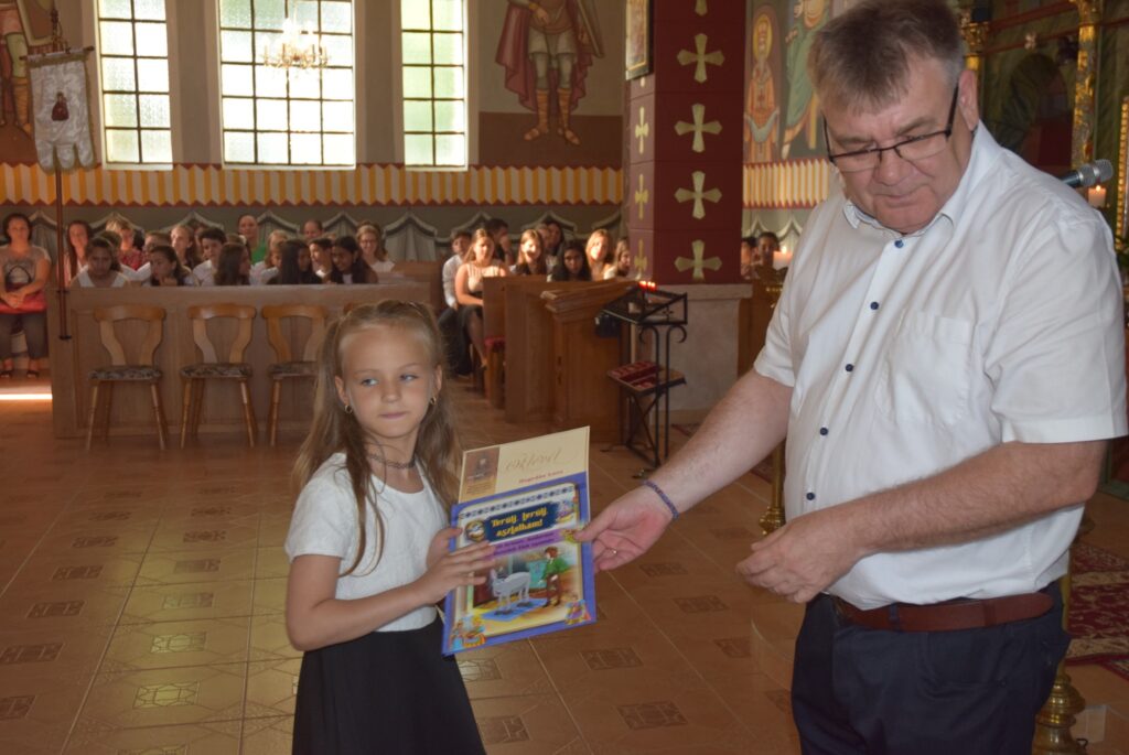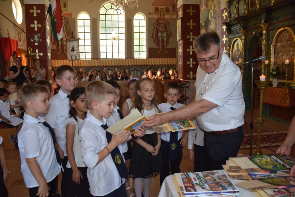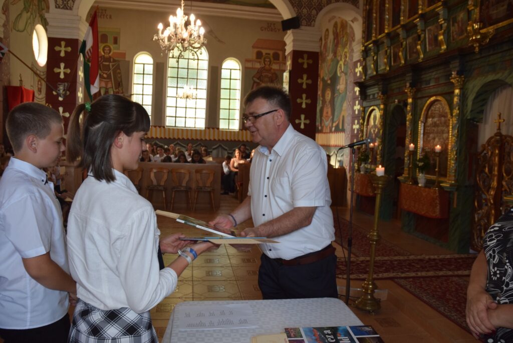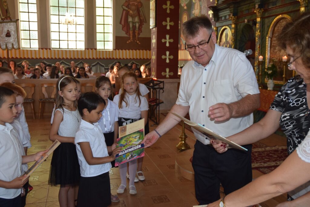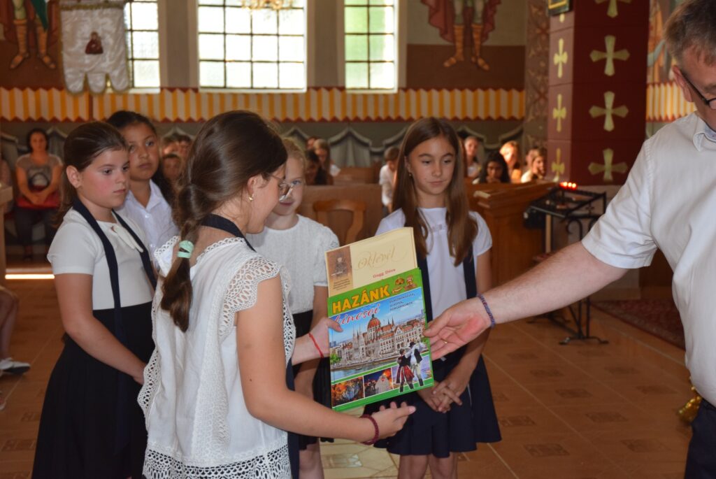 A mai délutánon ünnepi szent liturgia keretében lezártuk a 2022-2023-as tanévet. Először Tatai Zoltán atya szólt a diákokhoz. Felhívta a figyelmüket arra, hogy a tanévnek vége van ugyan, de Krisztus tanítása soha nem ér véget. Ezért tegyen mindenki jót önmagával és másokkal is a szünidőben, és ne feledkezzenek meg arról, hogy a templomban nincs vakáció, Isten háza nyitva ál mindenki előtt nyáron is. Ezt követően Garda László igazgató úr először is megdicsérte a diákokat a szép éneklésért, majd köszönetet mondott a szülőknek a sok-sok támogatásért, a pedagógusoknak az odaadó munkáért. A diákoknak pedig gratulált az egész éves fáradozásért és a munkáért. Tartalmas nyarat kívánt mindenkinek, majd kiosztotta a jutalomkönyveket és az okleveleket. Végül ünnepélyesen bezárta a tanévet. KGYZE