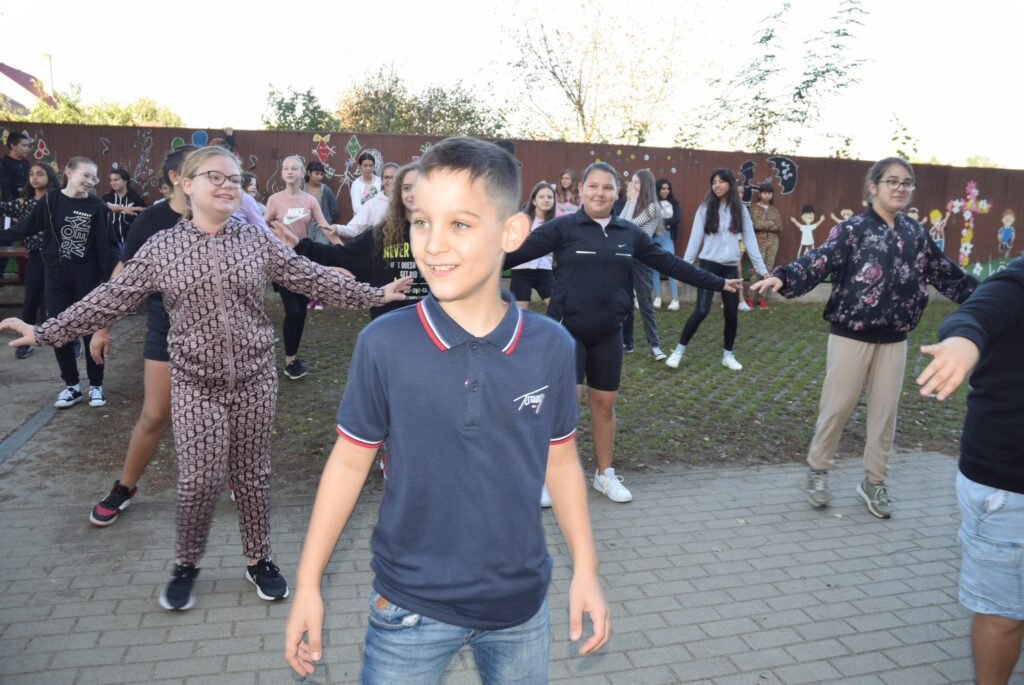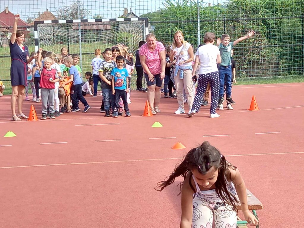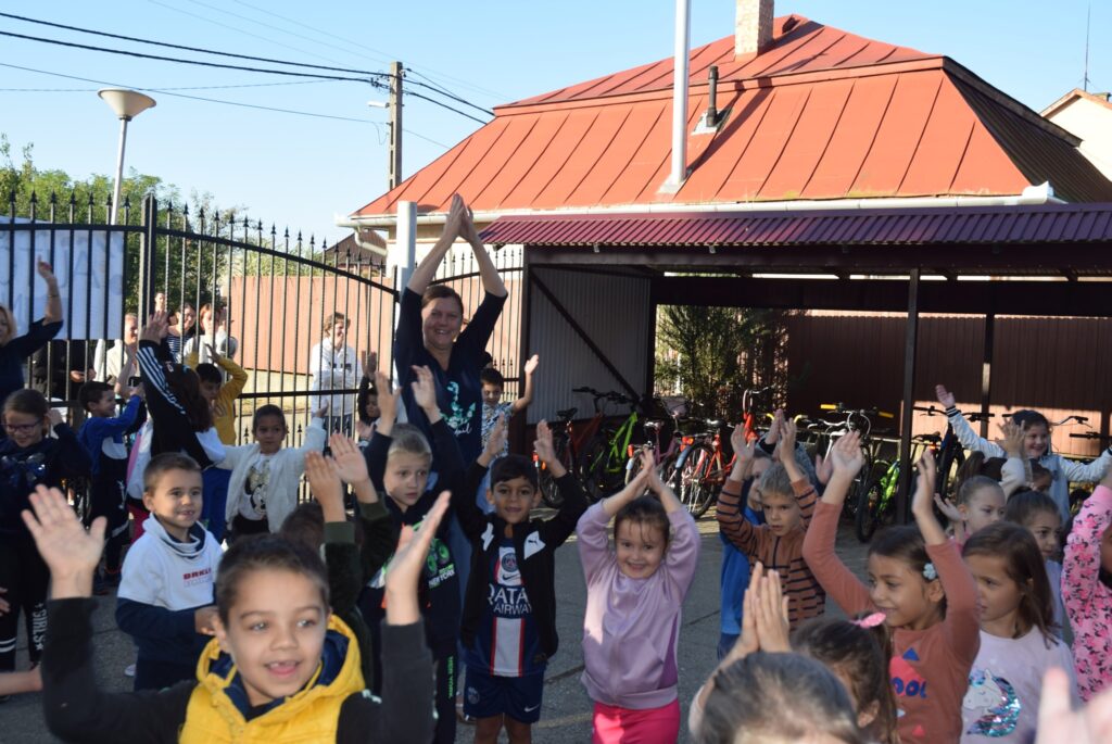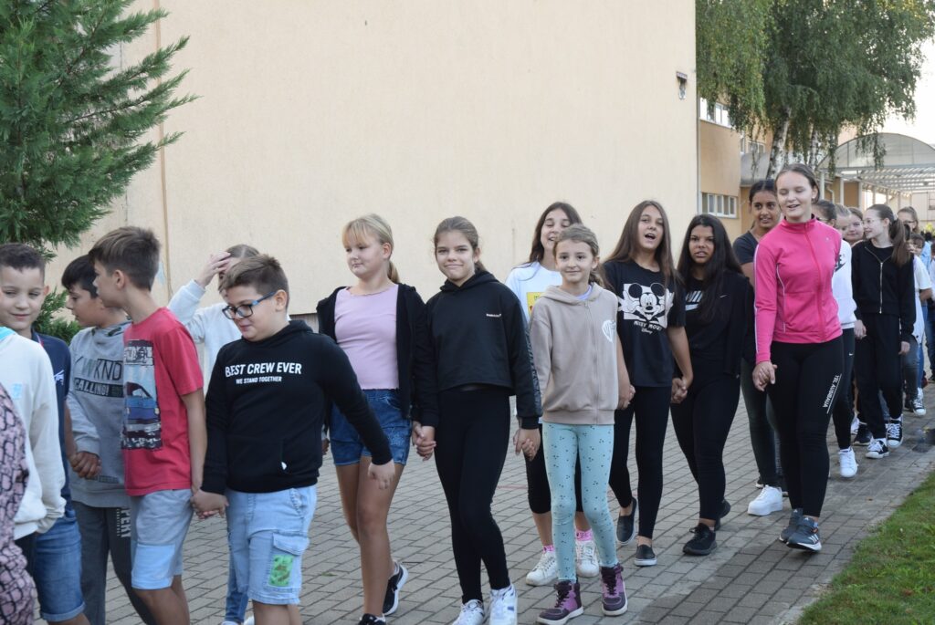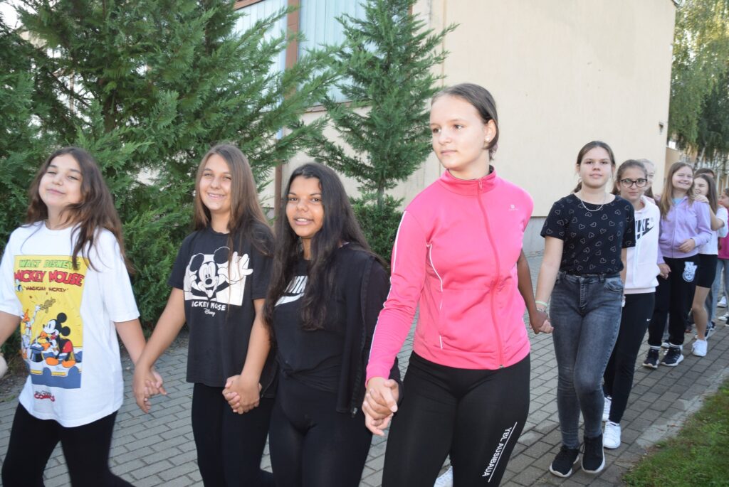 Szeptember 22-e, az autómentes nap, amit iskolánk idén összekapcsolt a magyar diáksport napjával. Már a reggeli érkezésnél Marozsán Tiborné Erzsike néni vezetésével kis tappancsokat, papír lábnyomokat kaptak azok a diákok, akik gyalog, és kerékpárkártyát azok, akik bringával jöttek ezen a napon iskolába. A máskor oly zsúfolt Szatmári utcán ma alig lehetett autót látni az iskola környékén, ami azt jelentette, hogy a szülők is komolyan vették a felhívást. Háromnegyed nyolctól Bogdán Krisztina tanárnő vezetésével reggeli bemelegítő zenés tornával kezdődött a nap, majd az egész iskola egy láncot alkotva menetelt a hátsó udvarra, ahol az alsósok előre elrejtett tappancsokat, kis papírlábnyomokat is kereshettek, amit finomságokra válthattak be a nap folyamán. Az első szünetben újra felsorakozott az iskola apraja, nagyja, és körbe futották az intézmény épületét. Ez is jó buli volt mindenkinek. Aztán következtek az alsós és felsős váltóversenyek, és az elmaradhatatlan zsinórlabda bajnokság is. Az épület emeletére vezető lépcsőt egész nap a Deákné Osvald Erika tanárnő és a diákok által keresett és nyomtatott sportolók képe díszítette, amik előtt sokan megálltak a nap folyamán. Ha csak egy nap erejéig is, de ma is sokat tettünk környezetünk, és saját magunk egészségéért. Bízunk benne, hogy egyre többen tanulják meg, hogy környezettudatosan élni azt jeleneti, hogy saját jövőnkre vigyázunk. KGYZE