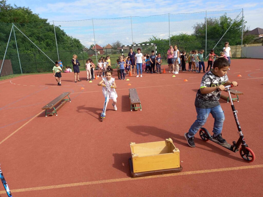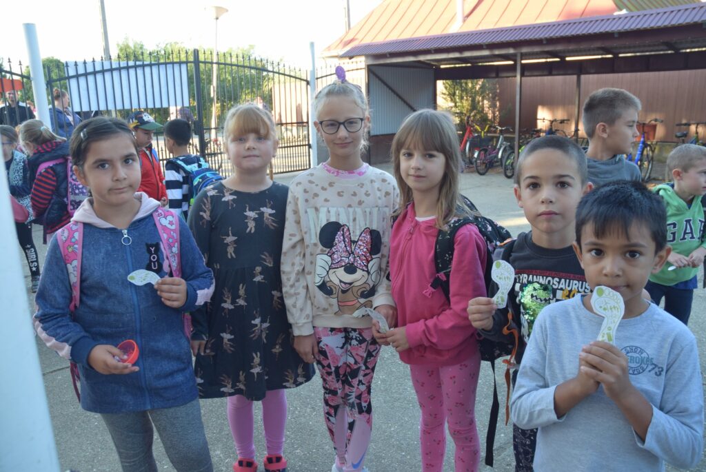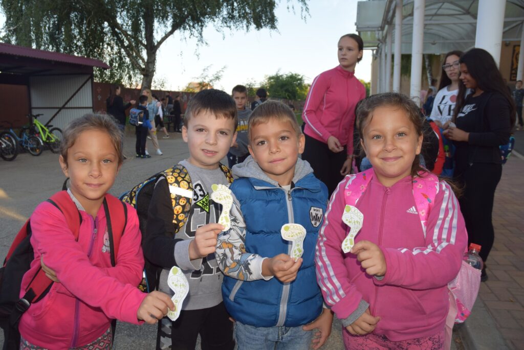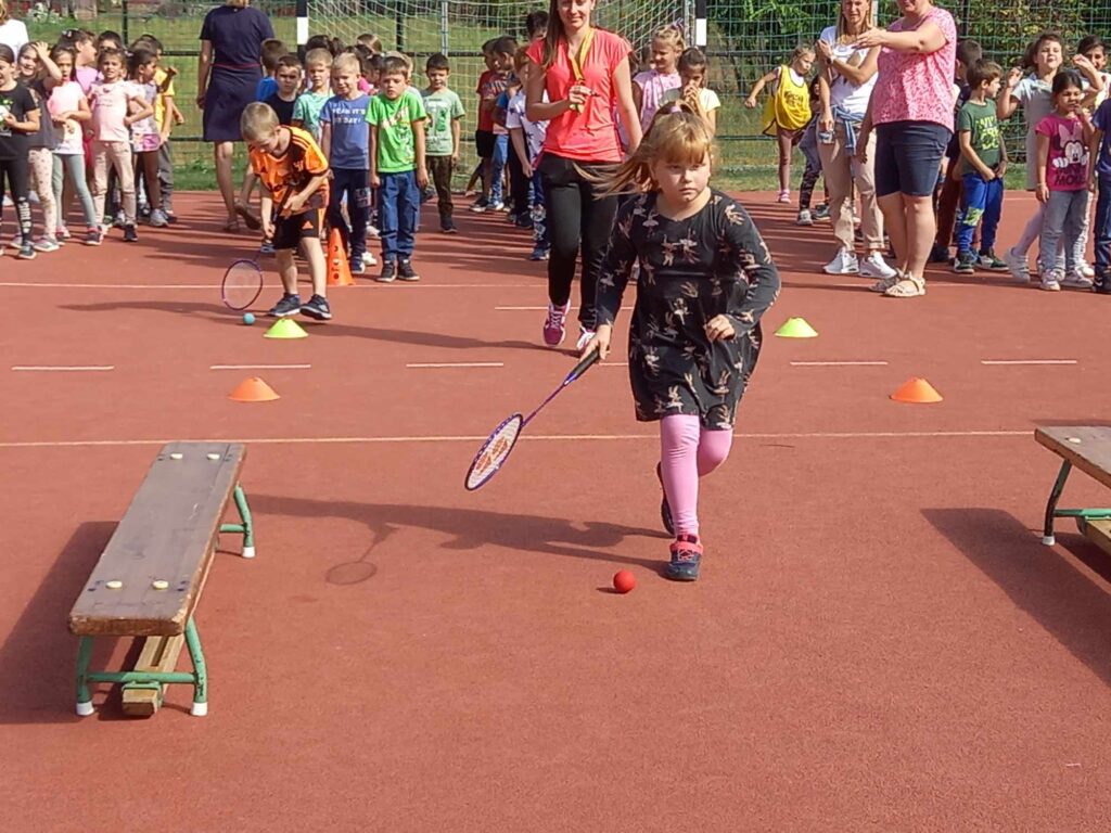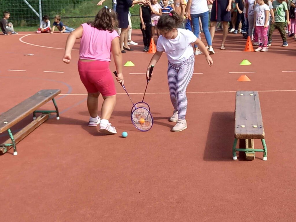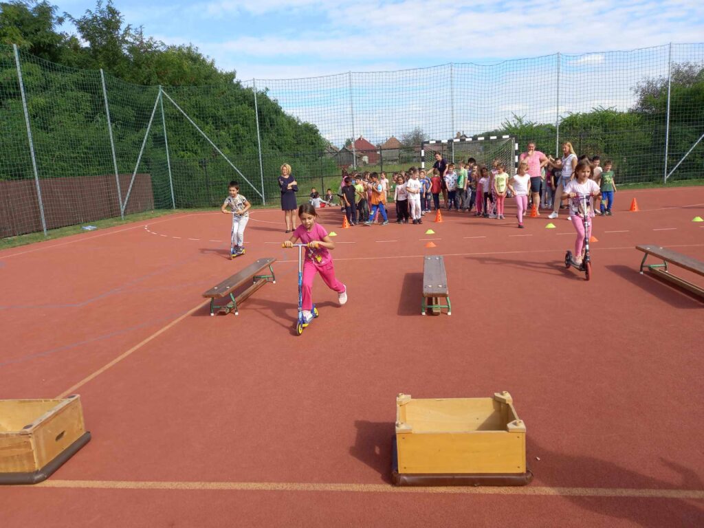 Szeptember 22-e, az autómentes nap, amit iskolánk idén összekapcsolt a magyar diáksport napjával. Már a reggeli érkezésnél Marozsán Tiborné Erzsike néni vezetésével kis tappancsokat, papír lábnyomokat kaptak azok a diákok, akik gyalog, és kerékpárkártyát azok, akik bringával jöttek ezen a napon iskolába. A máskor oly zsúfolt Szatmári utcán ma alig lehetett autót látni az iskola környékén, ami azt jelentette, hogy a szülők is komolyan vették a felhívást. Háromnegyed nyolctól Bogdán Krisztina tanárnő vezetésével reggeli bemelegítő zenés tornával kezdődött a nap, majd az egész iskola egy láncot alkotva menetelt a hátsó udvarra, ahol az alsósok előre elrejtett tappancsokat, kis papírlábnyomokat is kereshettek, amit finomságokra válthattak be a nap folyamán. Az első szünetben újra felsorakozott az iskola apraja, nagyja, és körbe futották az intézmény épületét. Ez is jó buli volt mindenkinek. Aztán következtek az alsós és felsős váltóversenyek, és az elmaradhatatlan zsinórlabda bajnokság is. Az épület emeletére vezető lépcsőt egész nap a Deákné Osvald Erika tanárnő és a diákok által keresett és nyomtatott sportolók képe díszítette, amik előtt sokan megálltak a nap folyamán. Ha csak egy nap erejéig is, de ma is sokat tettünk környezetünk, és saját magunk egészségéért. Bízunk benne, hogy egyre többen tanulják meg, hogy környezettudatosan élni azt jeleneti, hogy saját jövőnkre vigyázunk. KGYZE