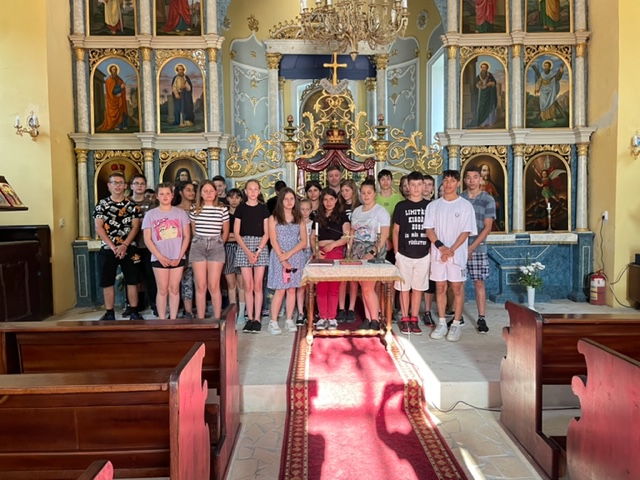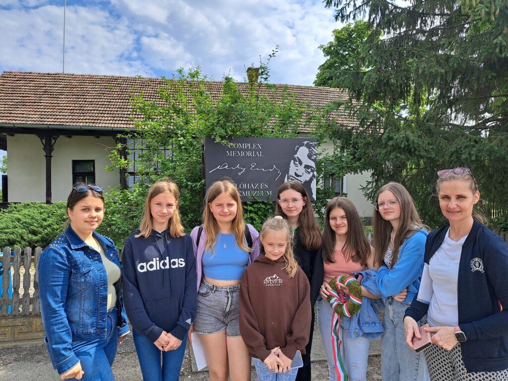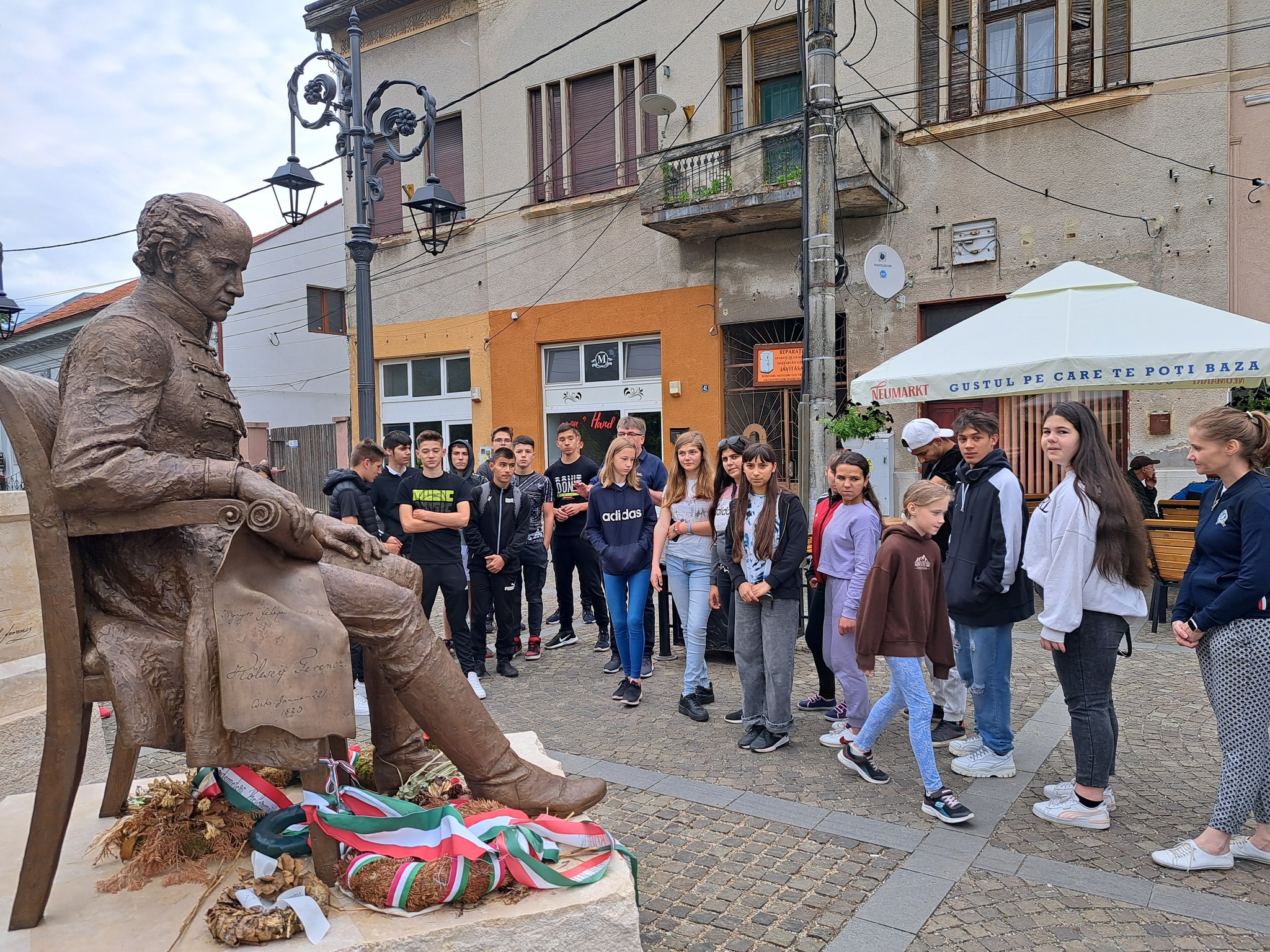 2. nap: Ellátogattunk Szatmárnémetibe, ahol a Tűztorony, a Vécsey-ház megtekintése után, a Vécsey családdal való közös pontok megbeszélése, miszerint Nyíracsádon is található Vécsey- kúria, ami jelenleg könyvtár. Ezután a Láncos templom meglátogatása következett. Kölcsey Ferenc mellszobrának megkoszorúzása, a költőről eddig tanultak felelevenítése tanulói kiselőadással. Majd városnézés, séta. Következő úticélunk Erdőd, itt az erdődi vár megtekintése. A kápolnánál, ahol Petőfi és Szendrey Júlia hajdan az esküvőjüket tartották, felidéztük a költő szerelmi költészetének elemeit rendhagyó irodalomóra keretein belül. További úticélunk Koltóra vezetett, Petőfi nyomában, ahol feleségével a mézesheteiket töltötték. Itt a szeptember végén című versének elszavalása, beszélgetés a költő életútjáról, családjáról, érdekességek feltárása, megbeszélése. A Teleky- kastély megtekintése. Este Nagykároly, a szállás elfoglalása.