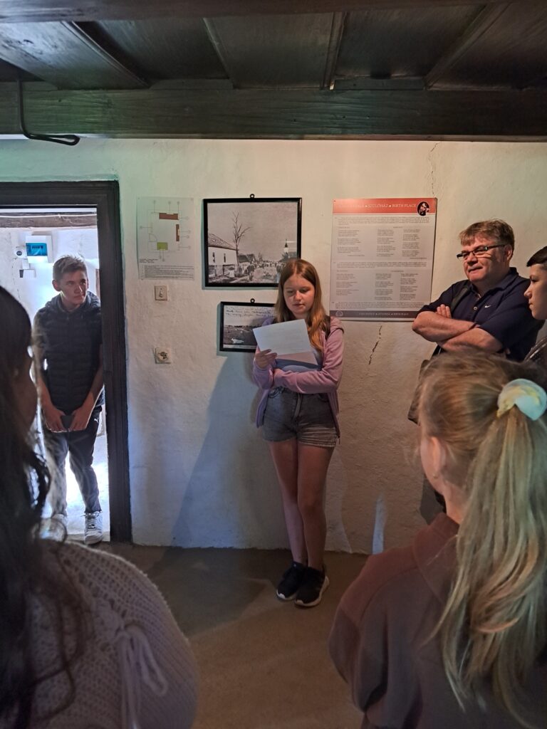4. nap: Szállásunk elhagyása után Kaplonyba indultunk, ahol a Károlyiak kriptájában a diákok számára is lenyűgöző volt a Károlyi-sírbolt, amely a román kori templom alatt található. Itt rendhagyó történelem óra keretein belül ismerkedhettek meg a diákok gróf Károly Sándor hadvezér életével. Majd Érmindszentre utaztunk, az Ady- kúria és múzeum megtekintése után, koszorút helyezünk el. Rendhagyó irodalomóra keretein belül Ady verseket olvastunk, benyomások megbeszélése után, Kölcsey Ferenc nyomában indulunk tovább . Sződemeteren a Kölcsey emlékház és koszorúzás után, egy diák felidézi a költő életét, munkásságát, elszavatuk nemzeti himnuszunkat. Élményekkel teli indultunk haza.