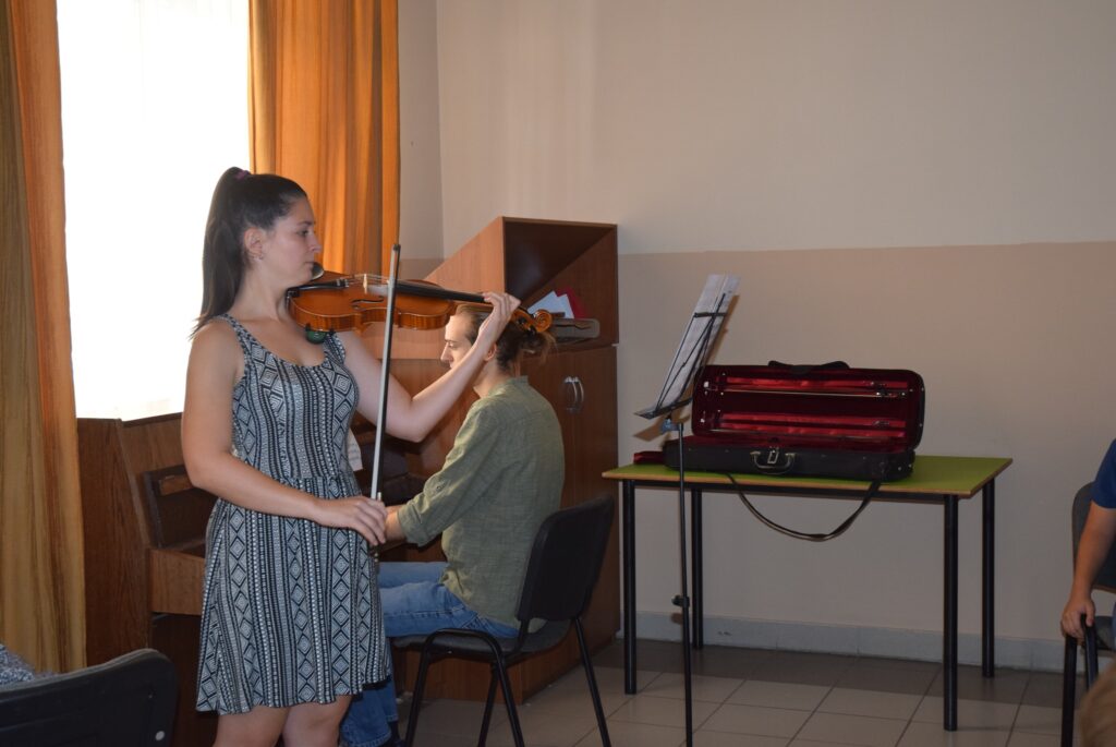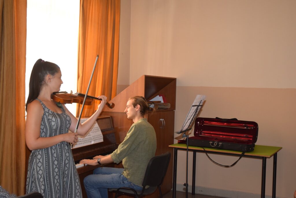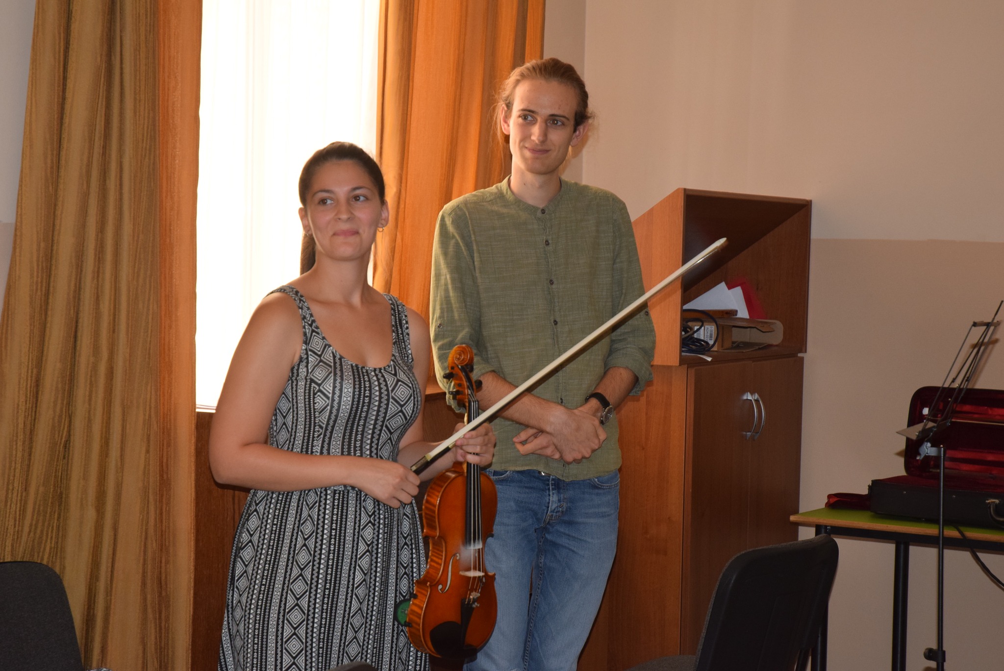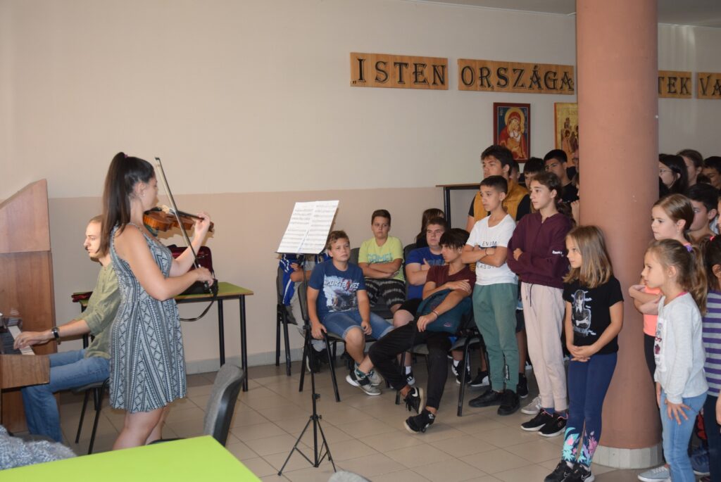 A közelgő zene világnapjához kapcsolódó minikoncerten Kovács Viktória hegedűjátékát zongorán kísérte Szikszai Patrik. A két pedagógus a nyíradonyi iskola kihelyezett tagozatának oktatóiként a mi iskolánk tanulóit is igyekeznek bevezetni a zongora és a hegedű csodálatos hangzásvilágába. Garda László igazgató úr reményét fejezte ki a gyerekek körében nagy sikert aratott minikoncert után, hogy a következő találkozás alkalmával már a nyíracsádi növendékek is bemutatkozhatnak. KGYZE