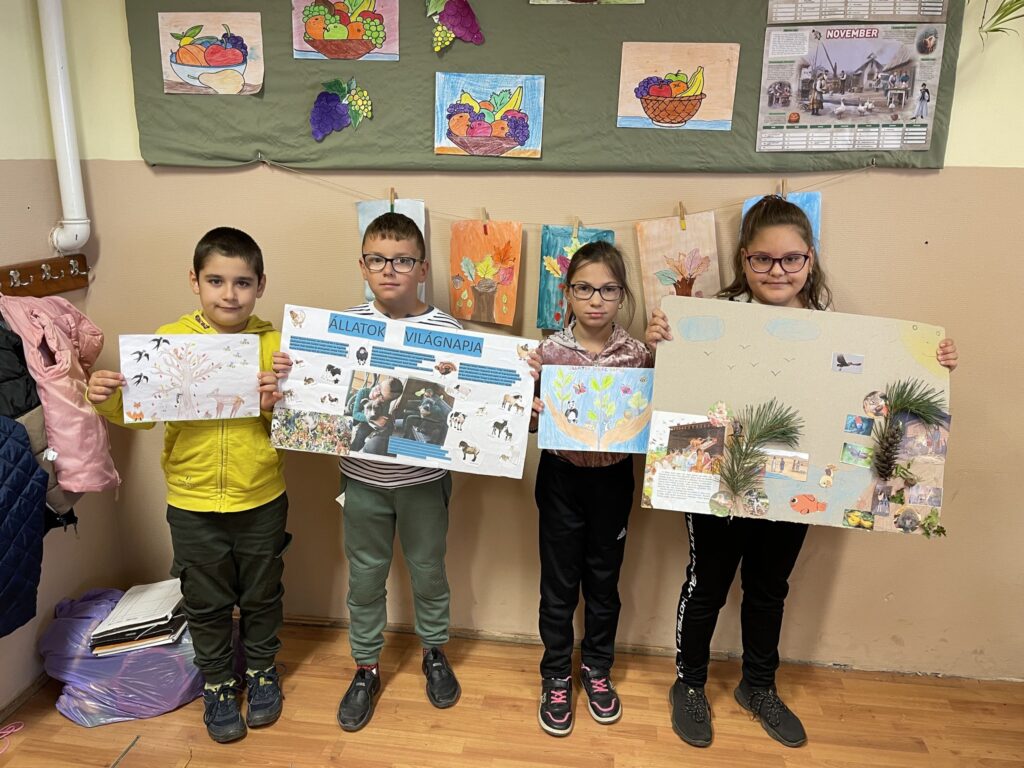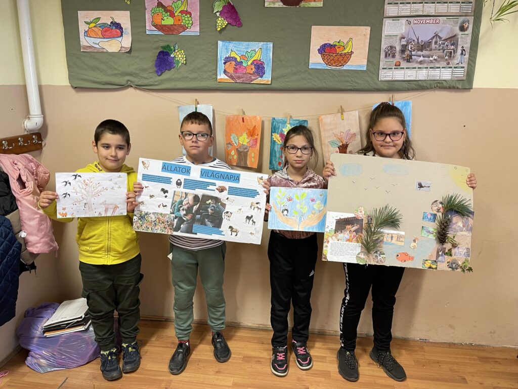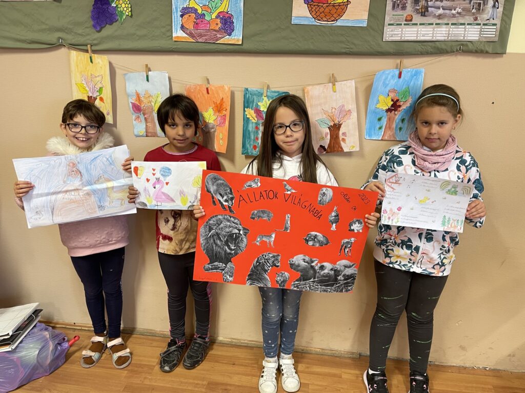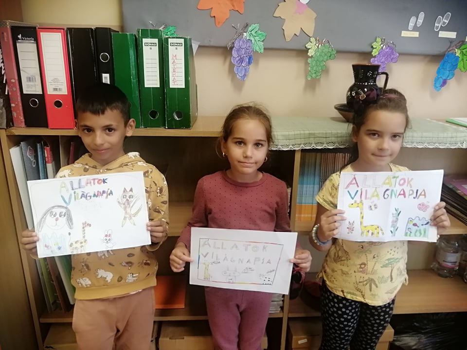 Október első két hete a hónap 4. napjáról, vagyis az állatok világnapjáról szól az iskolánkban is. Elsősorban az alsó tagozatosok körében népszerű két héten rajzolnak, ragasztanak, festenek, színeznek a gyerekek. Volt osztály, ahol báboztak, és még találós kérdéseket, mondókákat, meséket is gyűjtöttek. Természetesen mindenhol az állatok voltak és vannak a középpontban. Mert az érzékenyítést nem lehet elég korán kezdeni. KGYZE