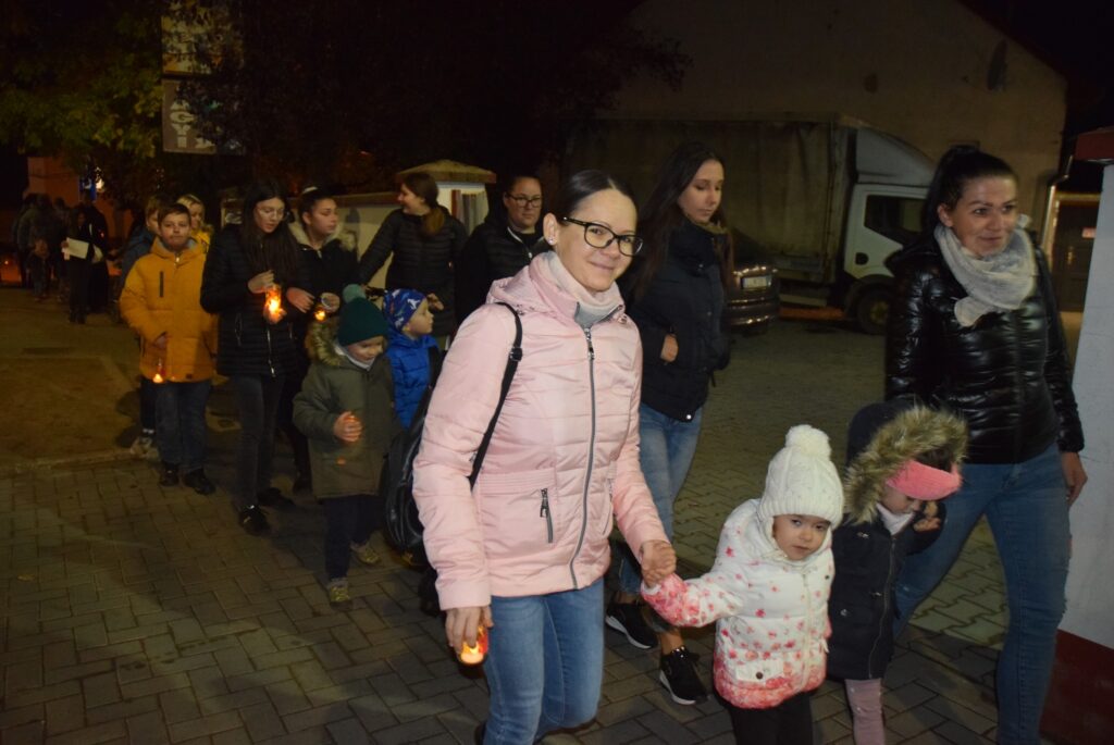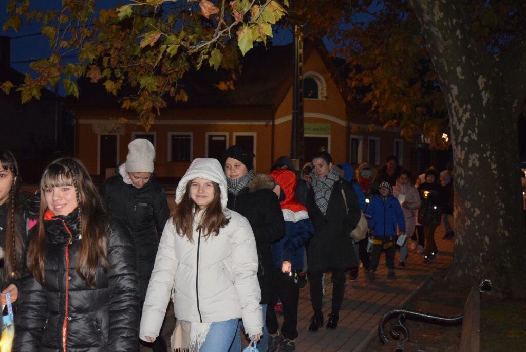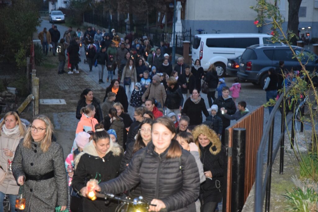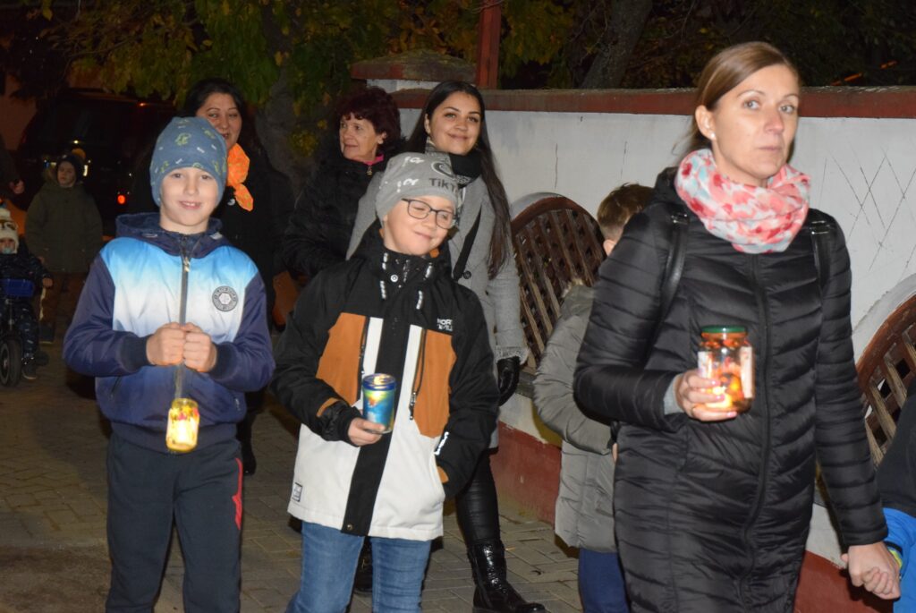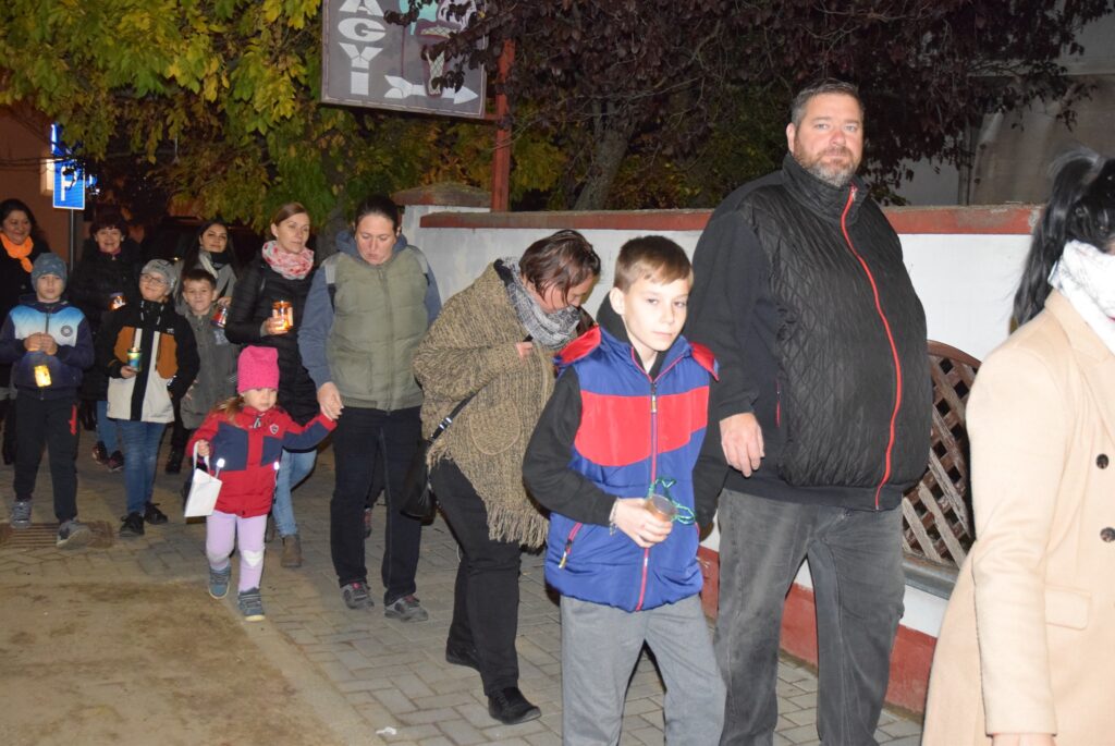 A római templomból hosszan kígyózott a több mint négyszáz főből álló menet a református templomig. Mindenki kezében ott ragyogott a kis mécses. Olyan volt a látvány, mintha a földön ragyogtak volna a csillagok. Olyan, hogy mindenki Isten közelében érezhette magát. A református templomban Bohus Csaba lelkész köszöntötte a gyerekeket. Ő Szent Márton gyermekkorát idézte, majd a példaképekről, azok fontosságáról beszélt. Arról, hogy bátran választhatunk mindannyian bibliai példaképet is a világi példaképek mellett. Beszélt saját példaképéről, a bibliai Józsuéról is.