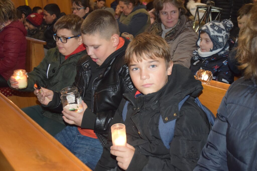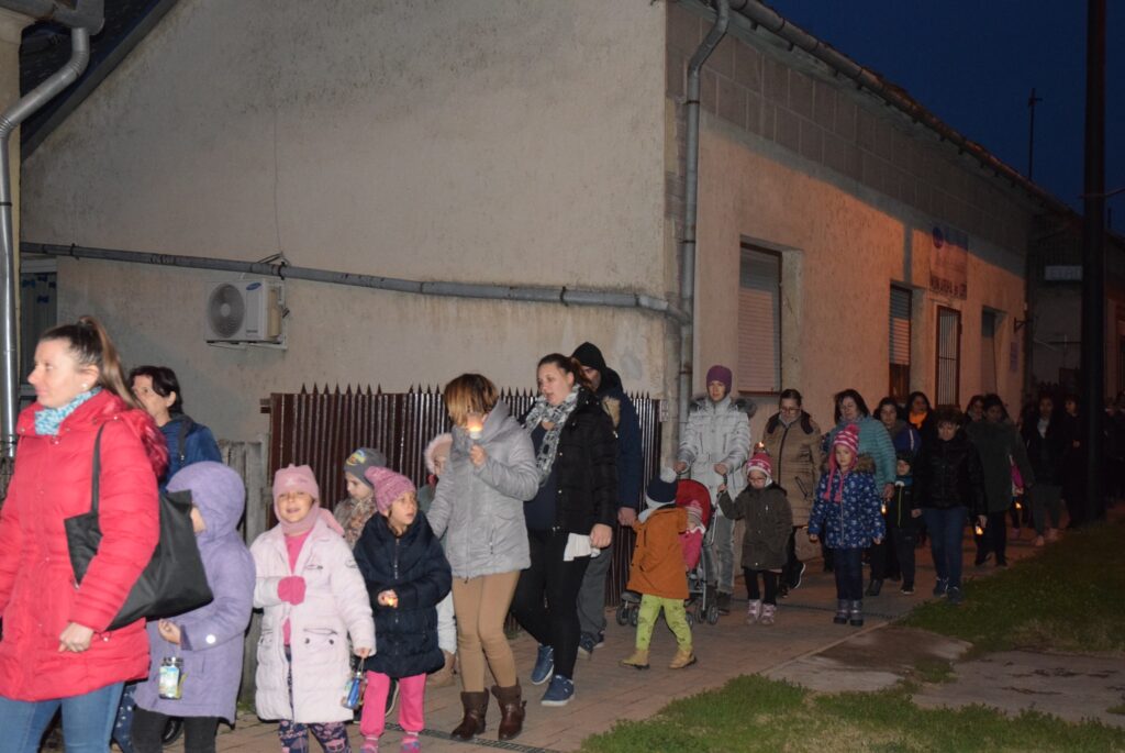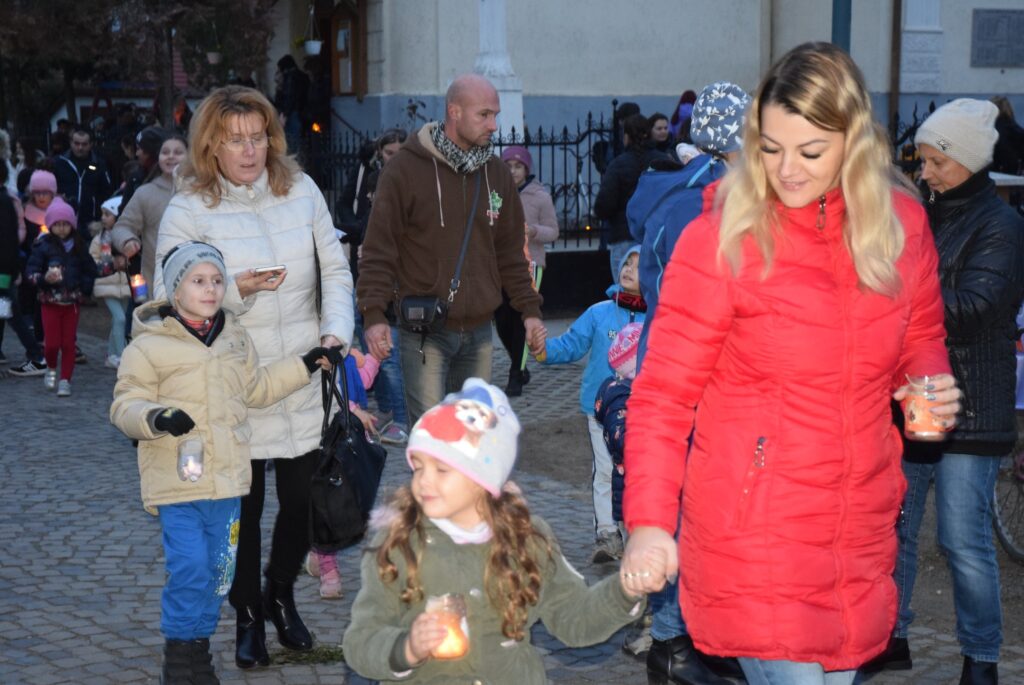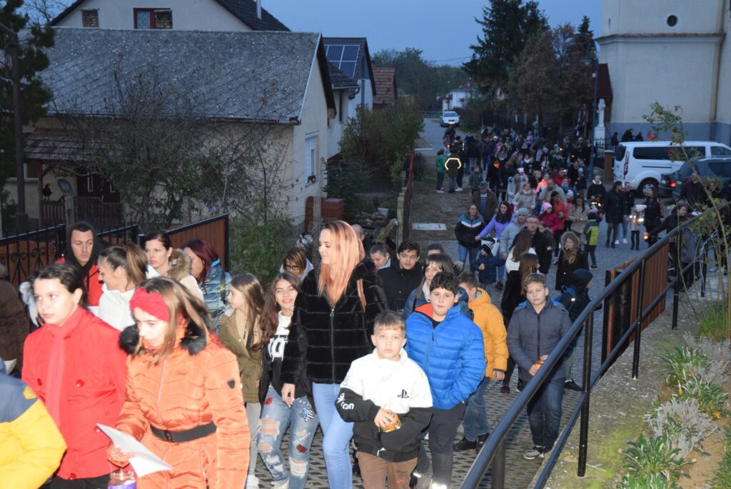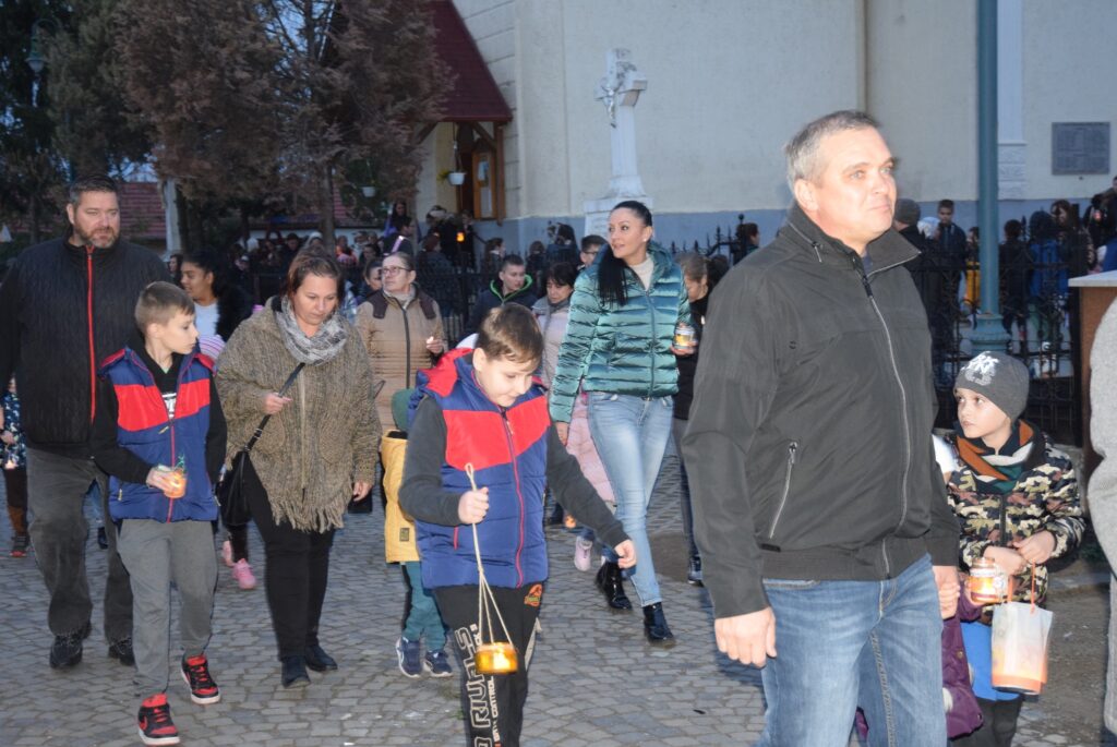 A római templomból hosszan kígyózott a több mint négyszáz főből álló menet a református templomig. Mindenki kezében ott ragyogott a kis mécses. Olyan volt a látvány, mintha a földön ragyogtak volna a csillagok. Olyan, hogy mindenki Isten közelében érezhette magát. A református templomban Bohus Csaba lelkész köszöntötte a gyerekeket. Ő Szent Márton gyermekkorát idézte, majd a példaképekről, azok fontosságáról beszélt. Arról, hogy bátran választhatunk mindannyian bibliai példaképet is a világi példaképek mellett. Beszélt saját példaképéről, a bibliai Józsuéról is.