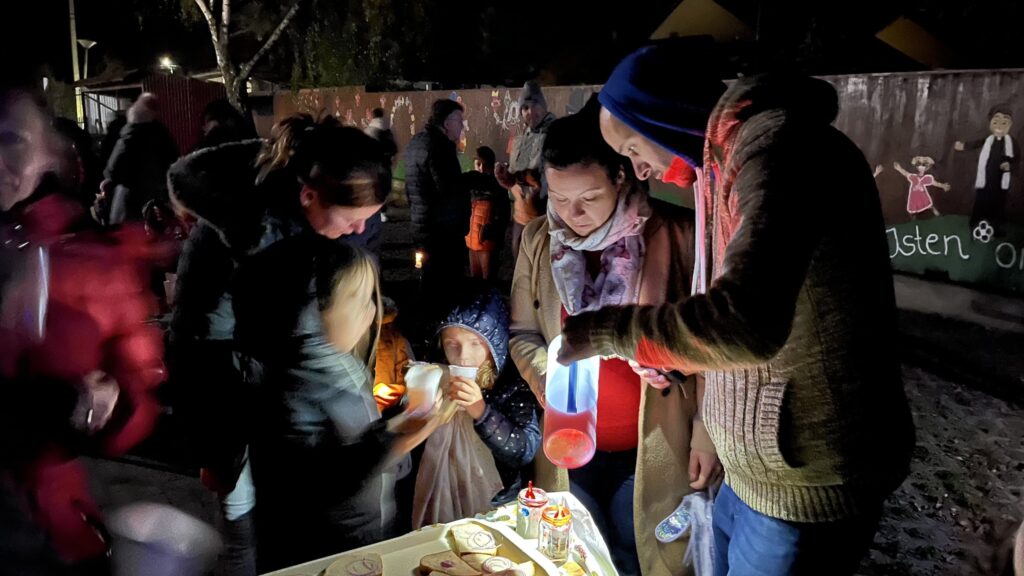 Ekkorára már teljesen besötétedett, így a sok száz mécses valóban csillagként vonult az iskolába, ahol Garda László szólt a nagy tömeghez. – Nagy öröm, hogy a sok kis mécses egy-egy piciny fényt hoz ebbe a sötét világba, és hogy megmutassuk itt Nyíracsádon, hogy a sok kis fényből egy nagy tüzet, a jóság és a szeretet tüzét gyújtjuk meg. A jóságét, ami hozza magával a békesség, ami a legfontosabb értékünk most ebben a világban – fogalmazott Garda László. Ezt követően a gyerekek legnagyobb örömére felgyulladt a jóság, a szeretet és a békesség nagy tüze, amit örömmel és csodálkozással fogadtak az apróságok és felnőttek egyaránt. A felejthetetlen est stílusosan libazsíros kenyeres szeretetvendégséggel ért véget. KGYZE
