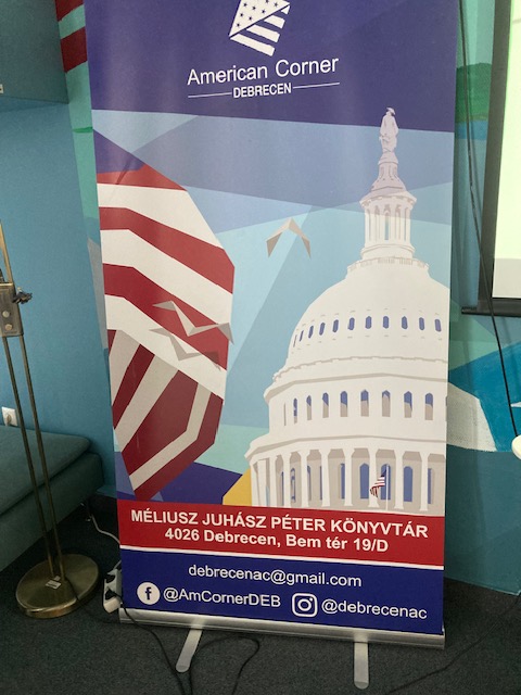 December 4-én hétfőn délelőtt a 7.a és 7. b haladó angol csoport tagjai Illés Gabriella tanárnő szervezésében American Corner programon vehettek részt. Debrecenben, a Méliusz Juhász Péter Könyvtárban Simon Zoltán, a központ vezetője tartotta az előadást, ami angol nyelven zajlott. Szó esett az American Corner kínálatairól, és az amerikai ünnepekről is. Ezek után egy játékos Kahoot feladattal folytattuk az amerikai ünnepekről, ahol az első három helyezett ajándékban részesült. A játékos verseny után megtekinthettük az angol nyelvű könyveket és társasjátékokat is, amelyeket ki is próbálhattunk.