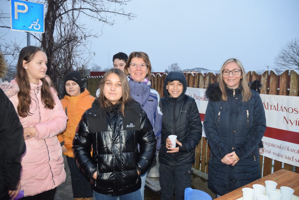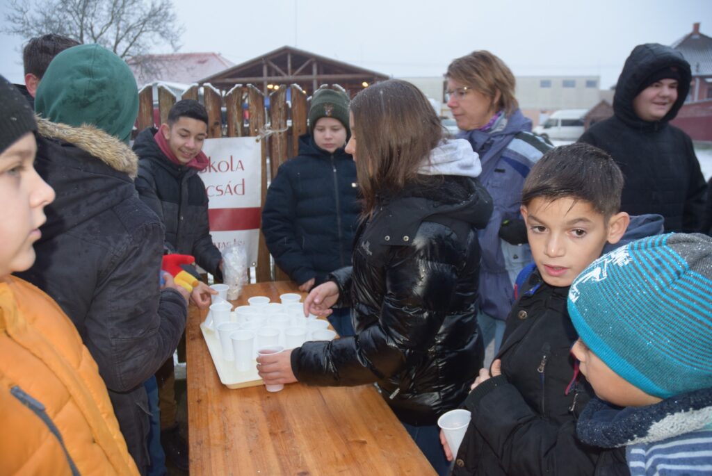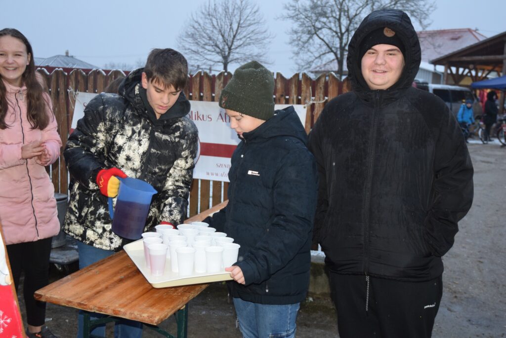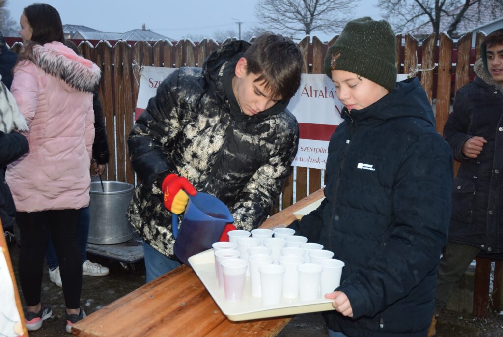 A mai reggelen nemcsak az esőcseppek, de a hópihék is kíváncsiak voltak a csütörtök reggeli községi piac már évek óta mindenki által várt eseményére, az általános iskolások adventi kedvességére. A felső tagozatosok advent idejében forró teát osztanak a községi piaci napon. Ma reggel Simonné Czentye Anikó és Tóthné Szabó Marianna tanárnő vezetésével a hetedik évfolyamosok álltak csatasorba, az árusok és a vevők pedig szívesen fogadták a melegítő italt. A gyerekek csak egy mosolyt kértek érte, amit mindenkitől meg is kaptak. KGYZE