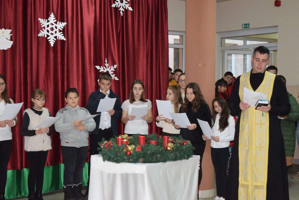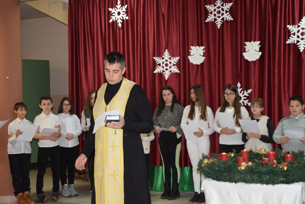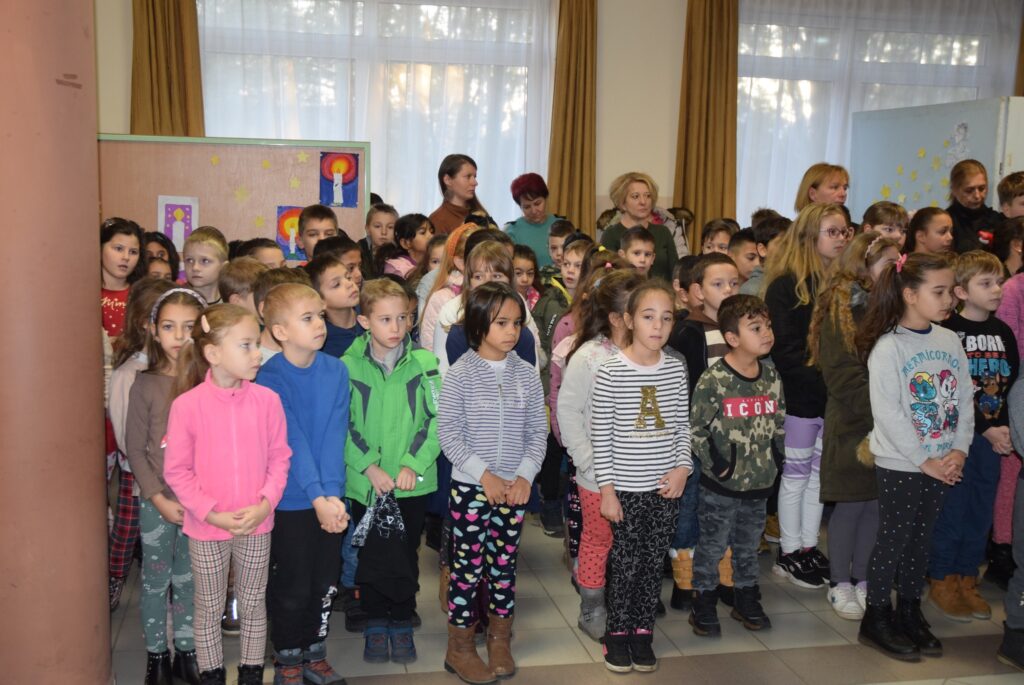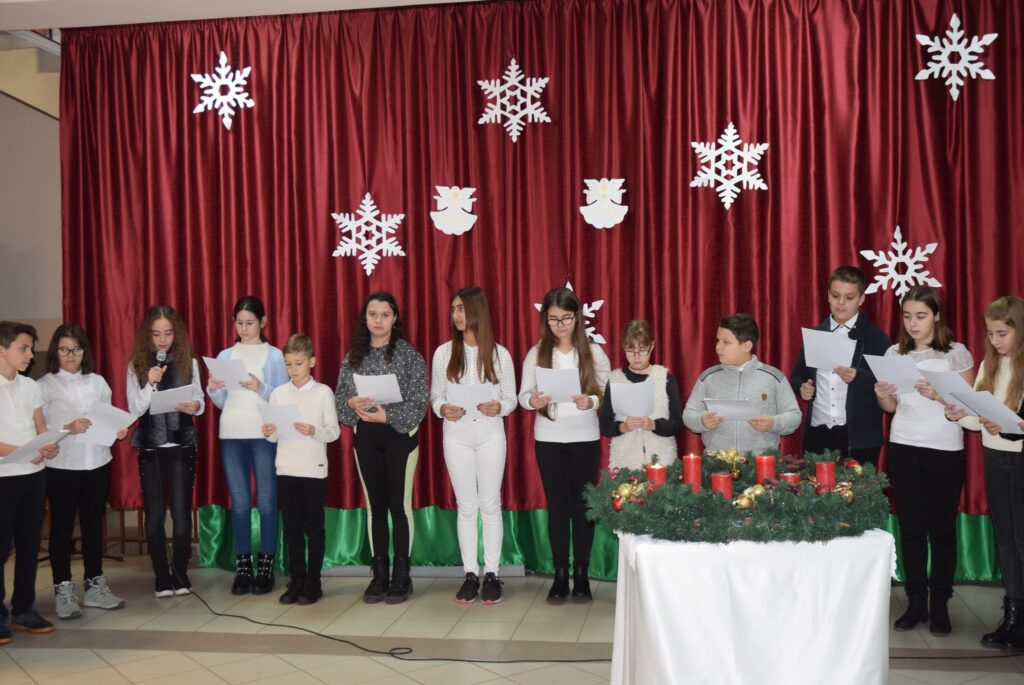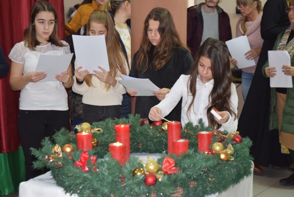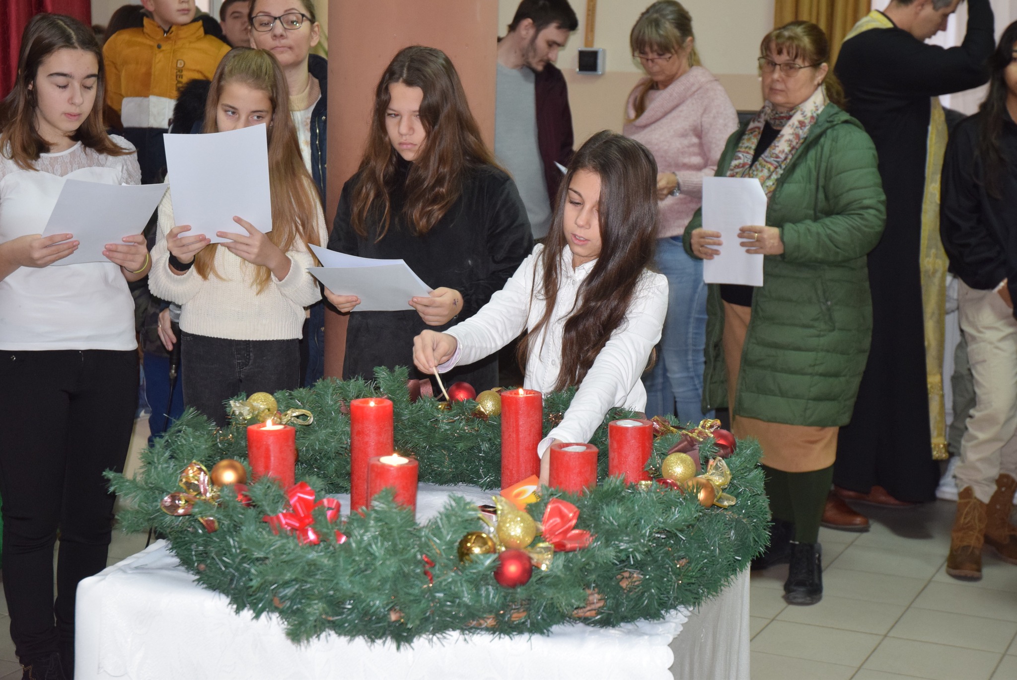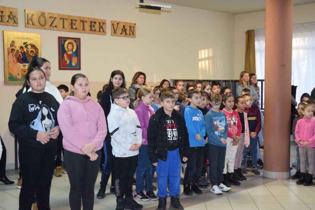 A mai reggelen az 5. évfolyam tanulói gyújtották meg adventi koszorúnk negyedik gyertyáját. A gyertyagyújtás előtt rövid műsorukat a békesség gondolata köré fonták. Ezt követően Zoltán atya Szent Pál apostol filippiekhez írt leveléből olvasott egy részletet, melynek üzenete szintén a békéhez kapcsolódott. KGYZE