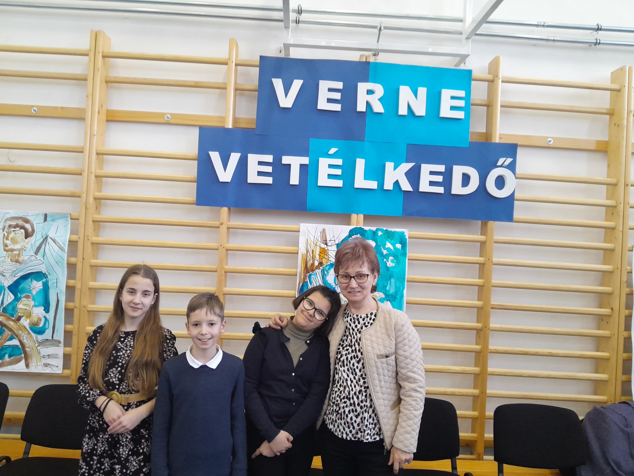2024. március 21-én a Verne – regényolvasási versenyen vettek részt iskolánk tanulói Szolnokon, a Szent Tamás Görögkatolikus Általános Iskolában. A csapat tagjai: Szabó Hanna, Tulipán Janka és Bródi Dénes 5. a osztályos tanulók voltak. A verseny témája Jules Verne Utazás a Föld középpontja felé című regénye volt. A diákoknak a 45 fejezetből álló, földrajztudománnyal foglalkozó művet kellett elolvasniuk. Ezek az Olvasóköri foglalkozások alkalmával megbeszélésre kerültek. A versenyen különböző elméleti és gyakorlati kreatív feladatok várták a csapatokat. Ilyenek voltak az interjú az egyik szereplővel, eszközök szétválogatása, útiterv készítése, térképolvasás, szabadulószoba, kőzetválogatás, totó, keresztrejtvény, képregény és a tutaj készítése. Csapatunk tagjai lelkesen és örömmel dolgoztak ezeken a feladványokon, melynek eredményeképpen a 18 versenyző csapat közül a II. helyezést érték el. GRATULÁLUNK a versenyzőknek és nagyon büszkék vagyunk rájuk!