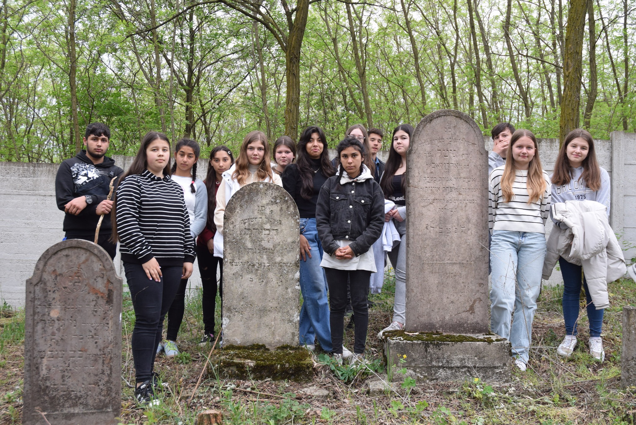 Április 16-a, a holokauszt emléknapja alkalmából a sokéves hagyományhoz híven iskolánk nyolcadik osztályos diákjai Illés Gabriella tanárnő szervezésében, valamint az osztályfőnökök, Demeter Ágnes és Magyarné Hudácskó Szilvia kíséretében kilátogattak a Pozsonyi utca végén található zsidó temetőbe. A szervező tanárnő beszélt a gyerekeknek az emléknap jelentőségéről, súlyos előzményeiről, valamint az egykor településünkön élő zsidóság életéről, sorsáról, kivándorlásáról és az elhurcoltakról is. A diákok kellő tisztelettel járták végig a temető sírköveit, keresték a héber és magyar felírásokat. A sírok között megtalálták településünk egykori orvosának, a zsidó származású Neumann Sámuelnek sírkövét is. KGYZE