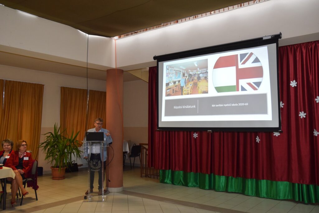 Garda László intézményvezető röviden ismertette a Szent Piroska Görögkatolikus Általános Iskola múltját, infrastrukturális fejlesztéseit, képzési kínálatát.