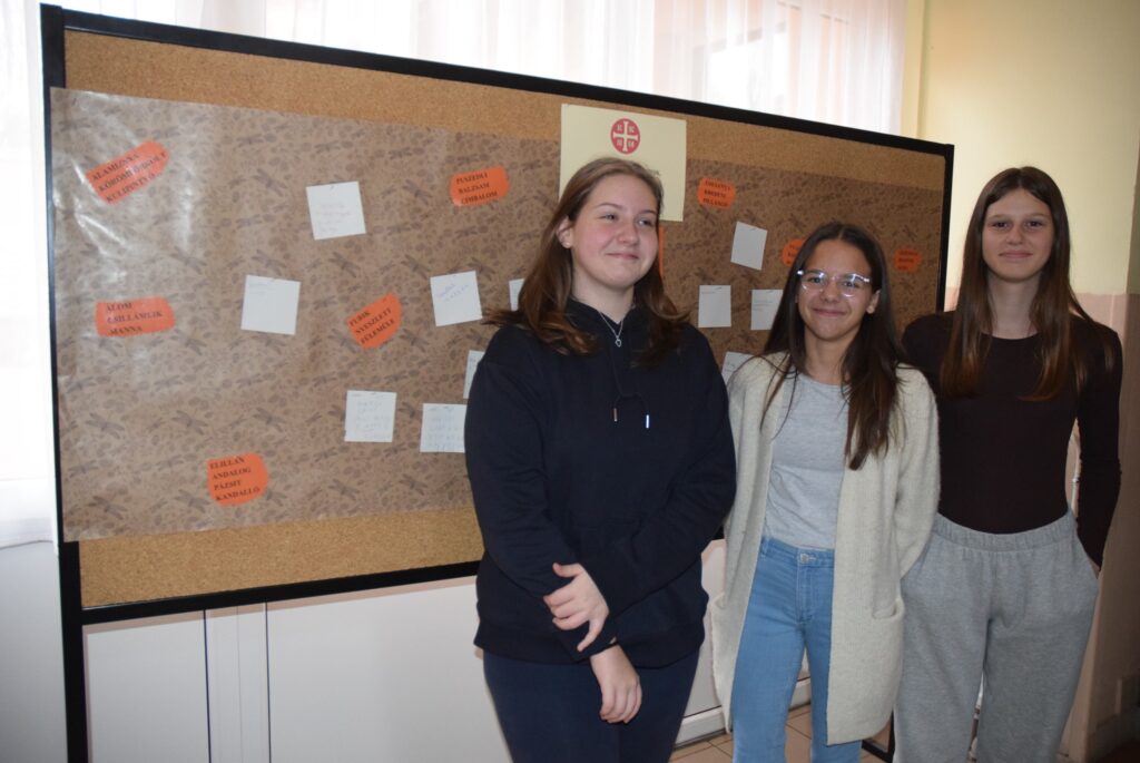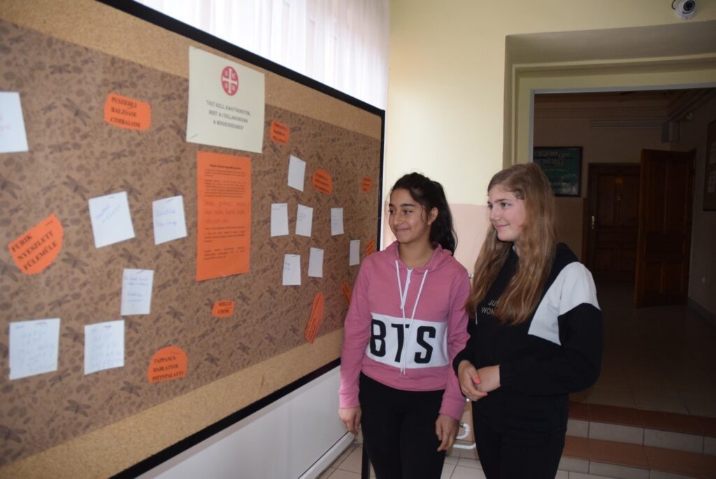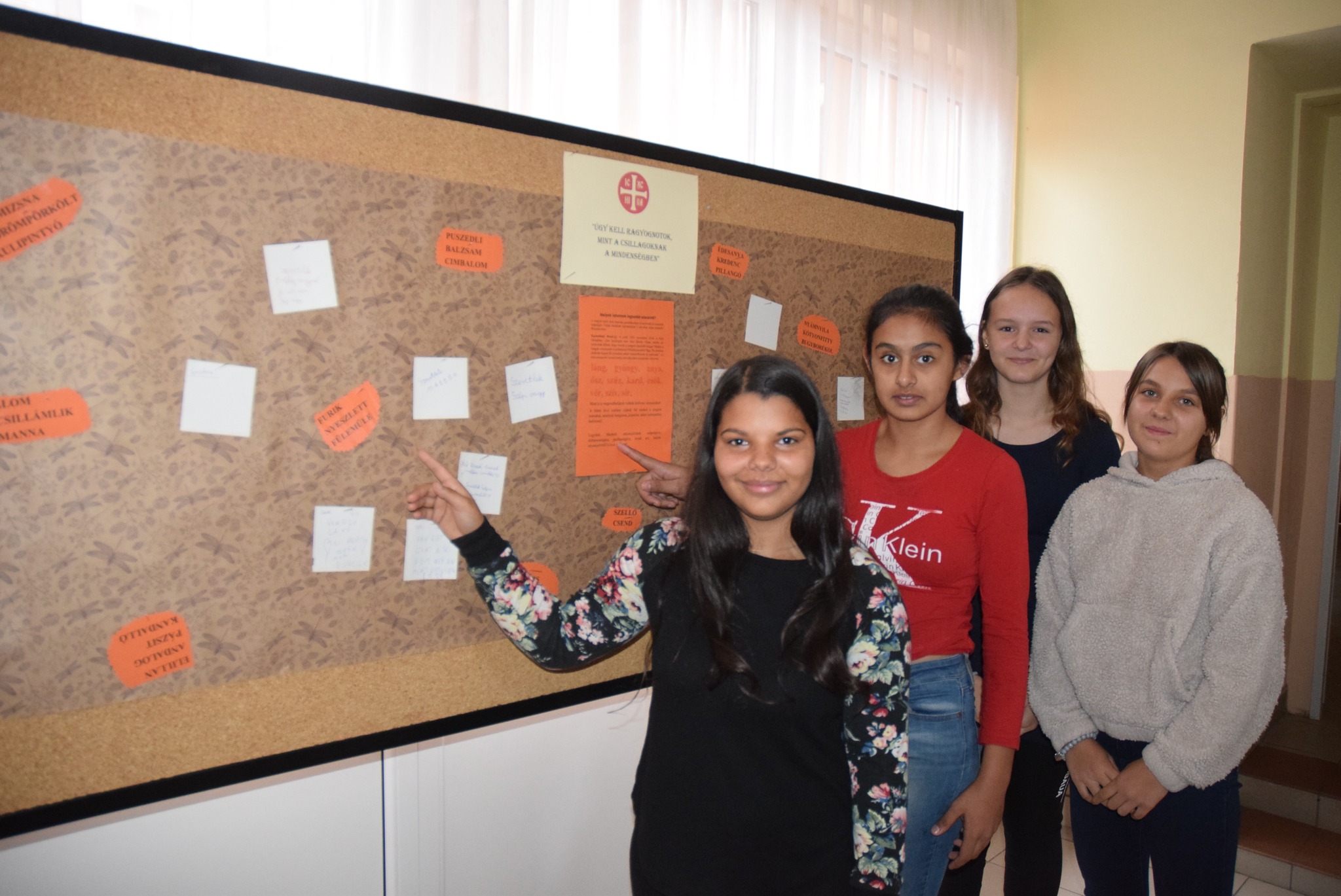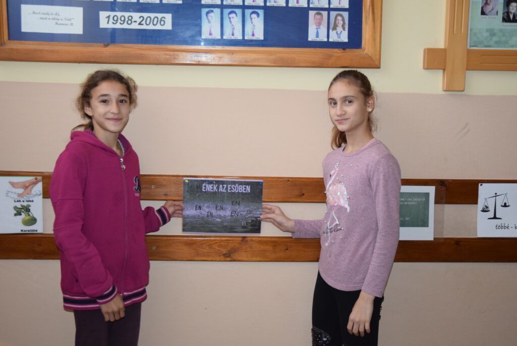 November 13-a, a magyar szó napja alkalmából Simonné Czentye Anikó tanárnő szervezésében egész héten játékos nyelvtörők, mókás képrejtvények és képüzenetek várták elsősorban a felsős diákokat az emeletre vezető korlátokon. Sokan meg-megálltak, és jót mosolyogtak azon, milyen is az, amikor ”hatalmába kerít valakit a félelem”, milyen lehet az „ének az esőben”, és mit is jelent, ha a „karalábé”.??? Anikó néni arra is invitálta a diákokat, hogy keressék meg a számukra legszebbnek ítélt magyar szót, és írják is fel a folyosón található táblára. A gyerekek nagyon élvezték a játékot, a jövő héten pedig sor kerül az általuk legszebb vagy legmókásabbnak ítélt szavak összesítésére is. KGYZE
