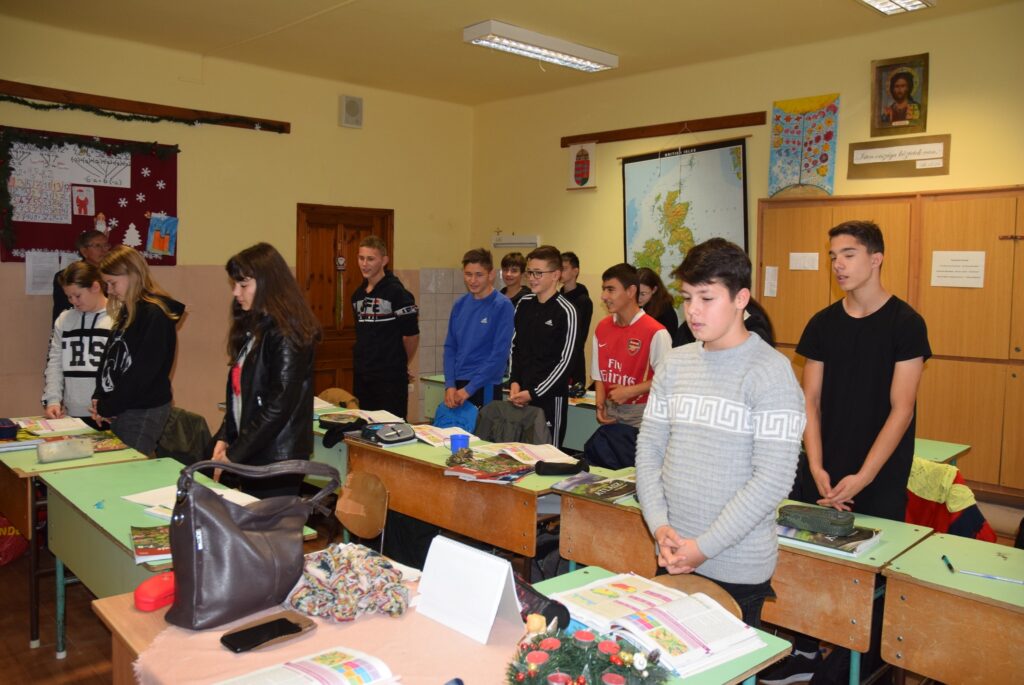 December 6-án vette kezdetét az a liturgikus énekverseny, melyen iskolánk valamennyi osztálya részt vesz. A gyerekek életkoruknak megfelelő liturgikus énekeket mutattak be a zsűrinek, melynek tagjai Garda László intézményvezető, Tatai Zoltán iskolalelkész, Szabó Mihályné, iskolánk egykori énektanára, és Vereb Csaba, iskolánk nyugalmazott igazgatója volt. A verseny háromfordulós, a második fordulóra februárban, a Szent Piroska héten kerül sor, az utolsó forduló időpontja áprilisra esik. Minden osztály valamennyi fordulón részt vesz, a végeredmény a három forduló összesített pontszámai alapján derül majd ki. Az első forduló teljesítményéért mindenkit dicséret illet. KGYZE