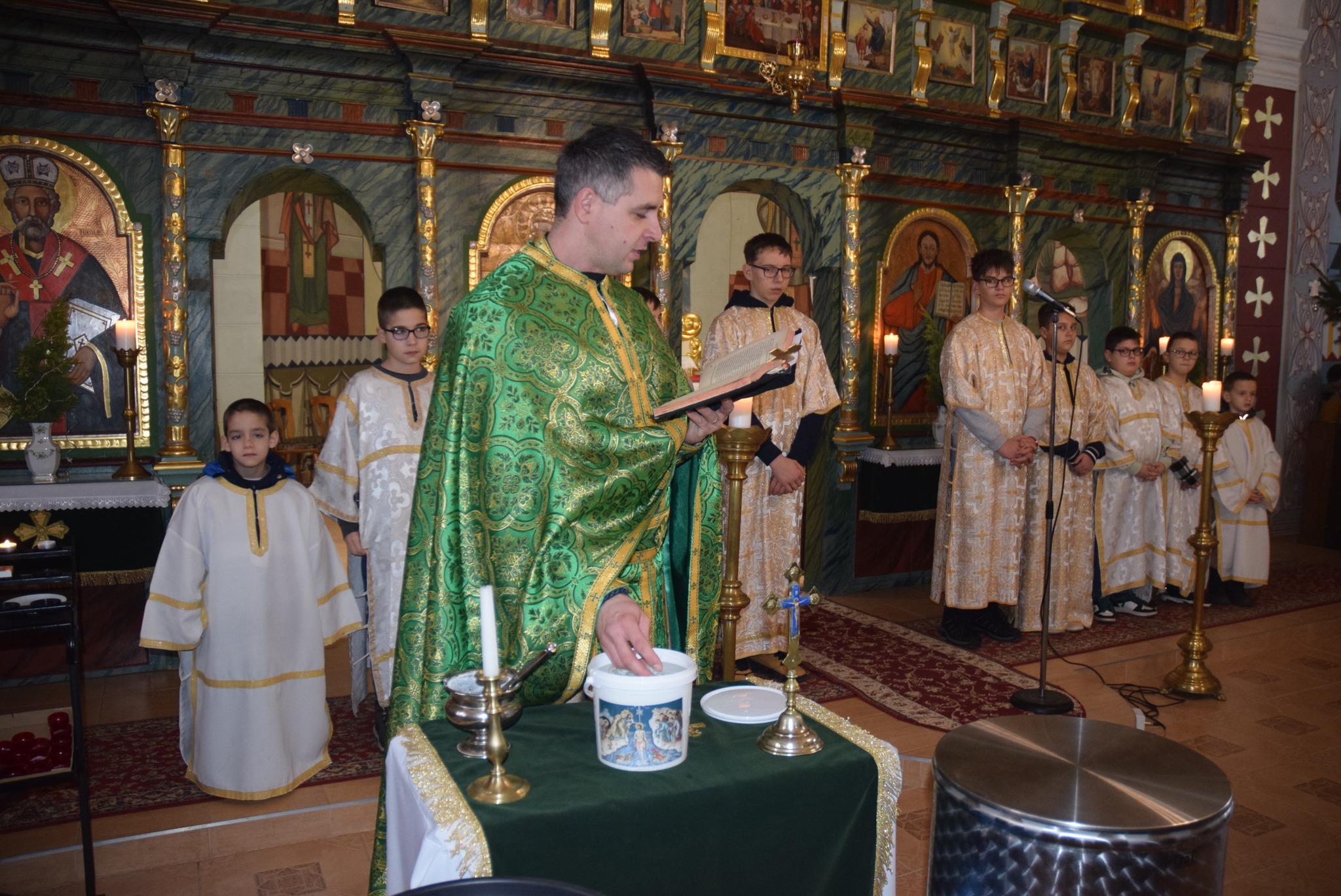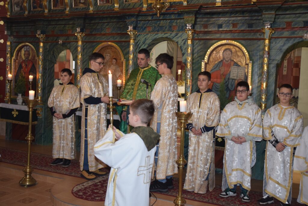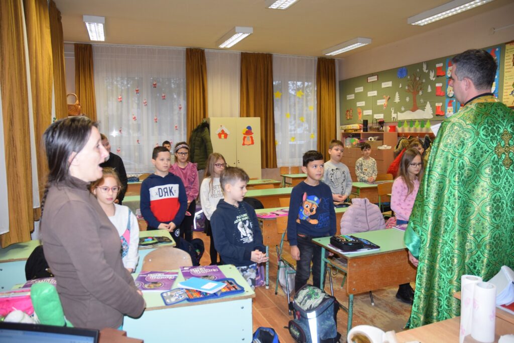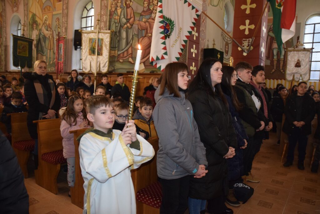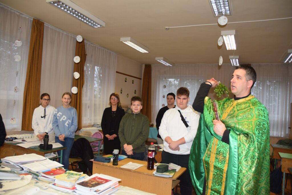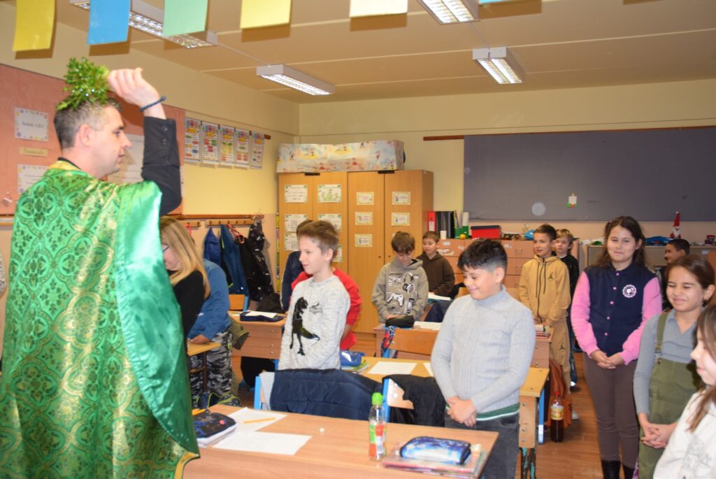 Január 6-án reggel liturgiával kezdtük az új esztendőt a templomban. Zoltán atya örömét fejezte ki, hogy ismét gyermekekkel telt meg az Isten háza. Ezt követően a vízkereszt ünnepéről beszélt. Jézusról, aki János által megkeresztelkedett a Jordán folyó vizében. Felhívta a gyerekek figyelmét arra is, hogy azért is fontos ez az ünnep, mert ekkor kinyilatkoztatja magát a szentháromság. Jézus belép a Jordán vizébe, látjuk, ahogy a szentlélek megjelenik galamb képében, és halljuk az Úristen szavát: Ez az én fiam! A liturgia végén vízszentelésre is sor került, majd visszatérve az iskolába Zoltán atya a ministránsok kíséretében megszentelte az épület valamennyi tantermét és egyéb helyiségét is, kérve Isten áldását az ott tanuló gyermekekre, és az ott dolgozó felnőttekre is. KGYZE