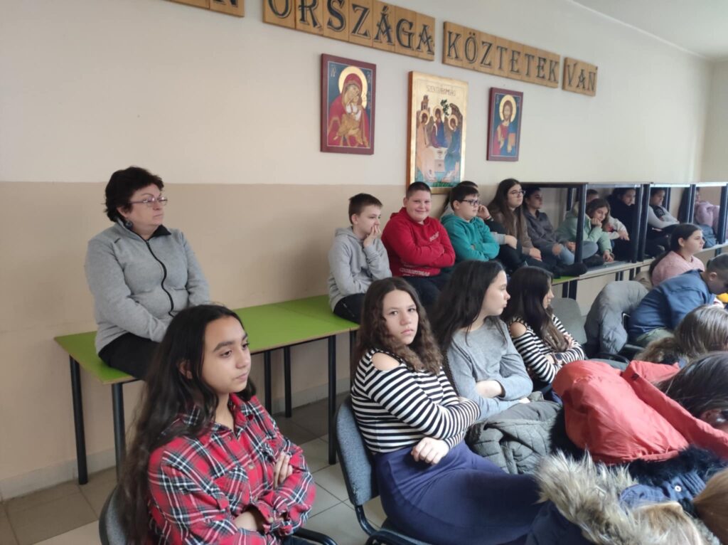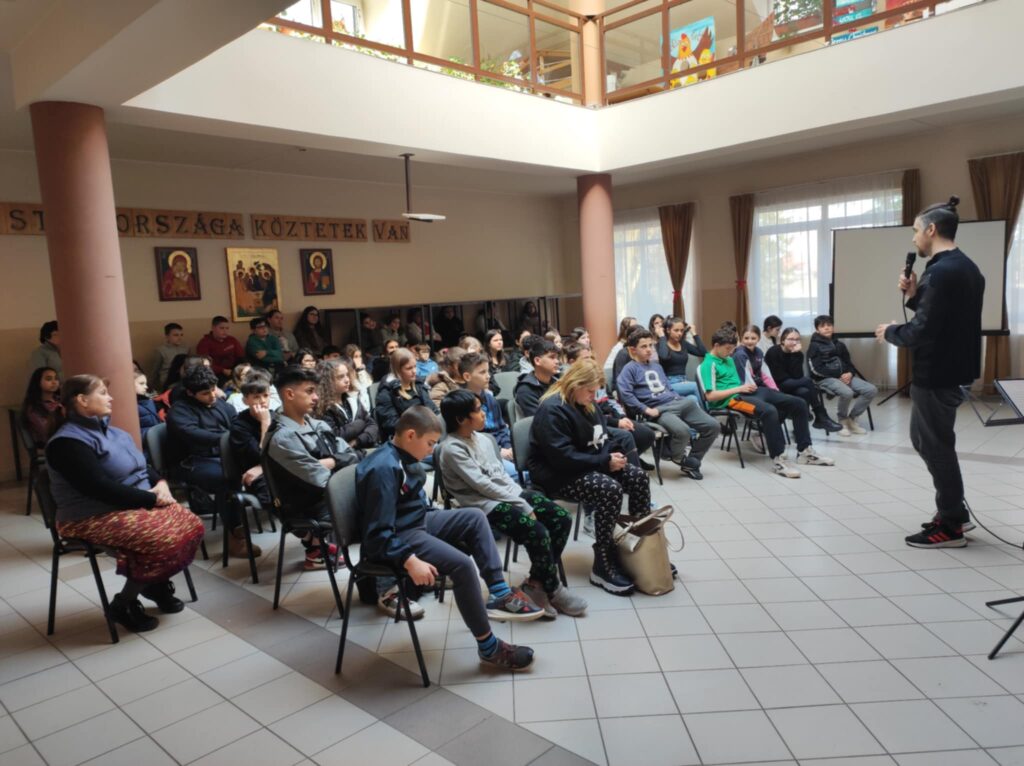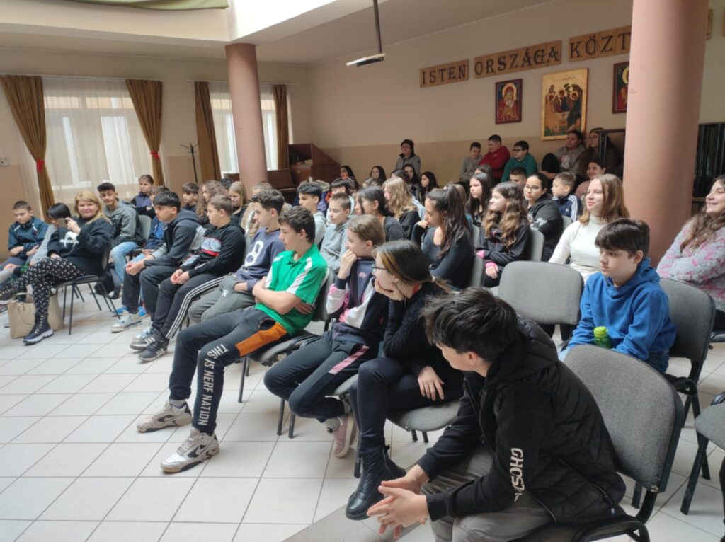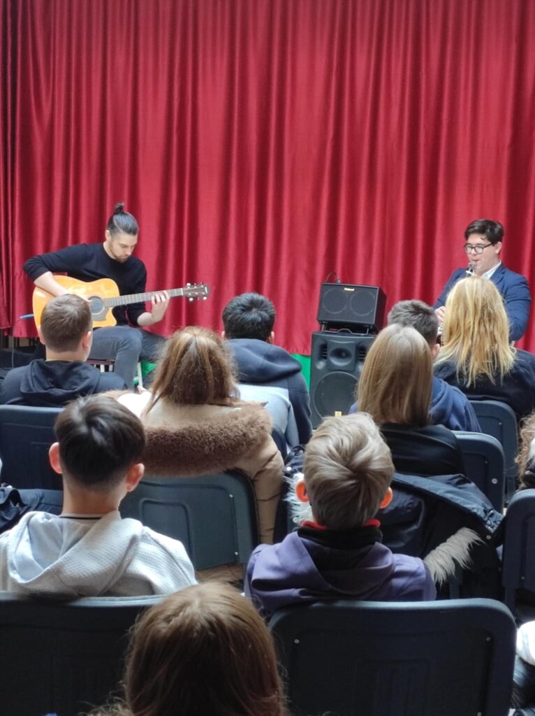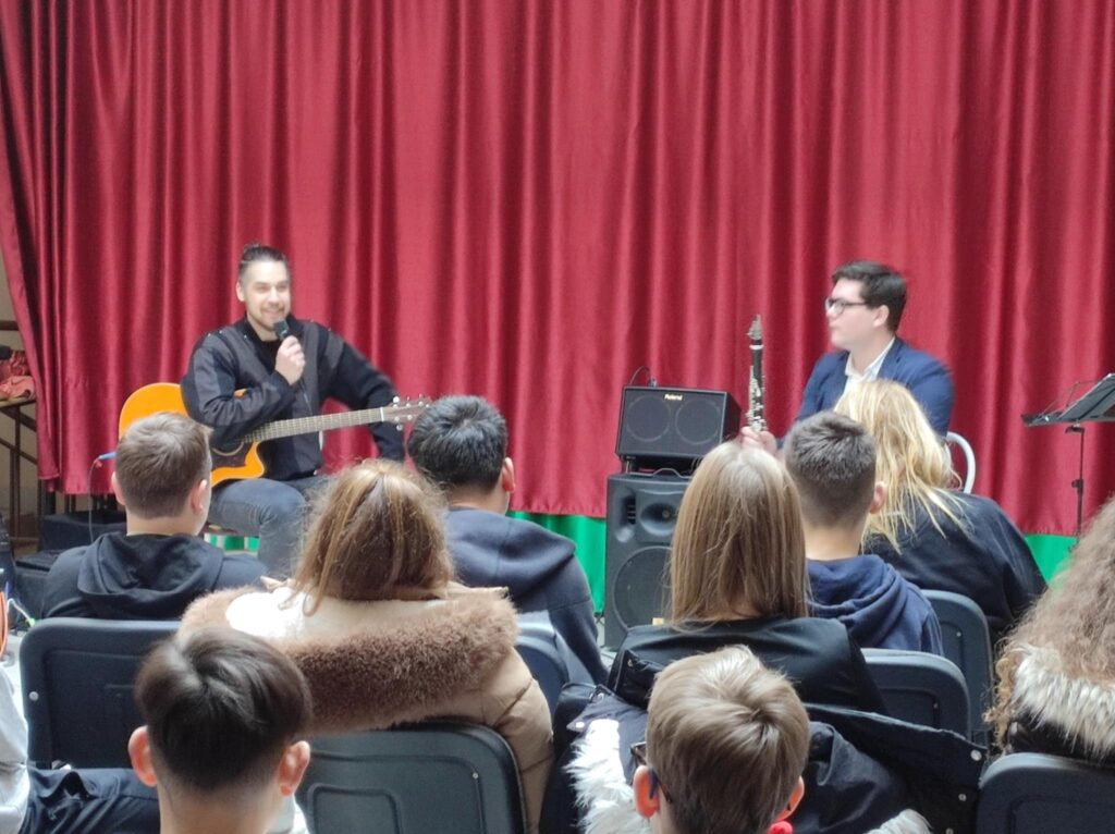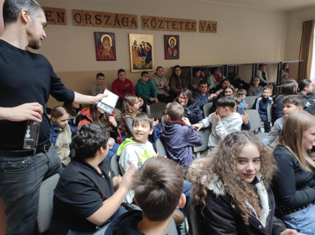 Február 5-én délben 6-7. évfolyamos diákjainknak különleges élményben volt részük. A Lázár Ervin Program keretében ismét ellátogattak hozzánk a Kis Virtuózok formáció tagjai, akik hangszerrel, énekkel zenetörténeti kirándulásra invitálták a lelkes közönséget. Zenés műsoruk széles palettáján helyet kapott a klasszikusok mellett a modern zene egy-egy nagy alakja is. KGYZE