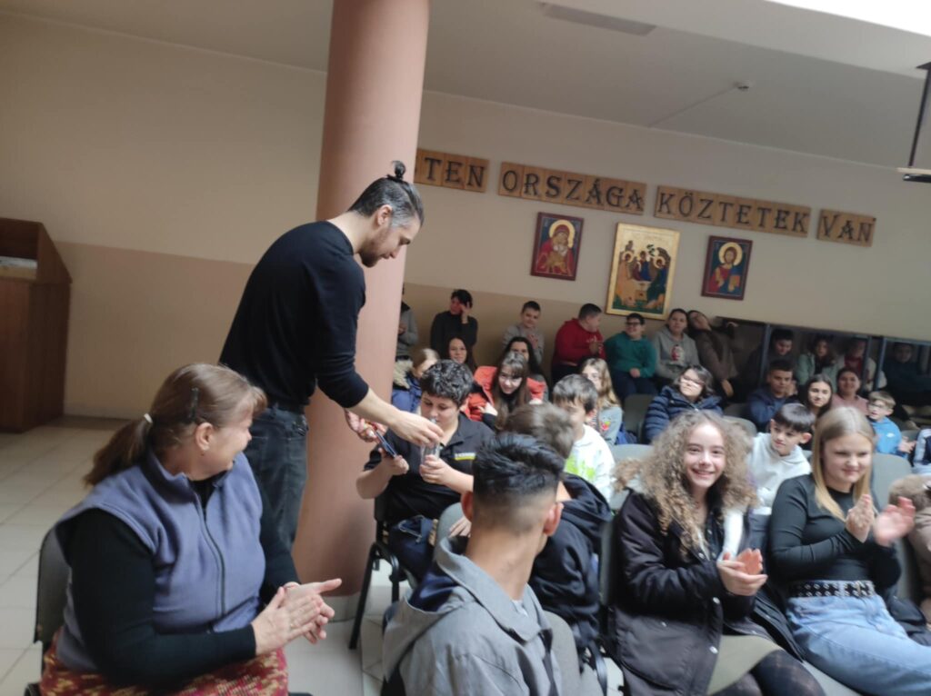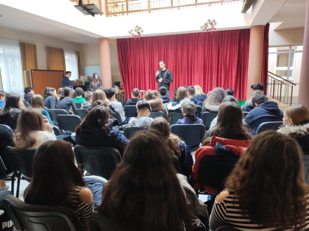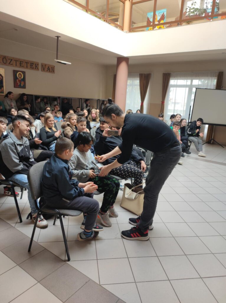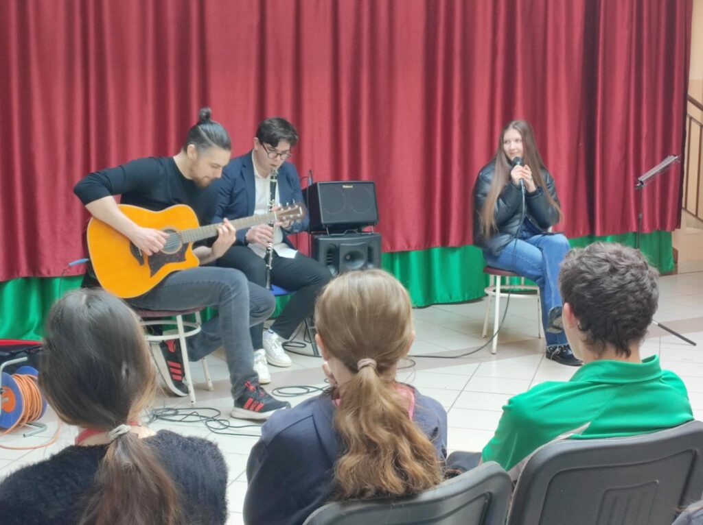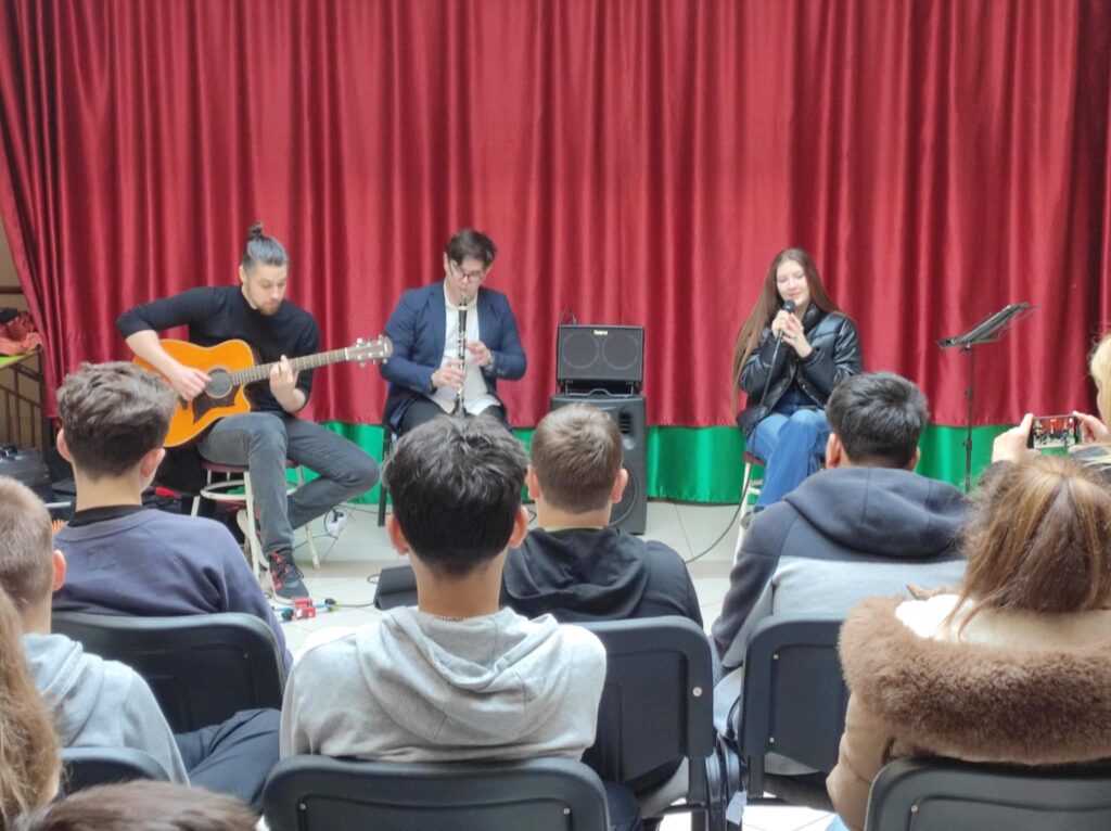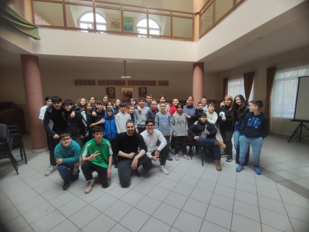 Február 5-én délben 6-7. évfolyamos diákjainknak különleges élményben volt részük. A Lázár Ervin Program keretében ismét ellátogattak hozzánk a Kis Virtuózok formáció tagjai, akik hangszerrel, énekkel zenetörténeti kirándulásra invitálták a lelkes közönséget. Zenés műsoruk széles palettáján helyet kapott a klasszikusok mellett a modern zene egy-egy nagy alakja is. KGYZE
