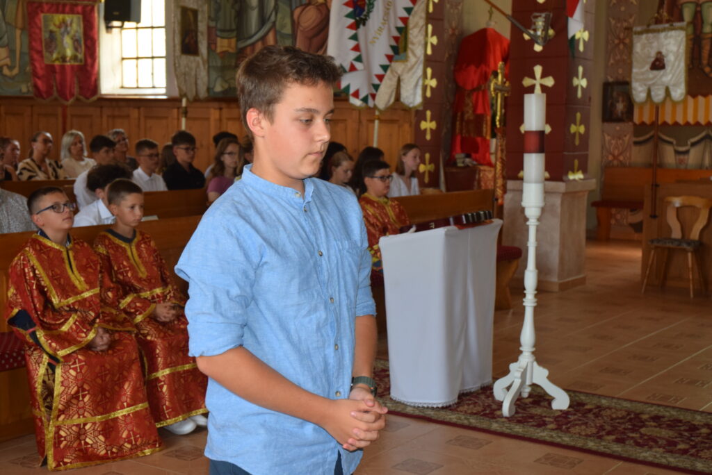 Sokéves hagyomány iskolánkban, hogy a ballagás előtt hálaadó szent liturgiára gyűlnek össze iskolánk nyolcadik osztályos tanulói, az osztályfőnökök, pedagógusok és szülők a görögkatolikus templomban. Így történt ez a mai délutánon is. A diákokhoz Tóth Elek atya intézett néhány búcsúgondolatot. A felolvasott evangéliumi szakaszra hivatkozva hívta fel a gyerekek figyelmét, hogy olyan az előttük álló út, mintha ők is egy nagy hajóra szállnának fel, amit ezután nekik kell irányítani. Hangsúlyozta, hogy vigyenek magukkal a diákok sok-sok hasznos dolgot, de ne feledjék a legfontosabbat, a Jóistent, aki mindig ott lesz velük, ha szükségük lesz rá. A templomban minden búcsúzó diák egy-egy mécsest gyújtott, miközben köszönetet mondtak, és egy kérést fogalmaztak meg magukban a Jóisten felé.