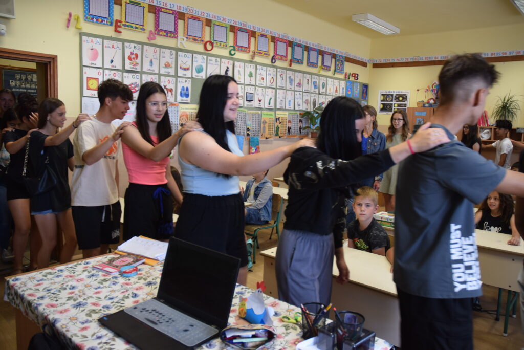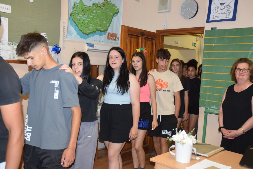 Az utolsó napok a ballagás jegyében zajlanak iskolánkban. A mai, utolsó tanítási napon a ballagó nyolcadikosok énekszóval, kezüket egymás vállára téve járták végig a tantermeket, ahol az ámuló alsósok, a cinkosan mosolygó felsősök, a könnyes szemű pedagógusok fogadták immár valóban utolsó látogatásukat. Még egy csoportkép az udvaron, aztán útnak indultak, hogy búcsút vegyenek a település utcáitól, ahol annyit kóboroltak, a Polgármesteri Hivataltól, az óvodától, könyvtártól, idősek otthonától, a terektől és a parkoktól. Mindenütt búcsúénekkel jelezték, hogy immár tényleg itt a búcsú ideje.